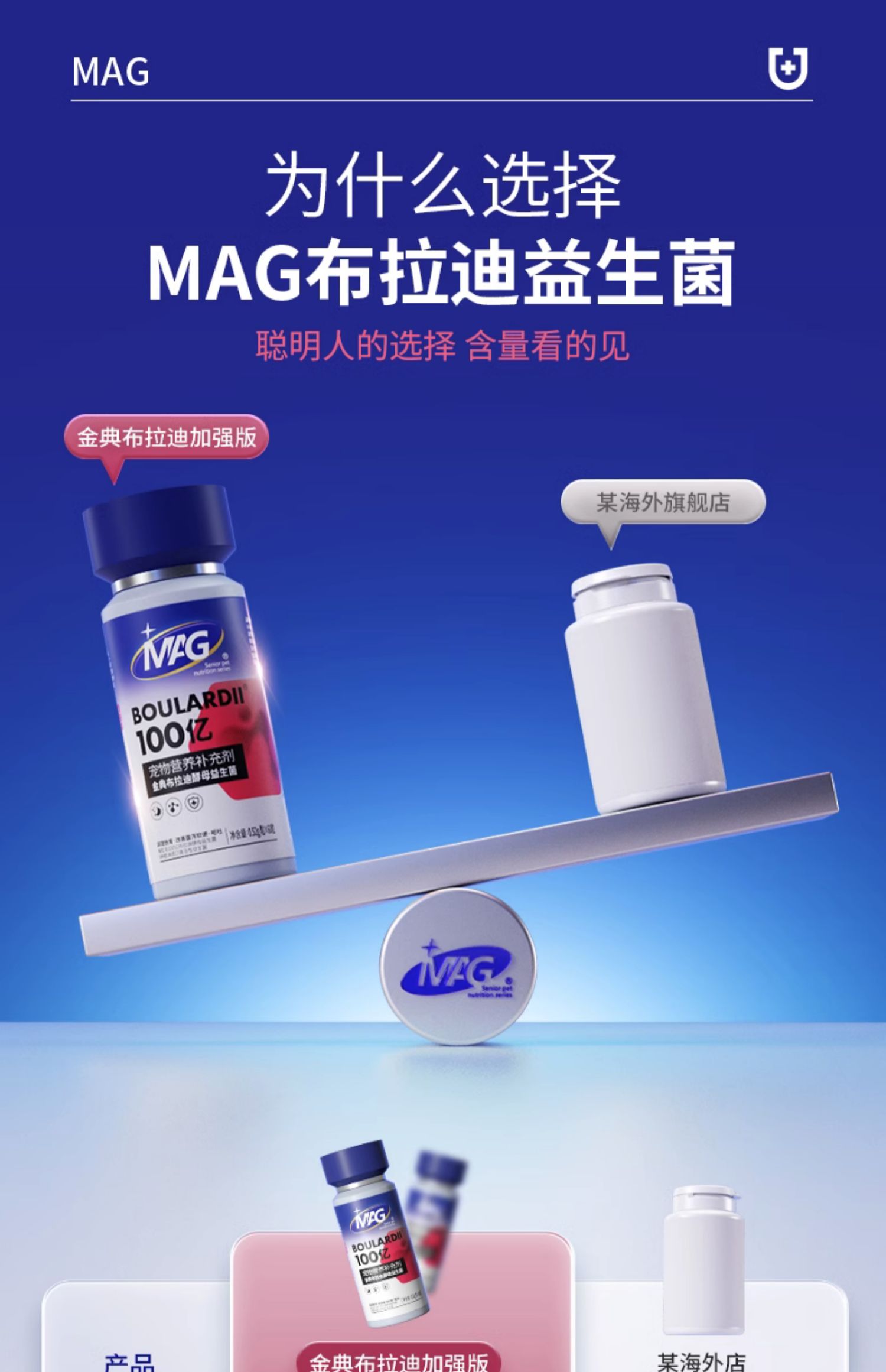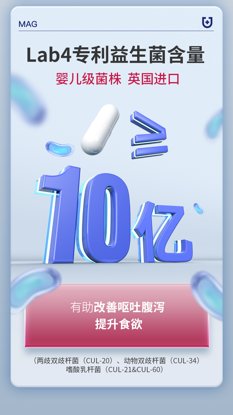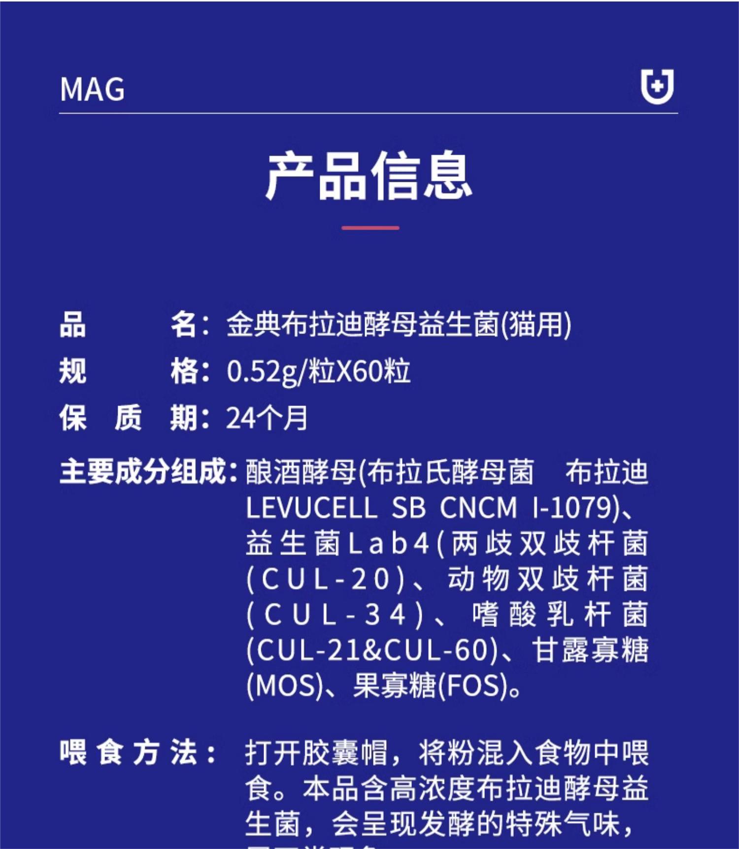 【U+系列】 MAG金典布拉迪酵母益生菌加强版猫用 0.52g*60粒-猫咪调理肠胃100亿活菌人用级益生菌
