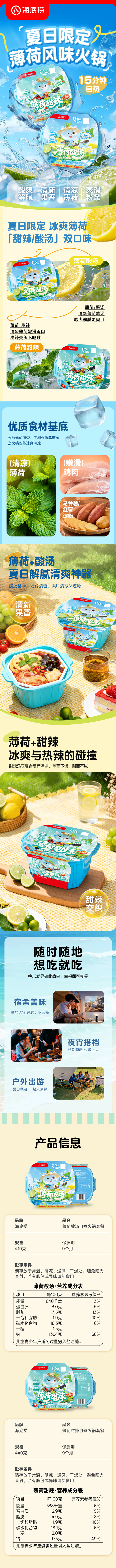 【夏日限定】海底捞夏日限定薄荷自煮火锅套餐薄荷酸汤甜辣夜宵解馋户外方便速食