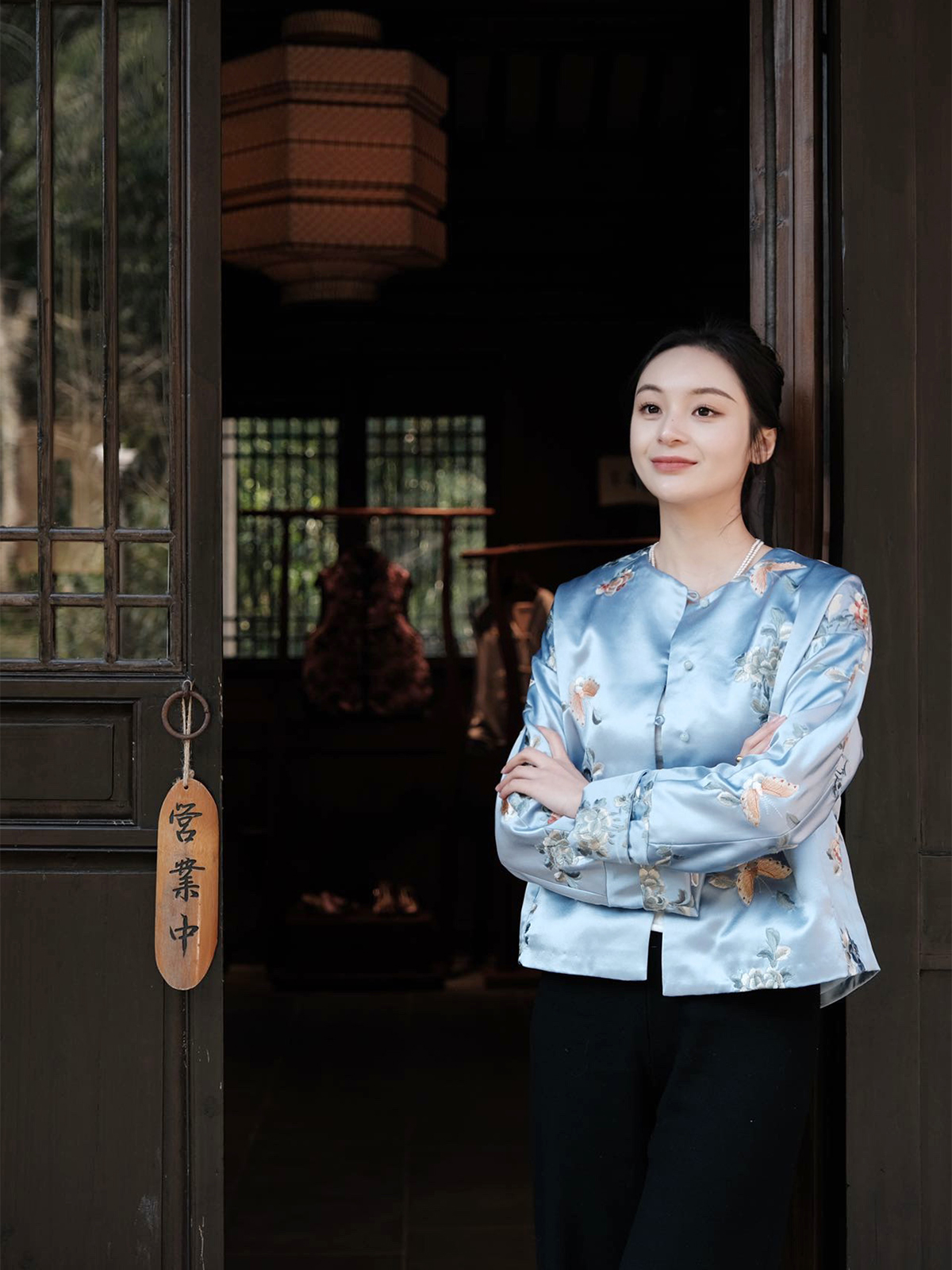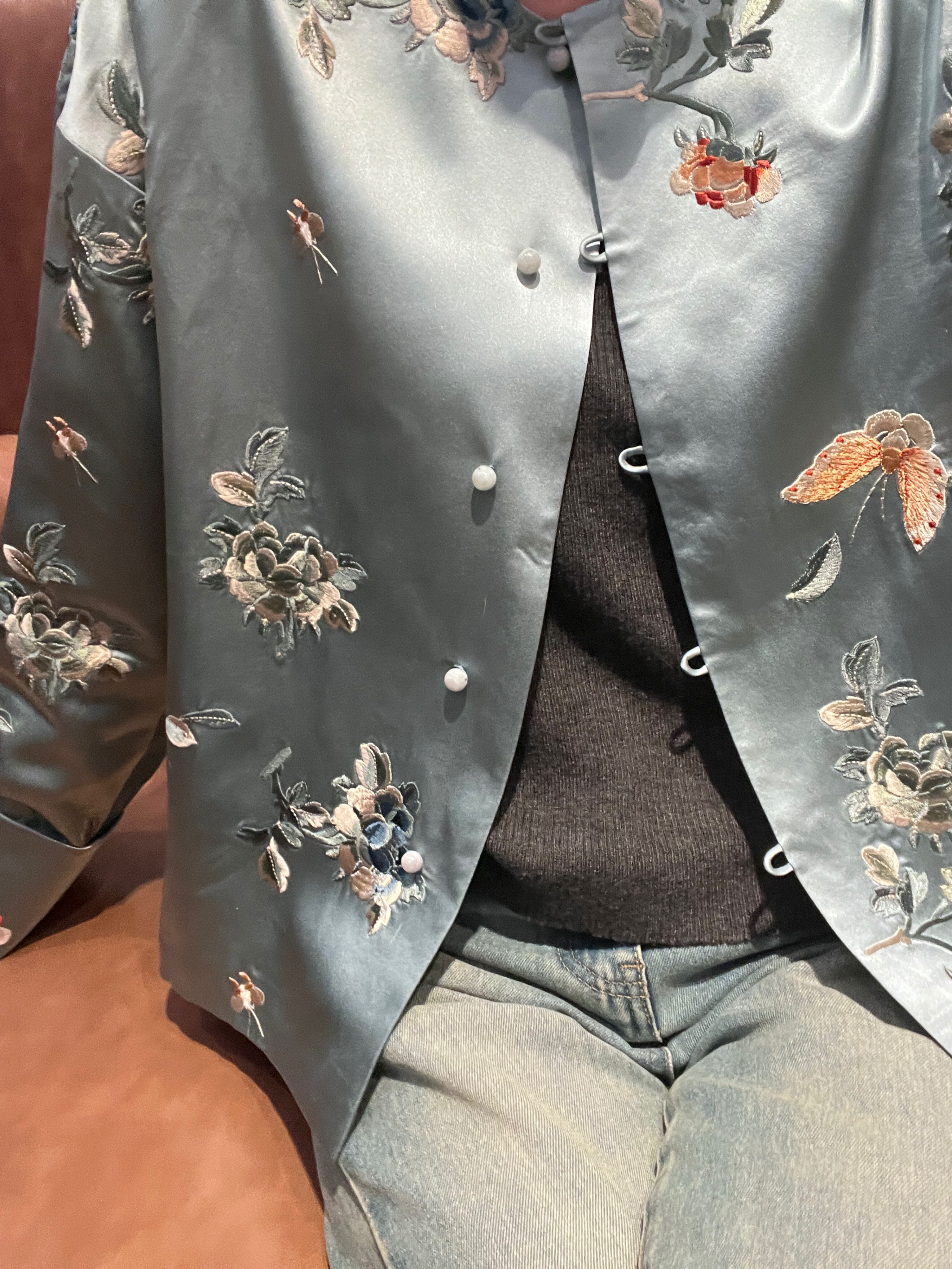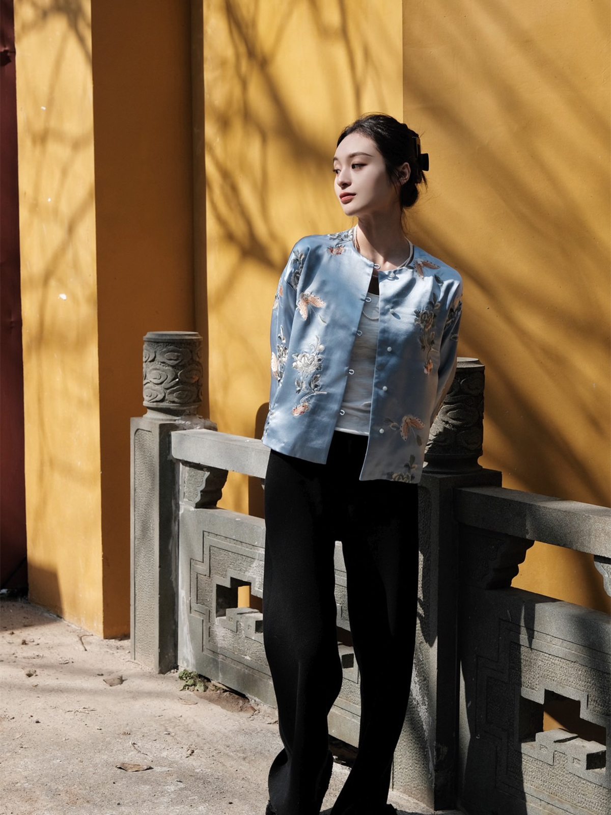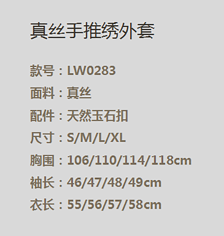 微瑕秒杀| 盛唐牡丹 |真丝手推绣外套短款/白色蝶恋花真丝里布 [特价品](特殊商品不退不换)