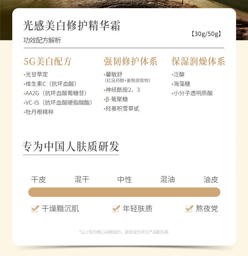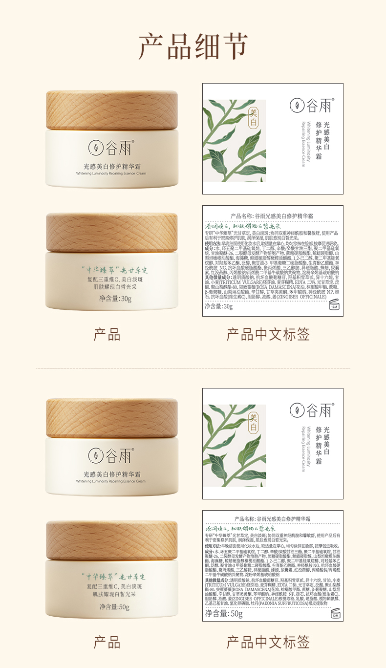 【谷雨内购专场】谷雨光感美白修护精华霜50g【线下版2301】