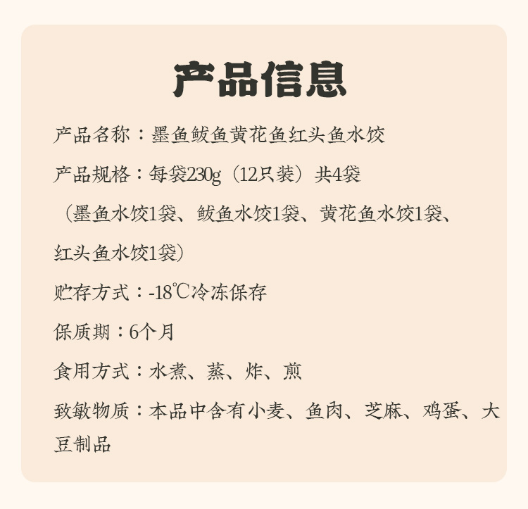 【水饺•墨鱼/鲅鱼/黄花鱼/红头鱼】#顺丰冷链 一人食组合 手工包制 1:2黄金比例