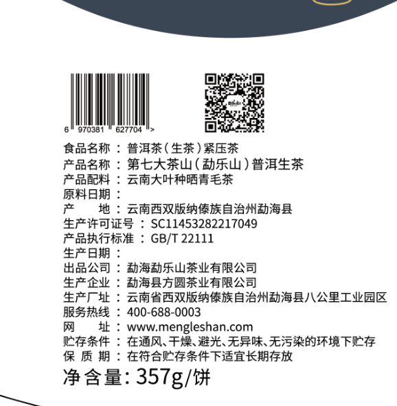 2014年原料,2016年压制成型,原料经2年陈化↑↑