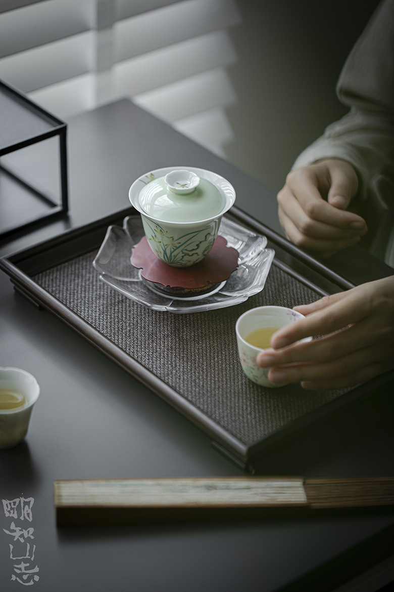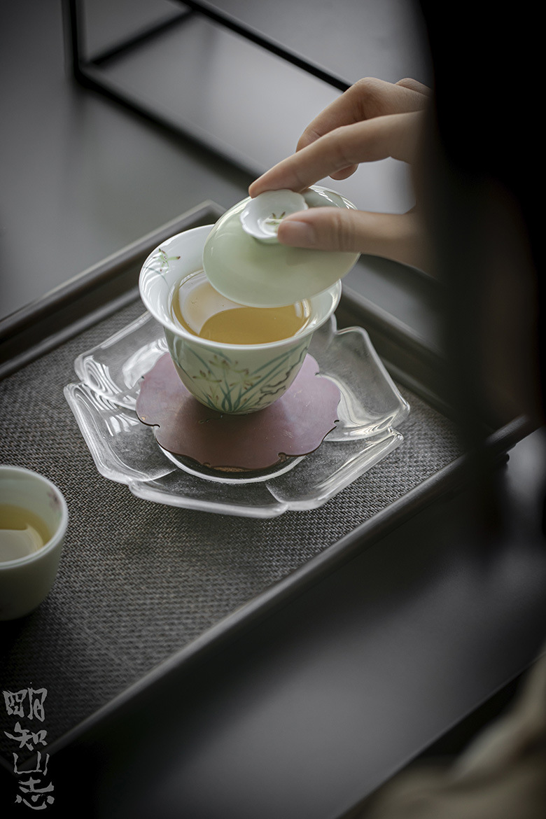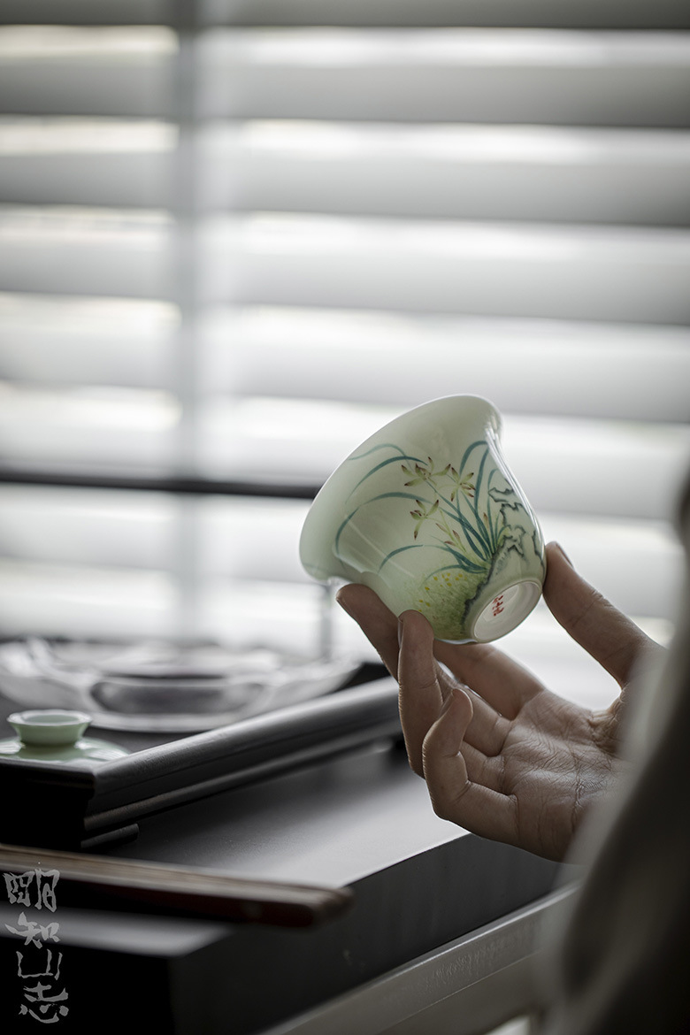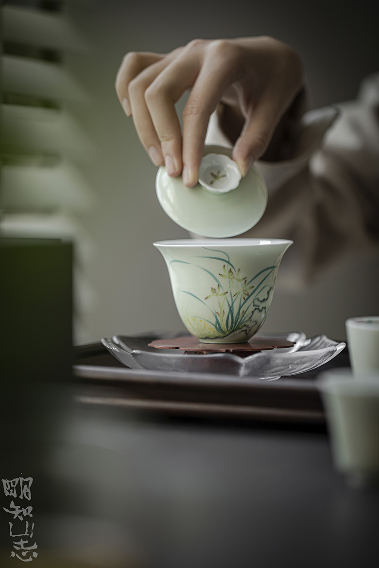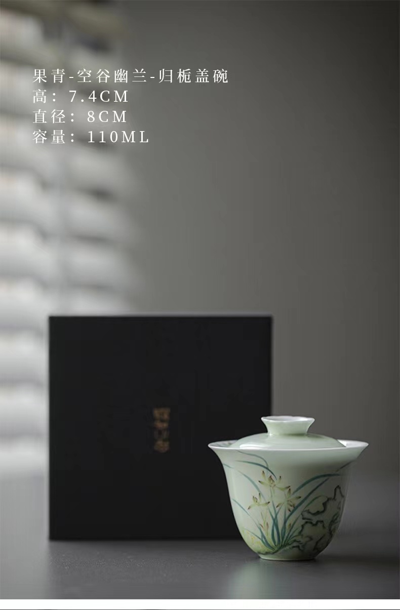 永利汇手绘空谷幽兰盖碗文人器茶室家用瓷泡茶碗兰花手工