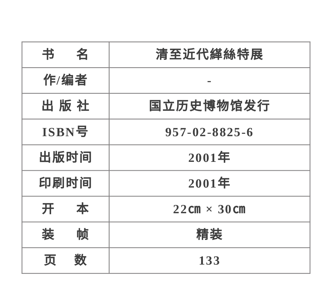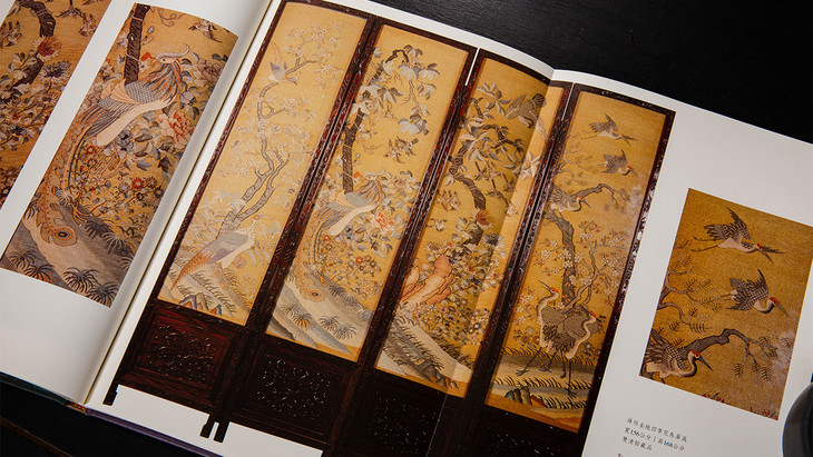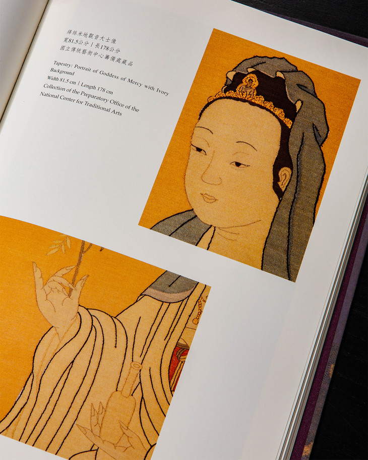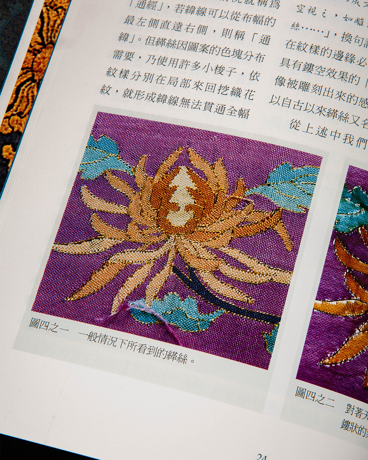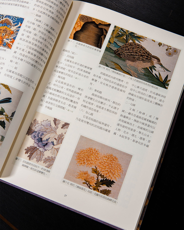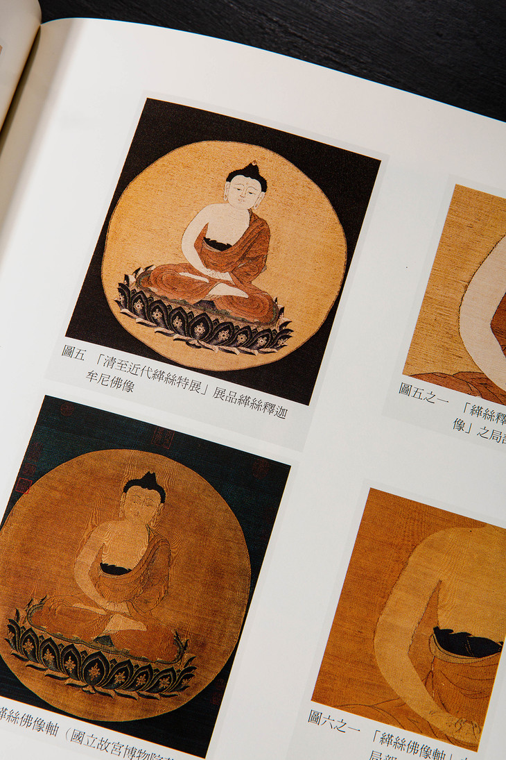 《清至近代緙絲特展》展刊。展出19-20世纪包括龙袍、缂画、册页、屏风等36组/件展品。