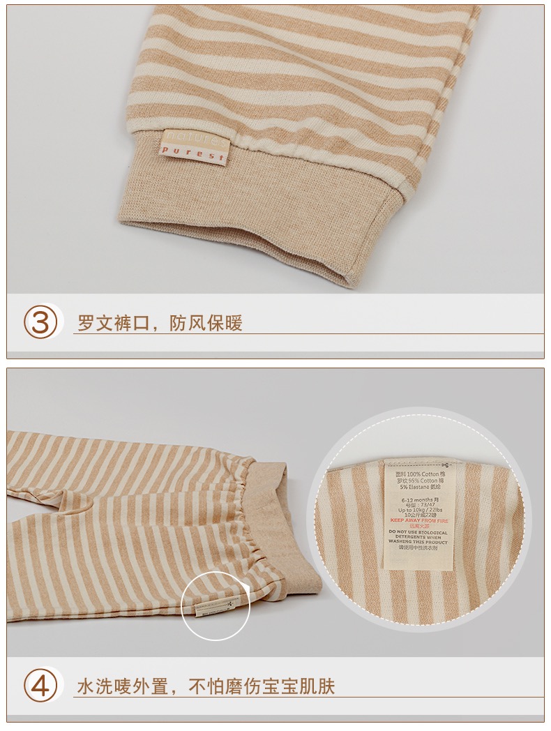 【云粉节】9楼英国natures purest(天然素彩)宝宝彩棉长裤婴儿条纹长裤男女春秋薄款丨吊牌价:298元