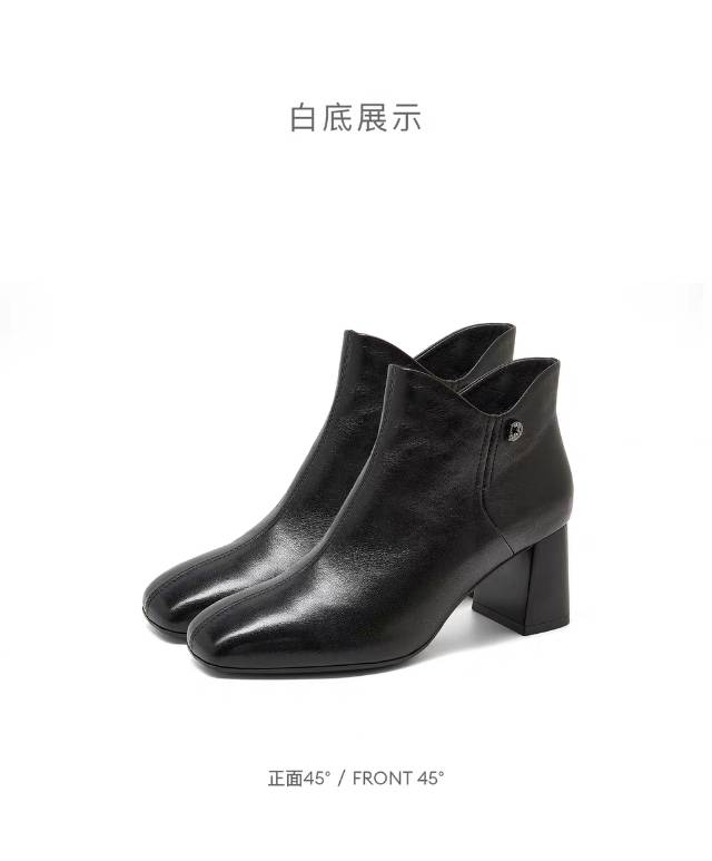 【云粉节】BF楼羊皮粗跟棕色靴子2025冬季新款通勤时装靴短靴女款KYQ58629 吊牌价1580 活动价699
