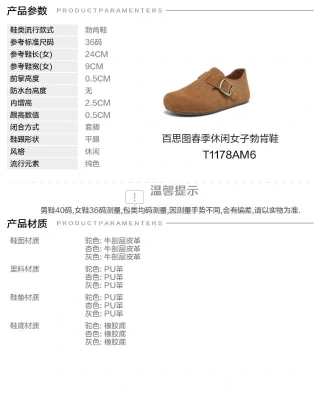 【百思图】BF楼百思图2026春季新款复古真皮勃肯鞋懒人一脚蹬女单鞋T1178AM6 吊牌价759.现价339