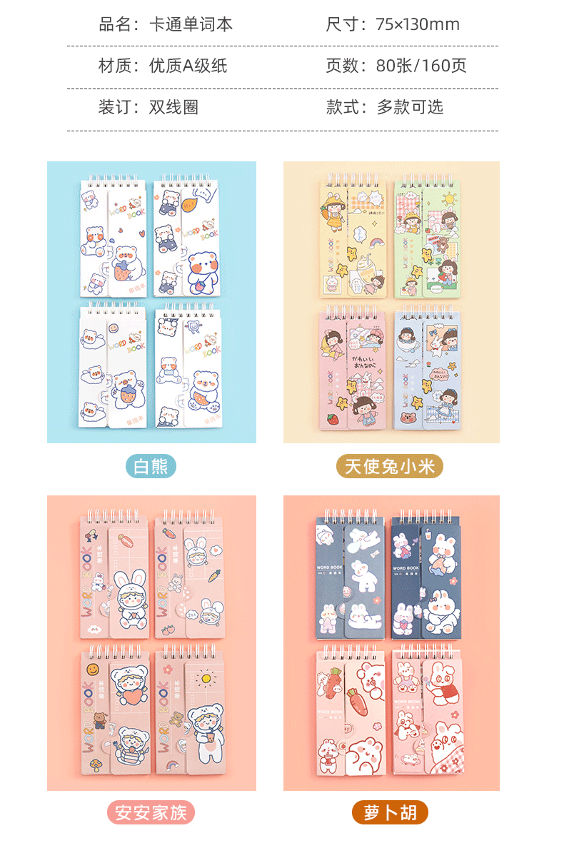 英语单词本随身记背英语线圈本 学生文具迷你便携记事本 便签本子 1本