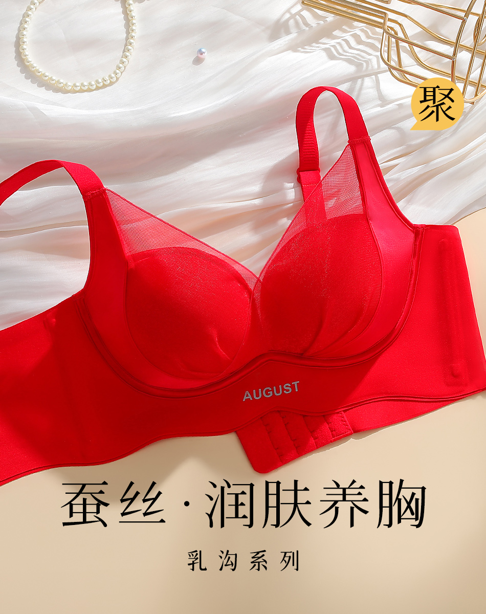 【蚕丝养护小胸聚拢】轻奢性感美背调整型本命年红色内衣女文胸罩丝丝浅舞