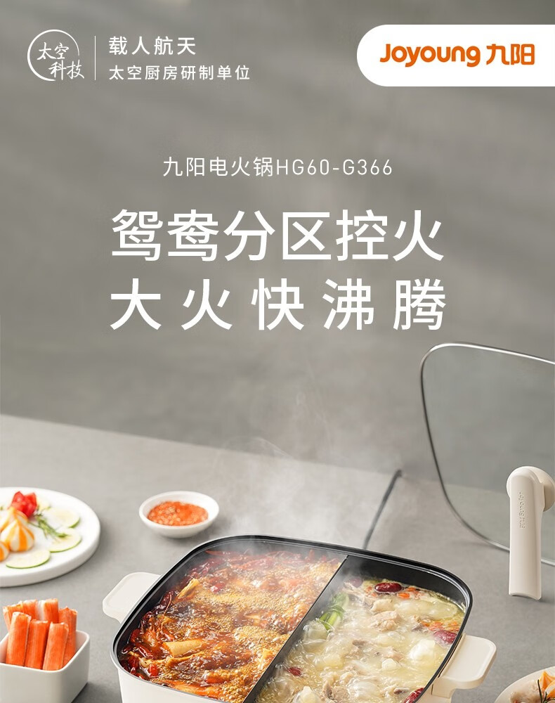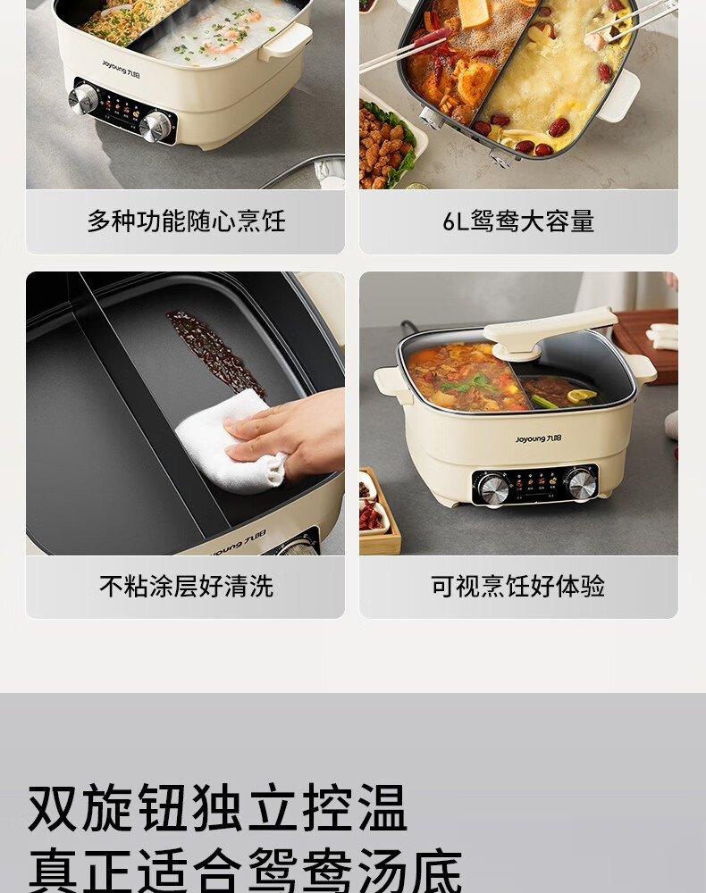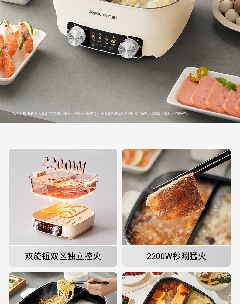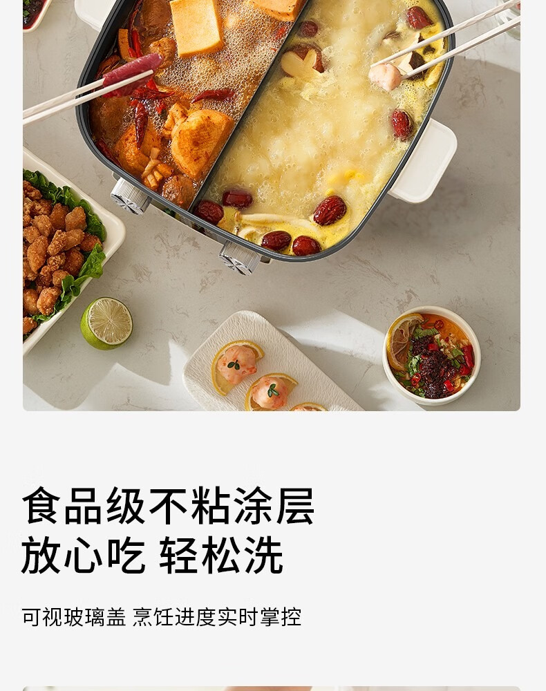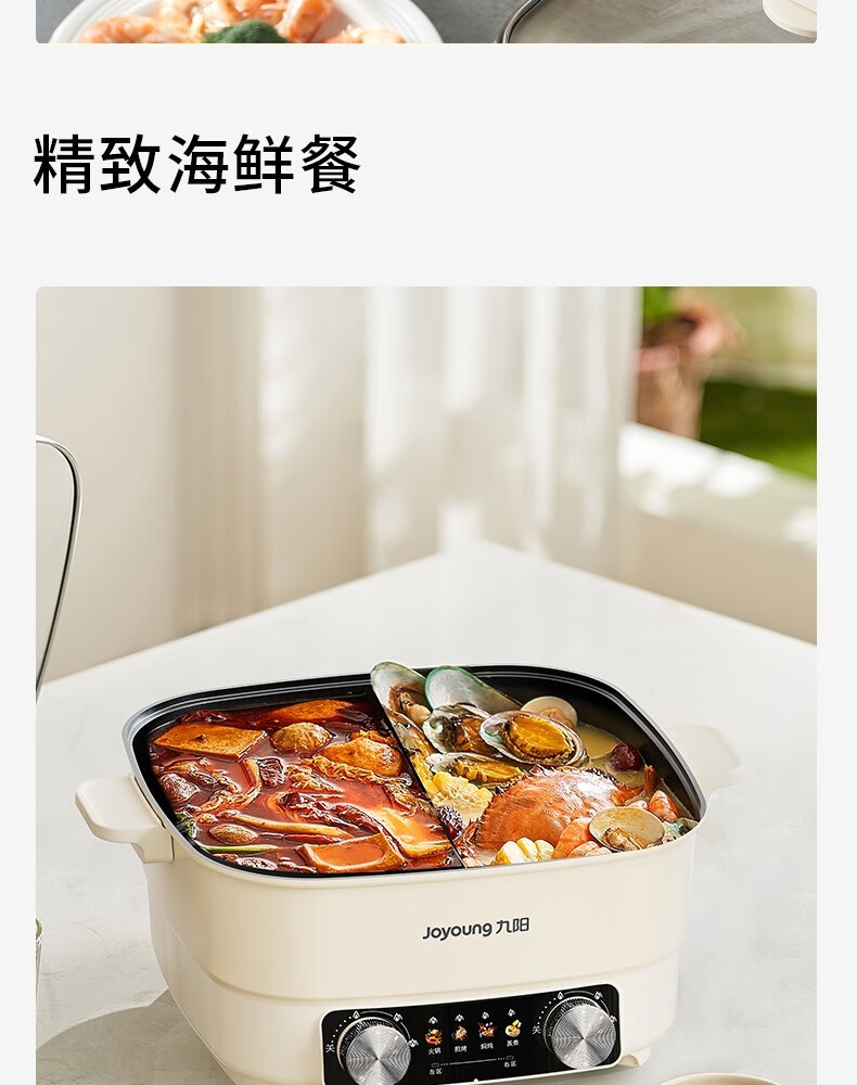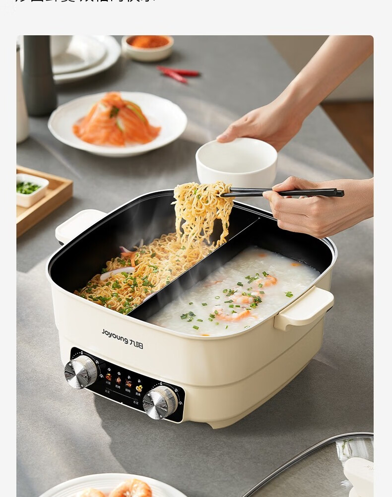 九阳秒涮鸳鸯电火锅家用多功能速沸电热锅不粘煎炒一体电煮锅火锅