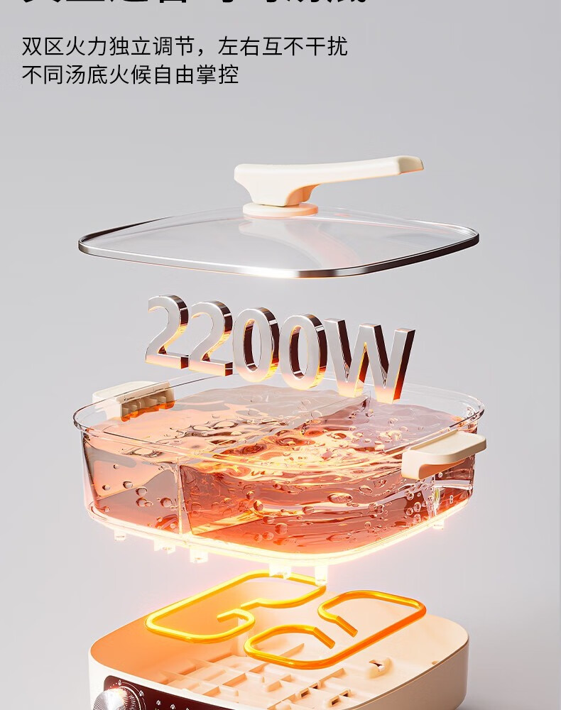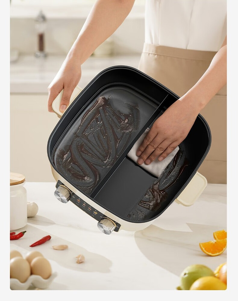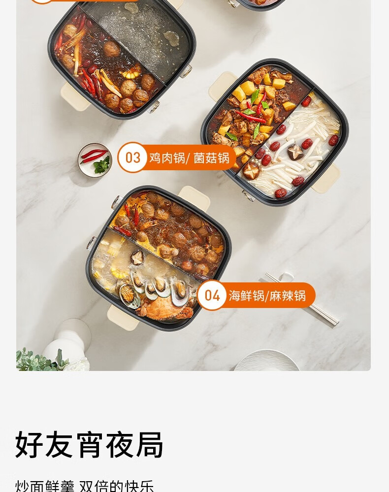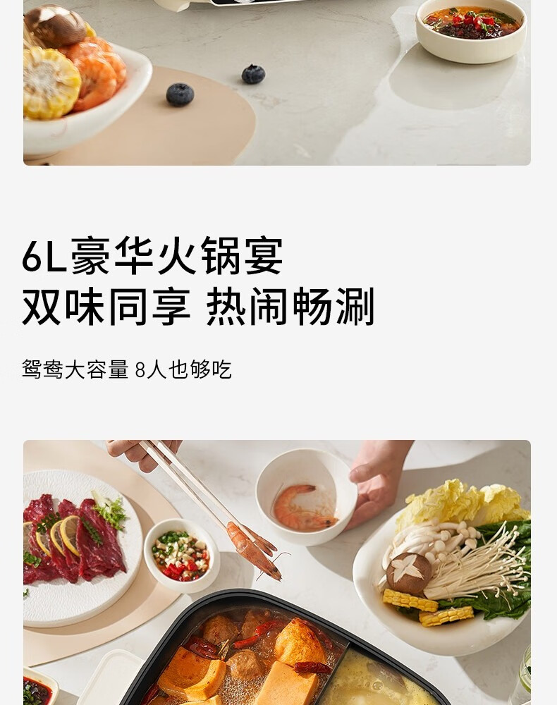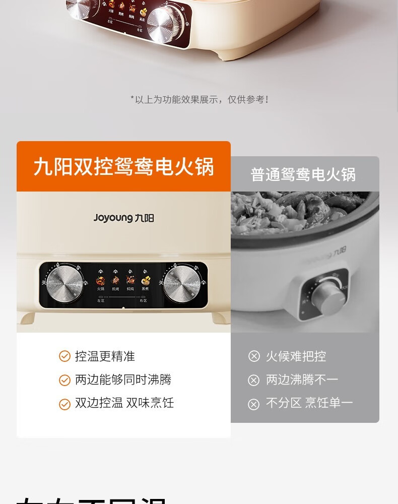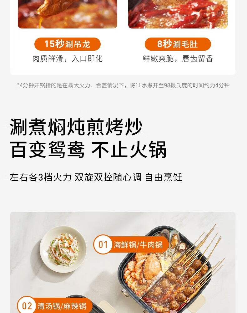 九阳秒涮鸳鸯电火锅家用多功能速沸电热锅不粘煎炒一体电煮锅火锅
