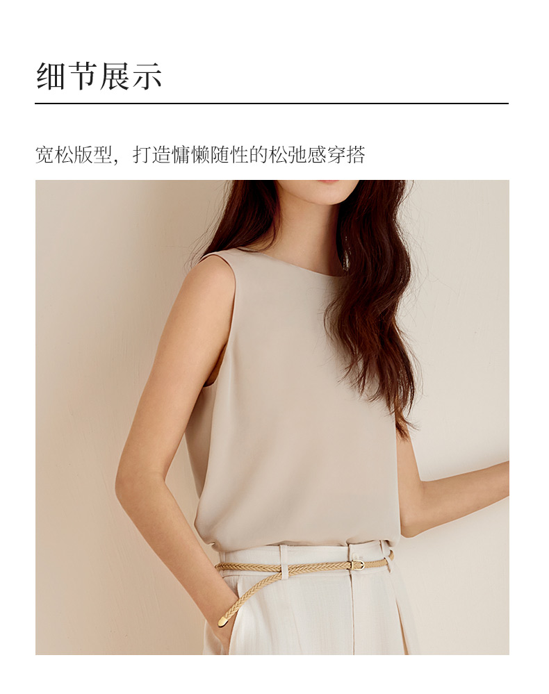 玳莎时尚重磅真丝背心女高级基础圆领百搭款无袖内搭上衣2025新品 FA31001