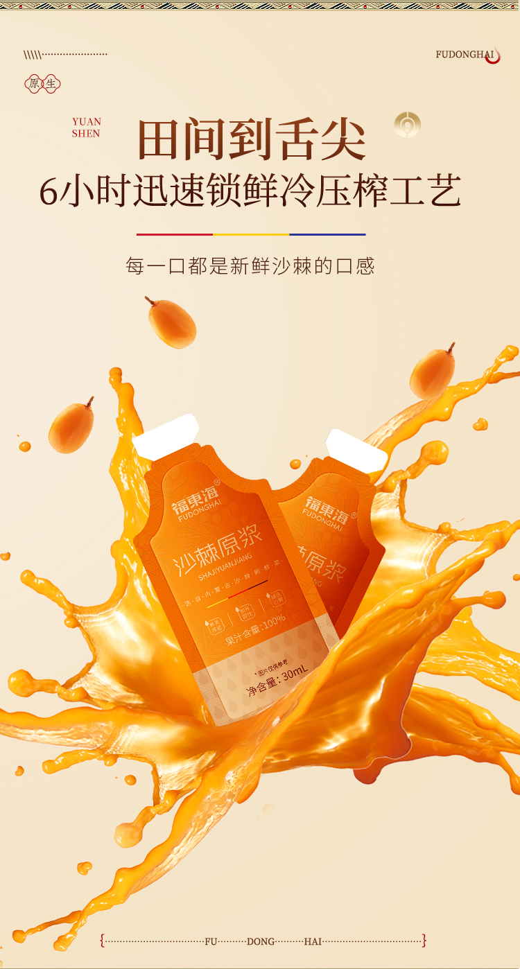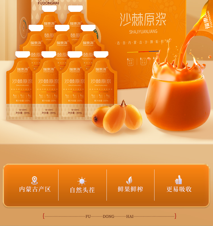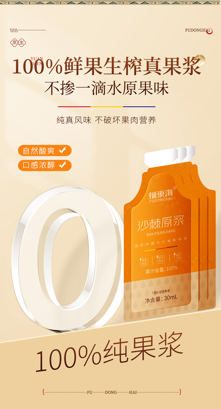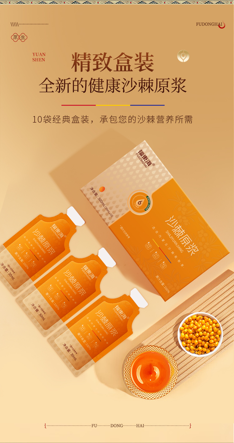 福东海 沙棘原浆300ml(30ml *10袋 )鲜果榨汁 开袋即饮