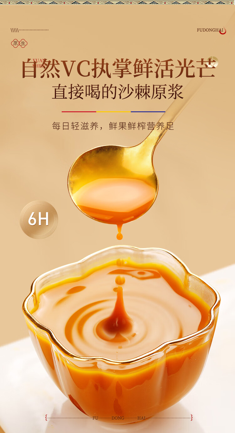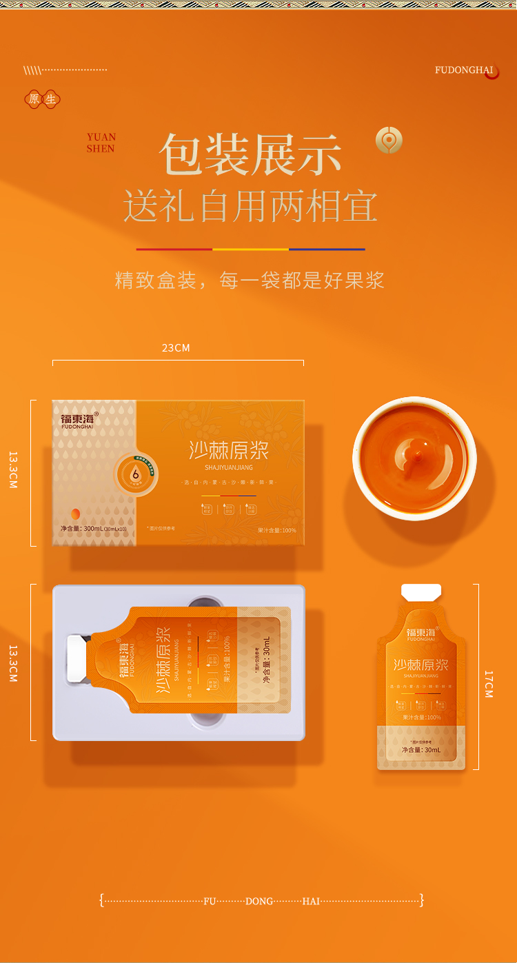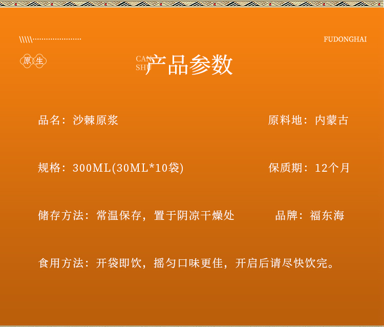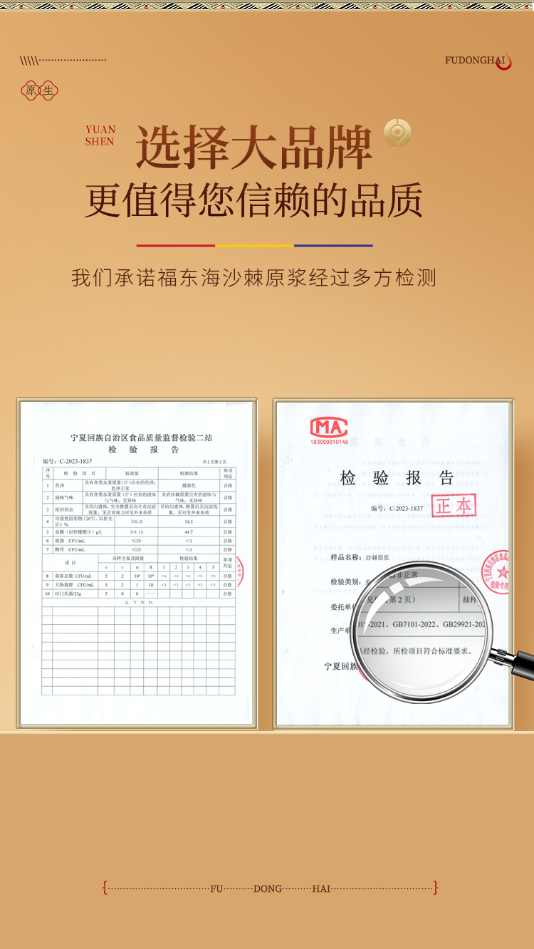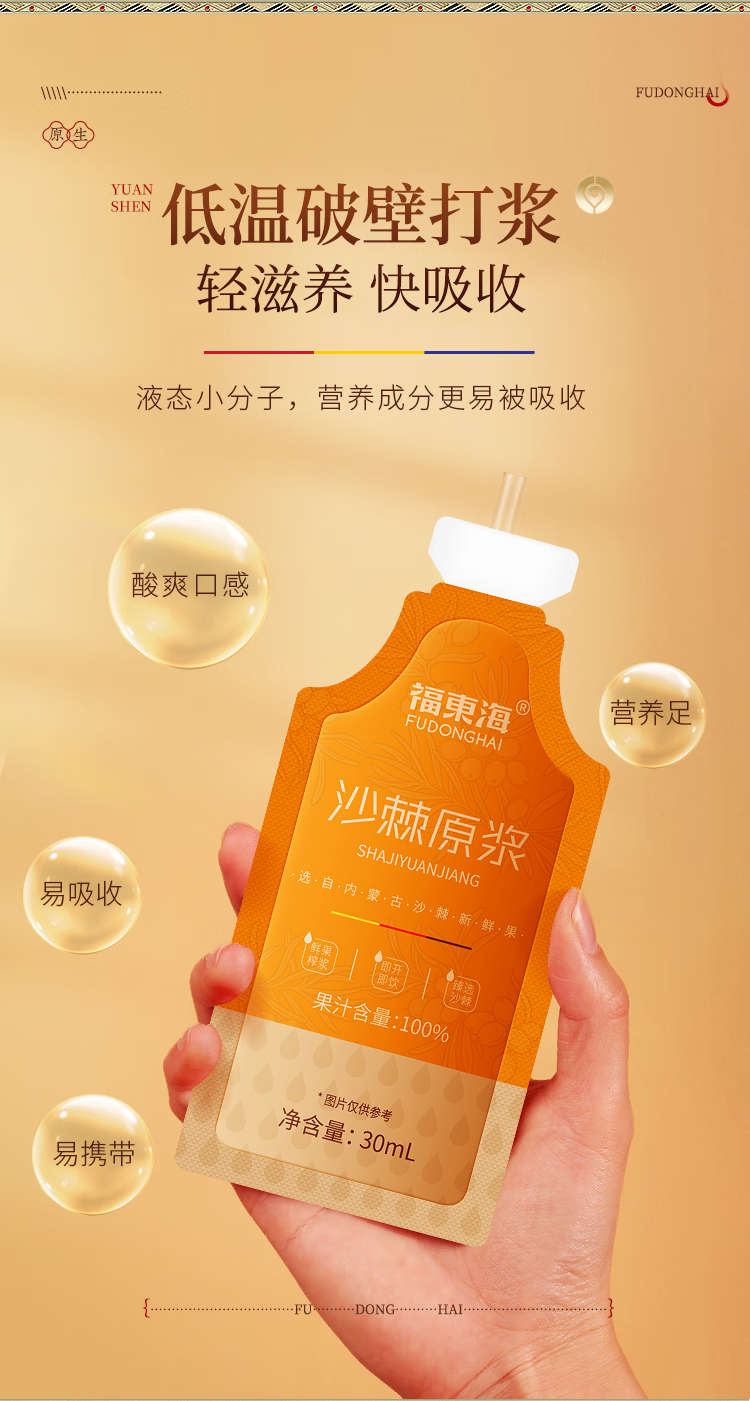 福东海 沙棘原浆300ml(30ml *10袋 )鲜果榨汁 开袋即饮