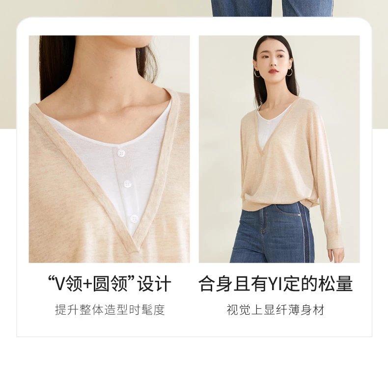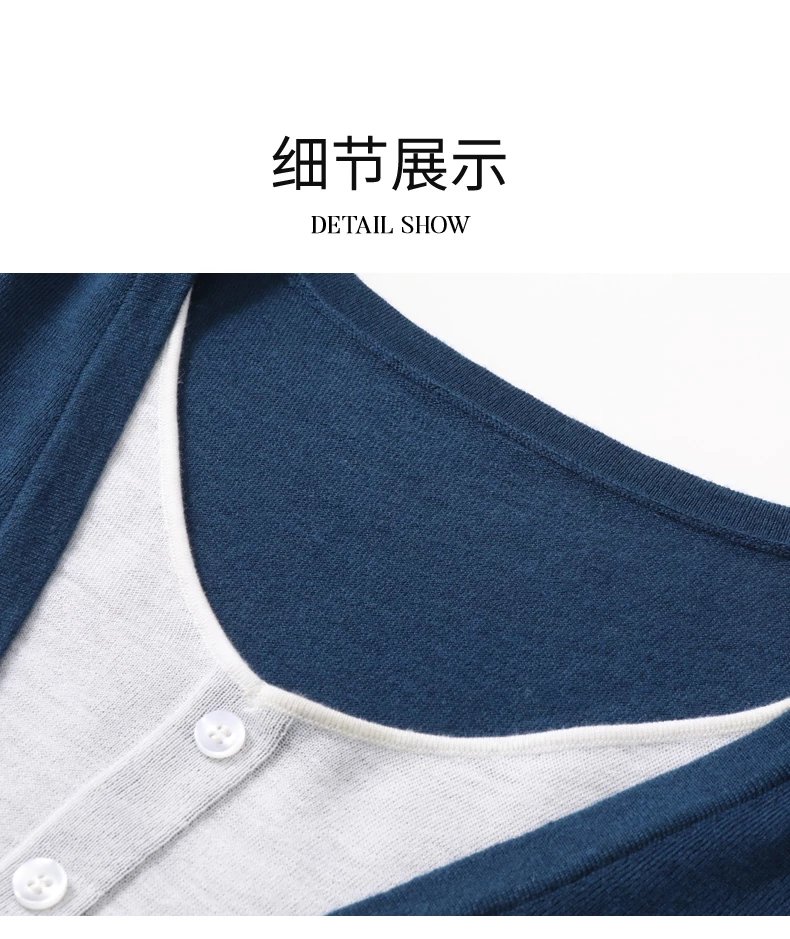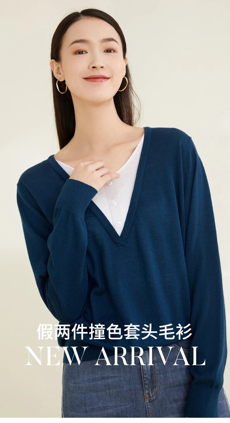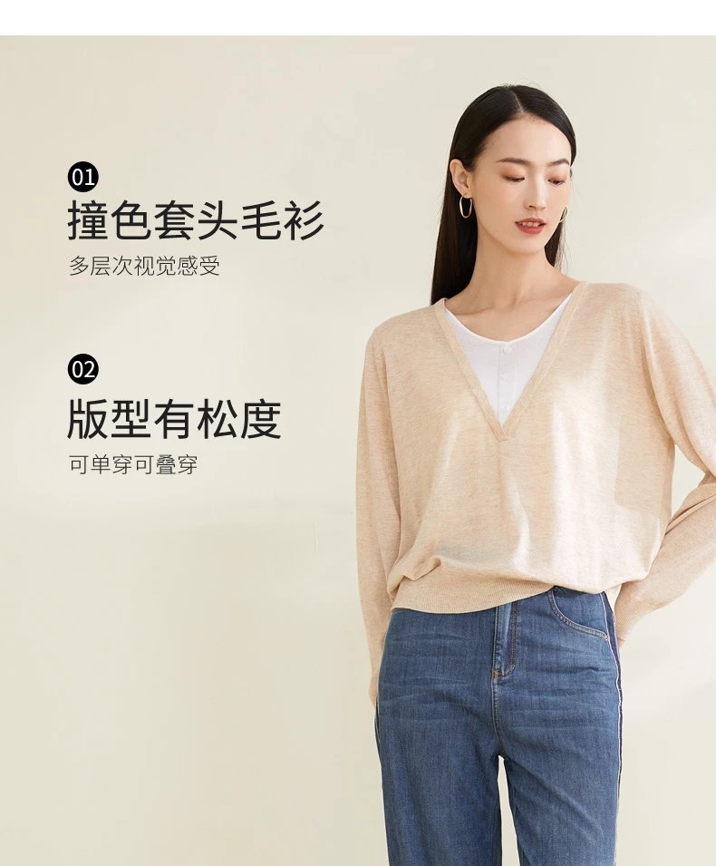 玳莎撞色假两件针织衫别致圆领通勤上衣女 CA33301