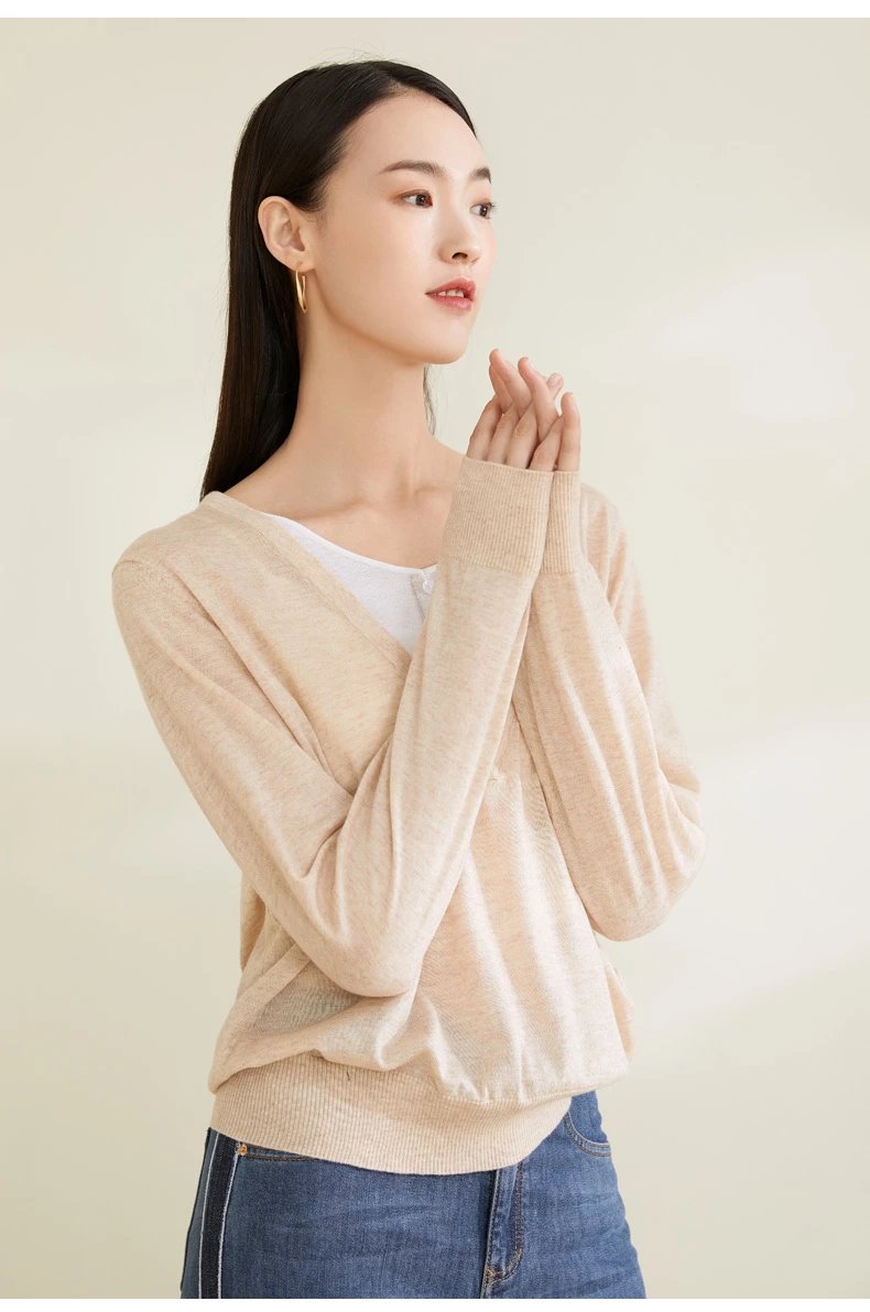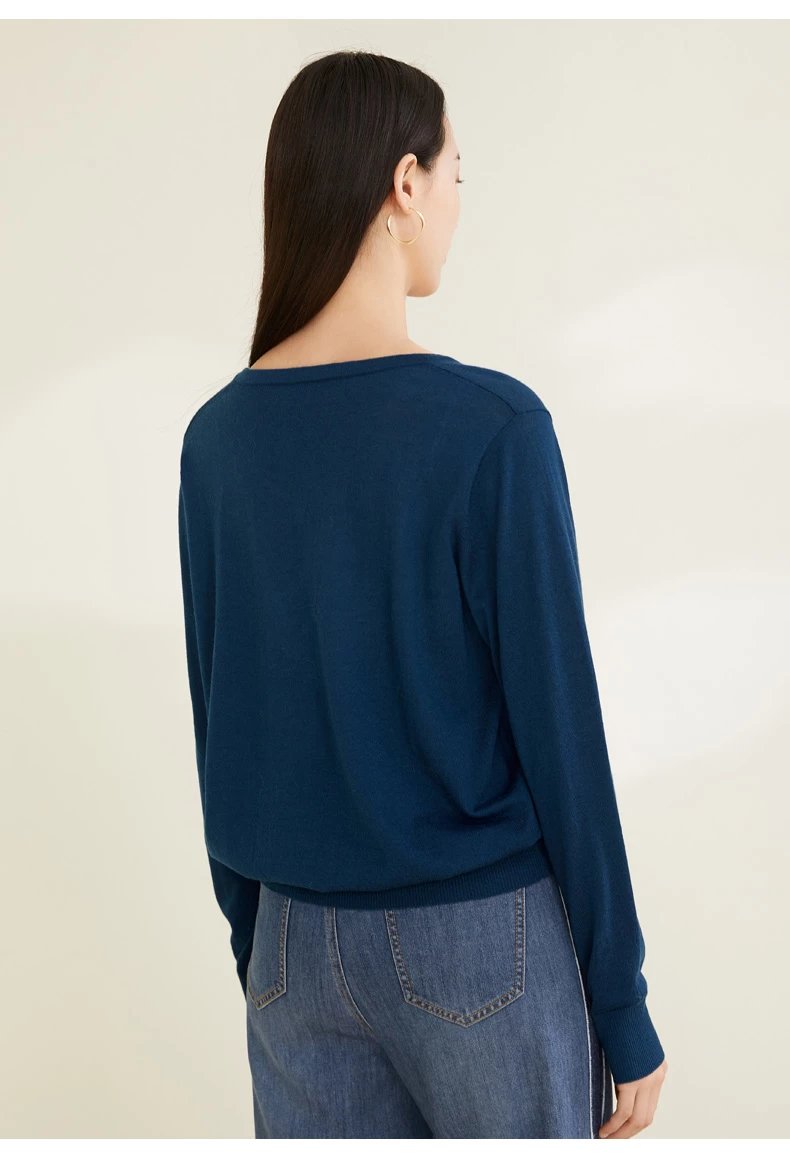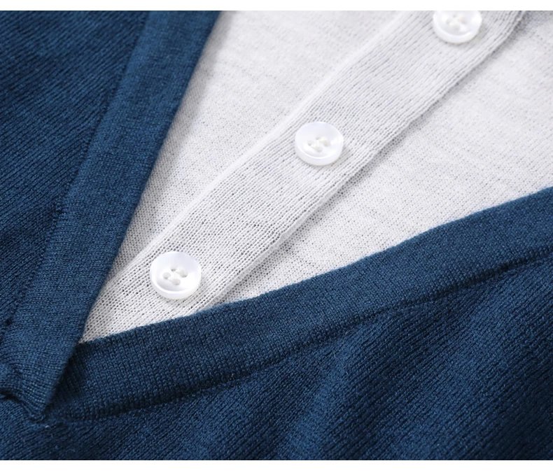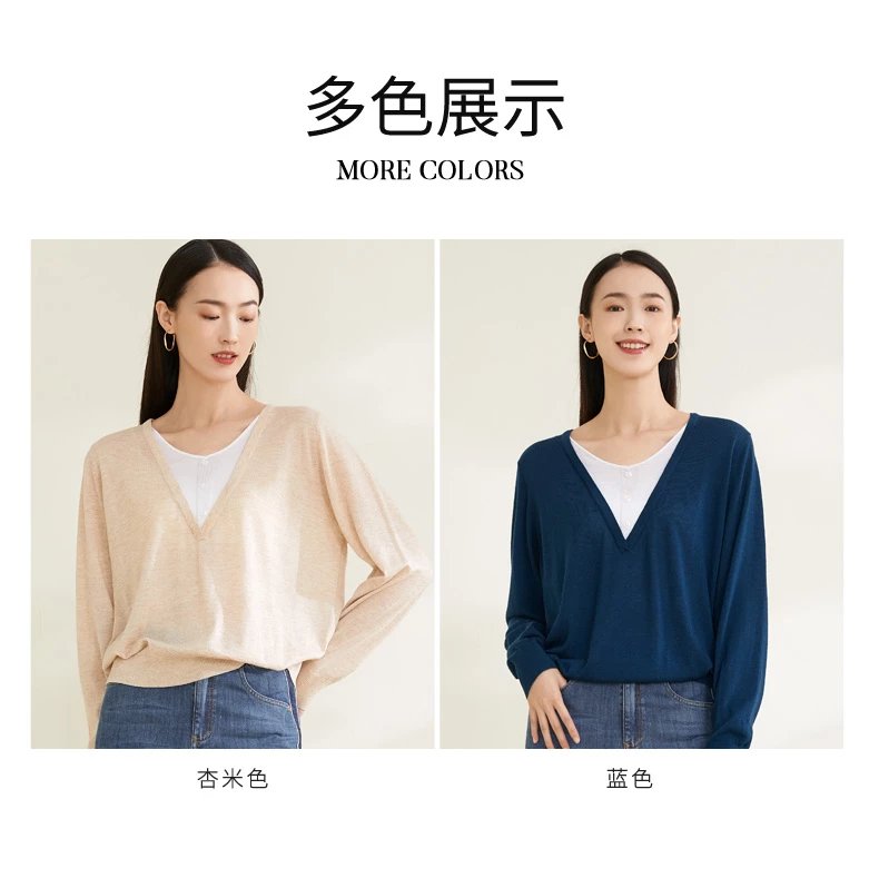 玳莎撞色假两件针织衫别致圆领通勤上衣女 CA33301