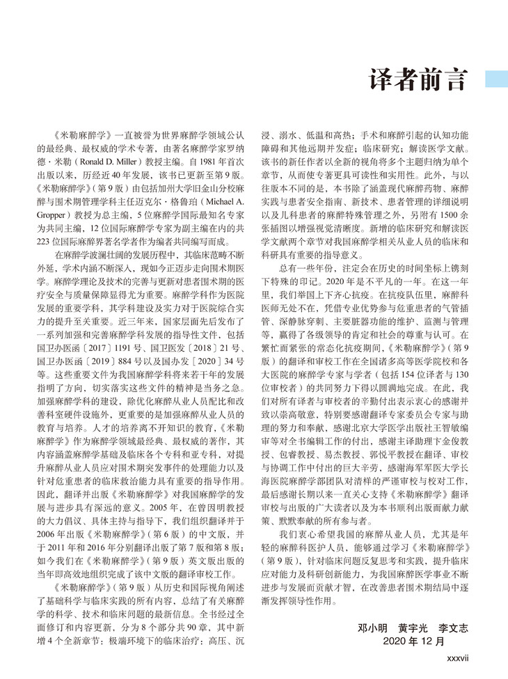 第9版《米勒麻醉学》涵盖了从历史和国际视角到基础科学与当前临床实践的所有内容,始终是该领域最权威的专著。Michael A.Gropper博士带领的国际专家团队,带给读者每天需要面对的关于技术、科学和临床问题的全新信息——无论为复习考试,为深入学习,还是为了解决临床麻醉管理中遇到的具有挑战性的医疗问题。