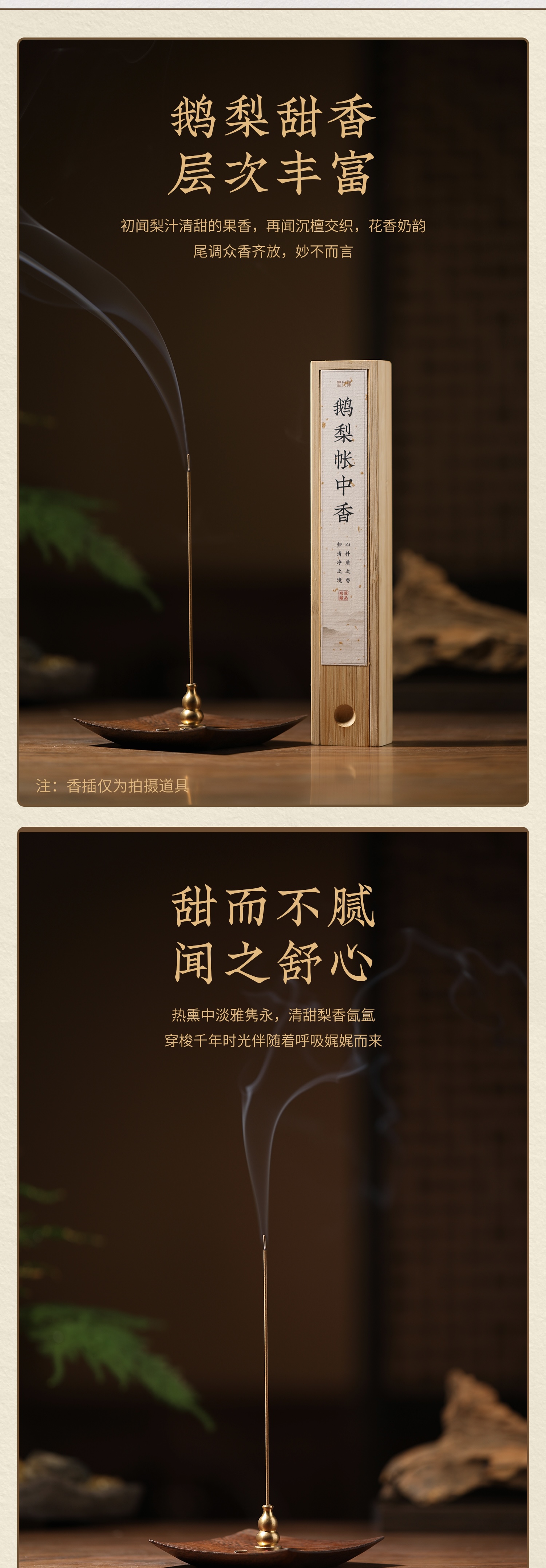 雅致醇香,梨汁甜、花香妙、沉檀馥、药香净众香交织