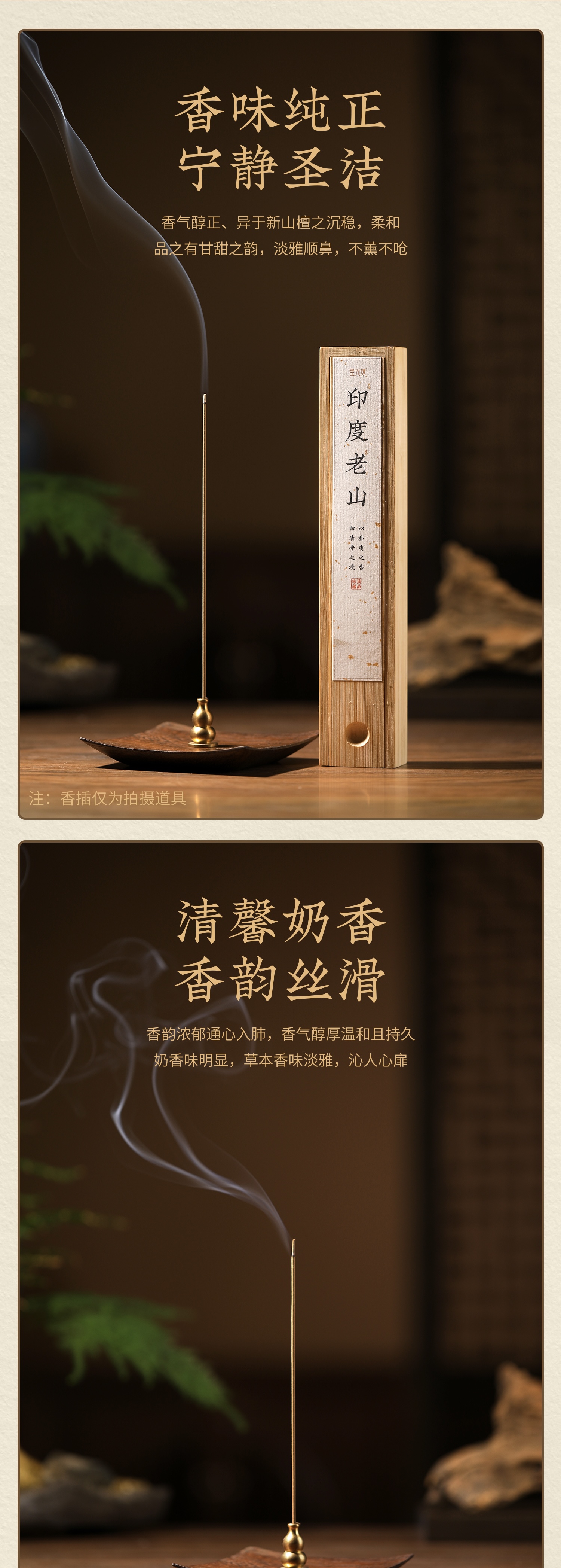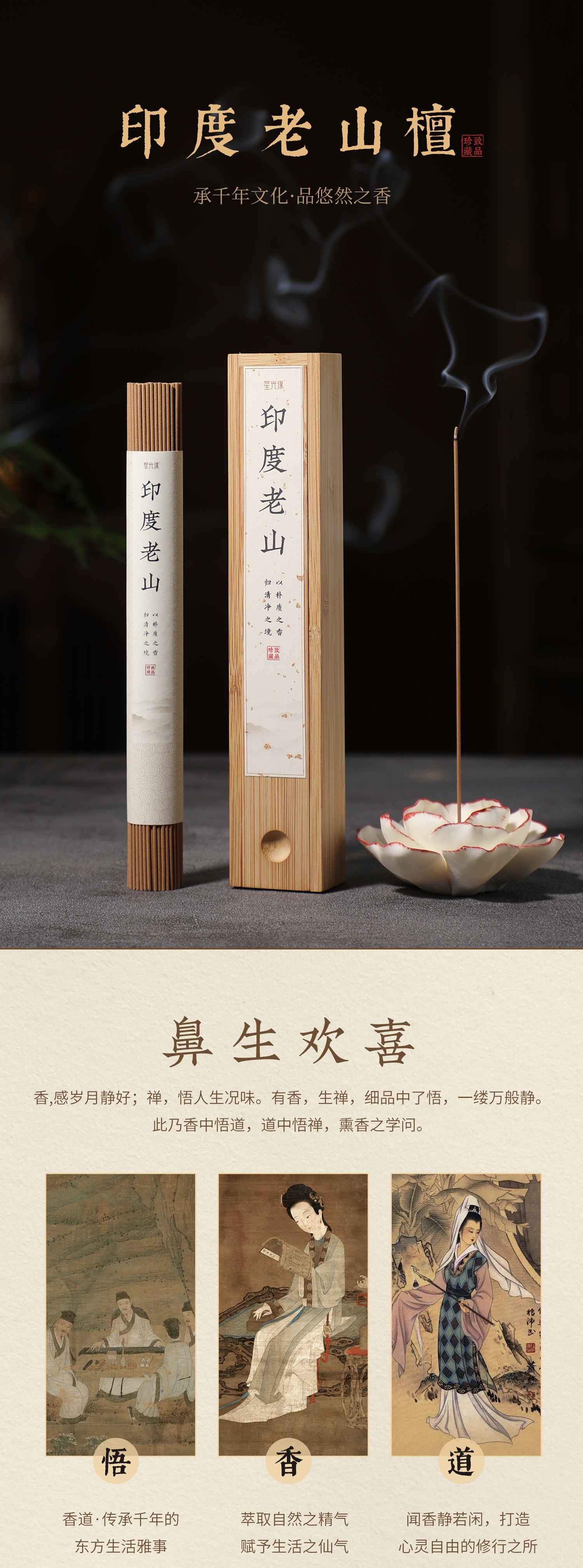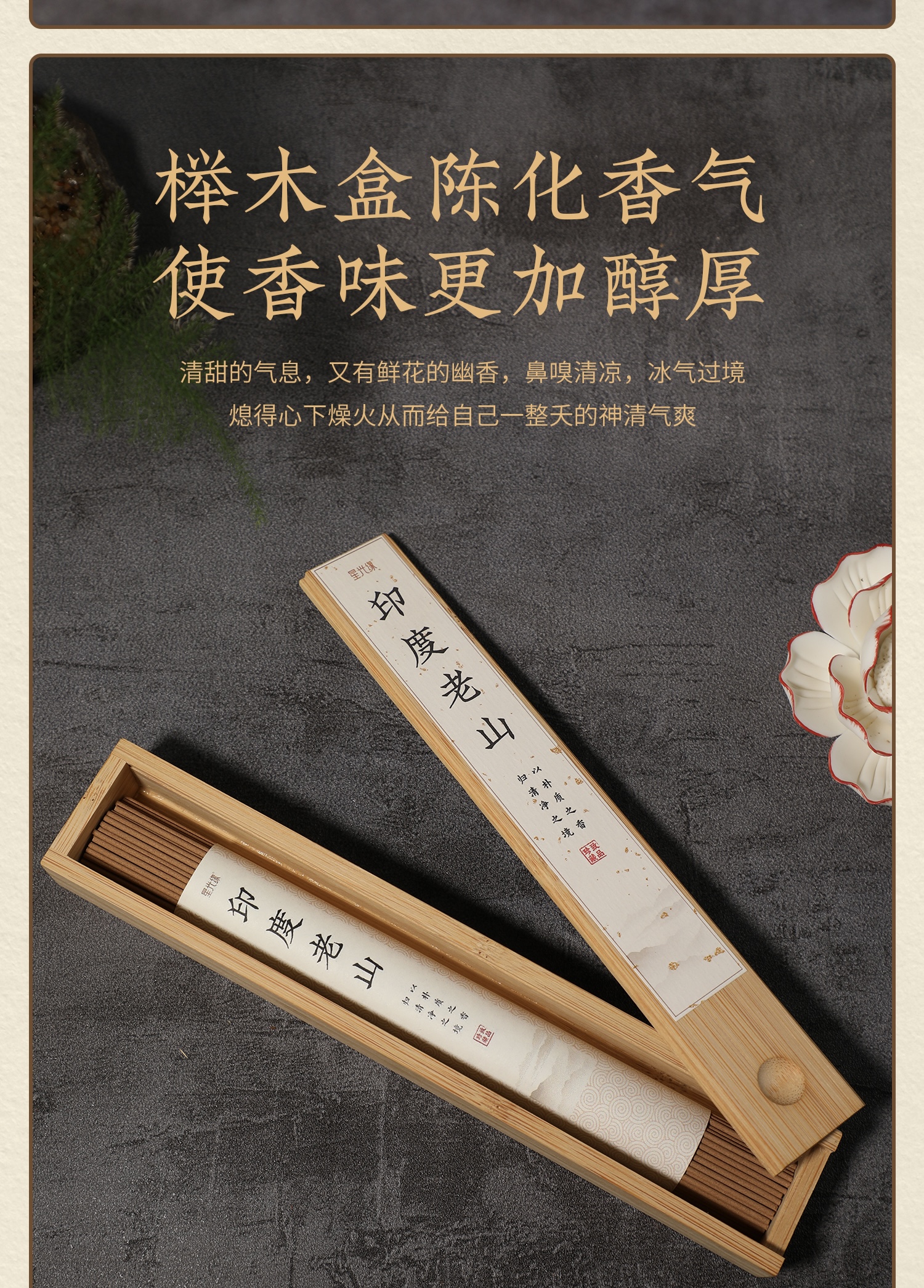 选自80年树龄以上的老山檀经过30年的纯化木气稳定,味道醇厚