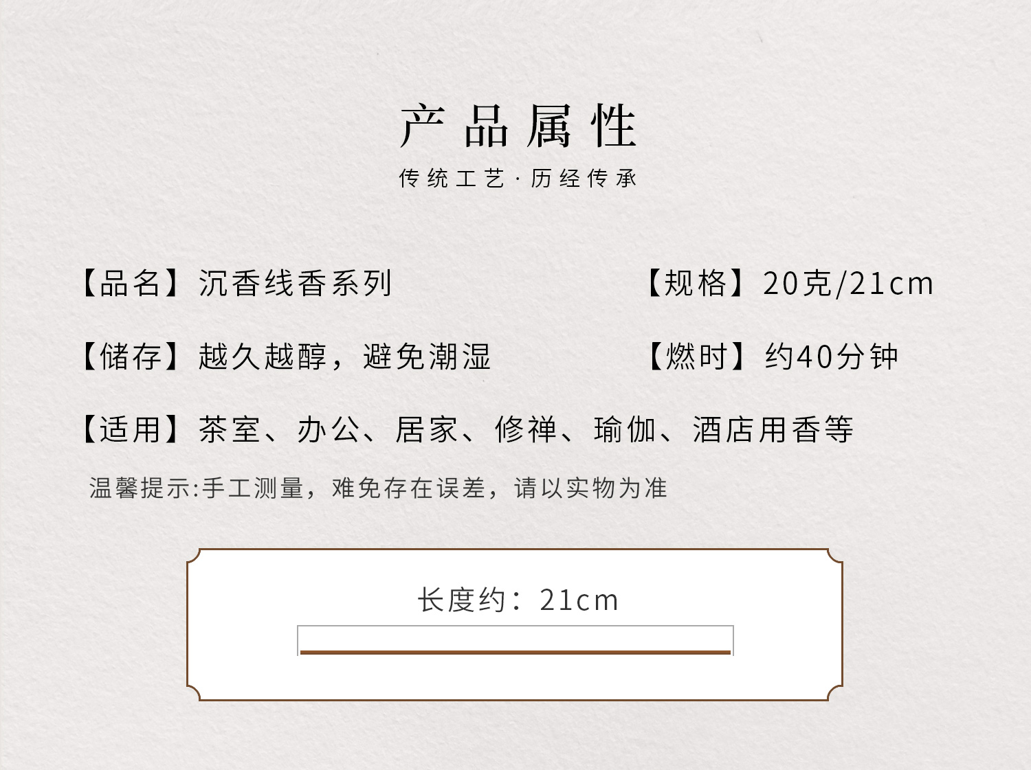 奕虹定制款沉香线香,天然香材制作 调和情智,宁和心神,安神助眠,香熏香家用室内瑜伽卧室香薰