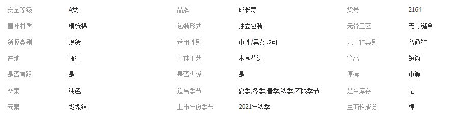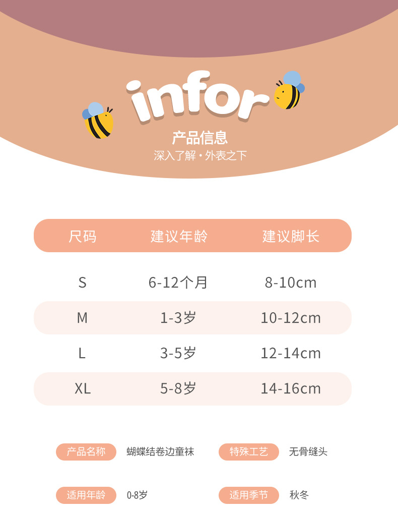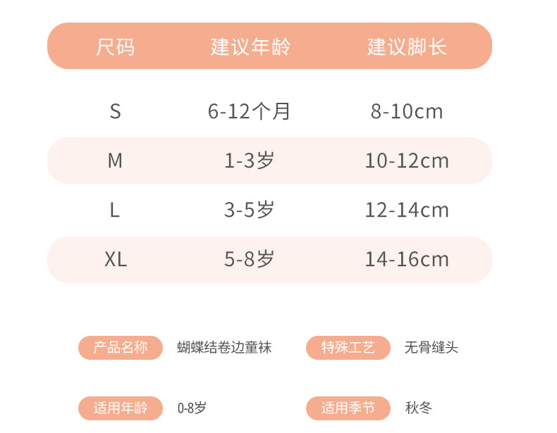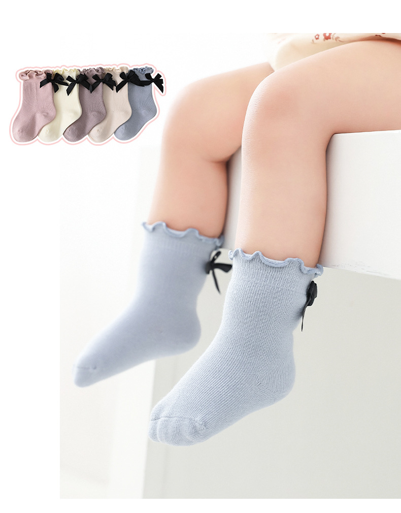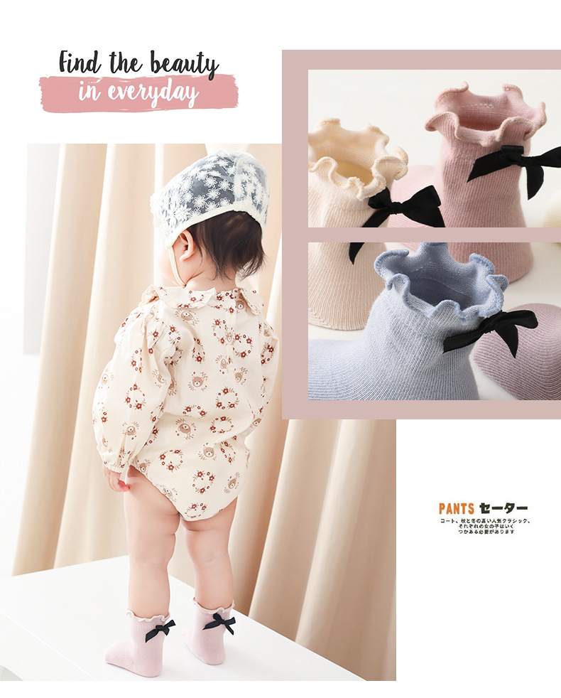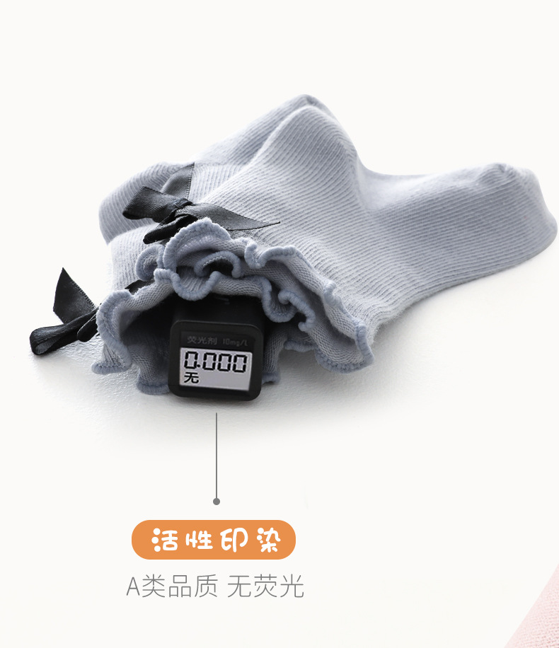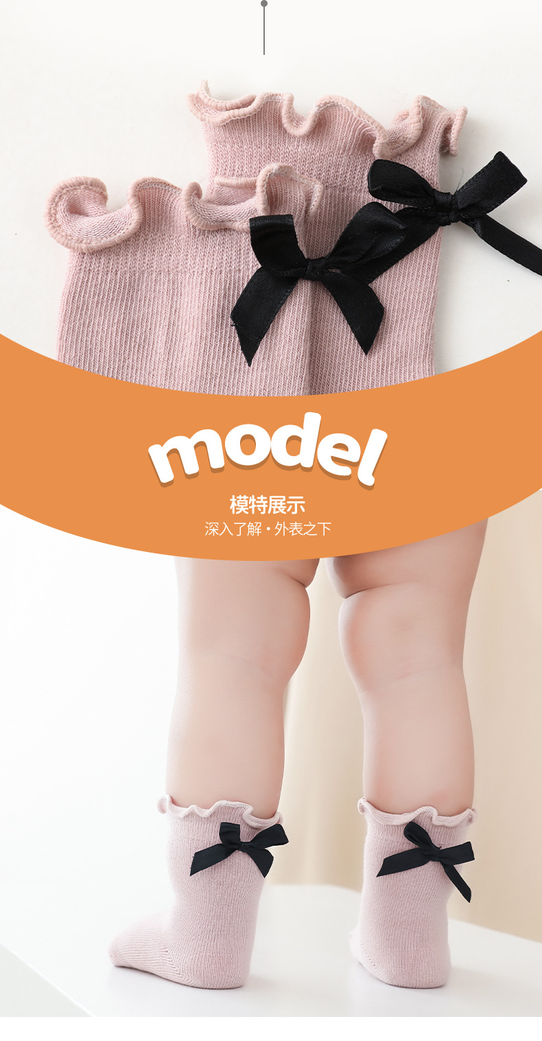 【3双装 舒适绵柔】A类婴儿袜子秋冬新款蝴蝶结宝宝中筒袜 韩版木耳边新生儿松口中筒袜