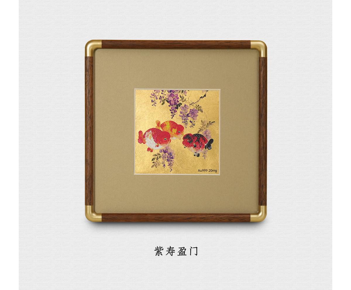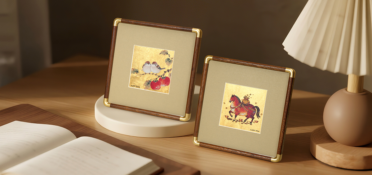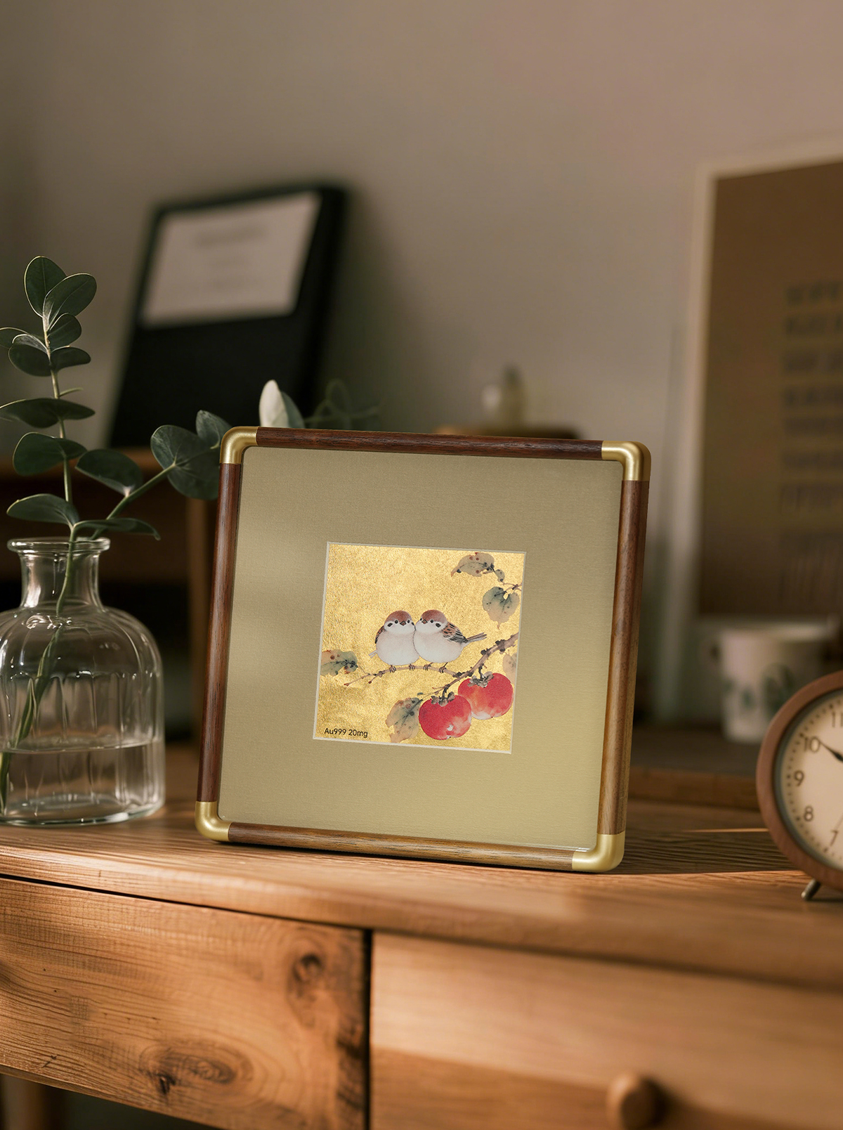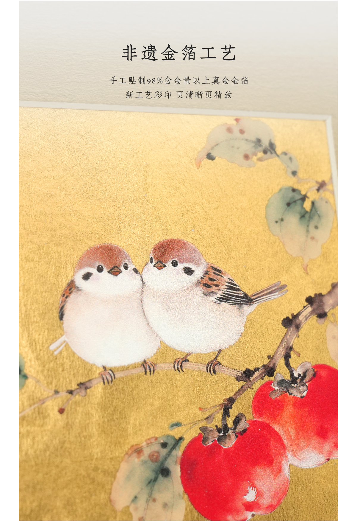 金陵金箔新中式金箔画摆台喜鹊柿子桌面装饰画中式书房摆件高档
