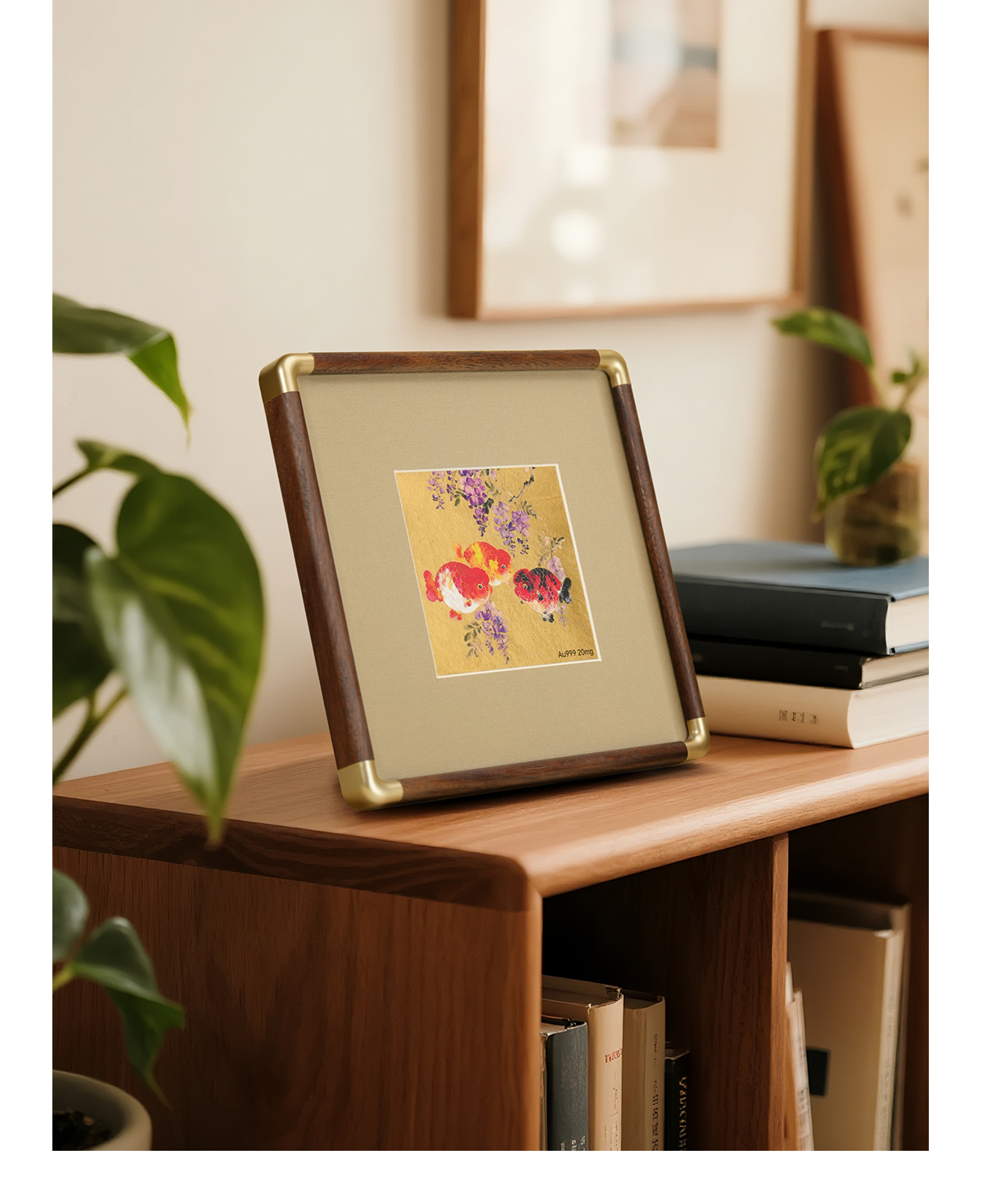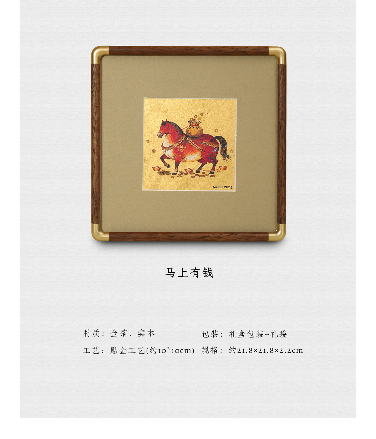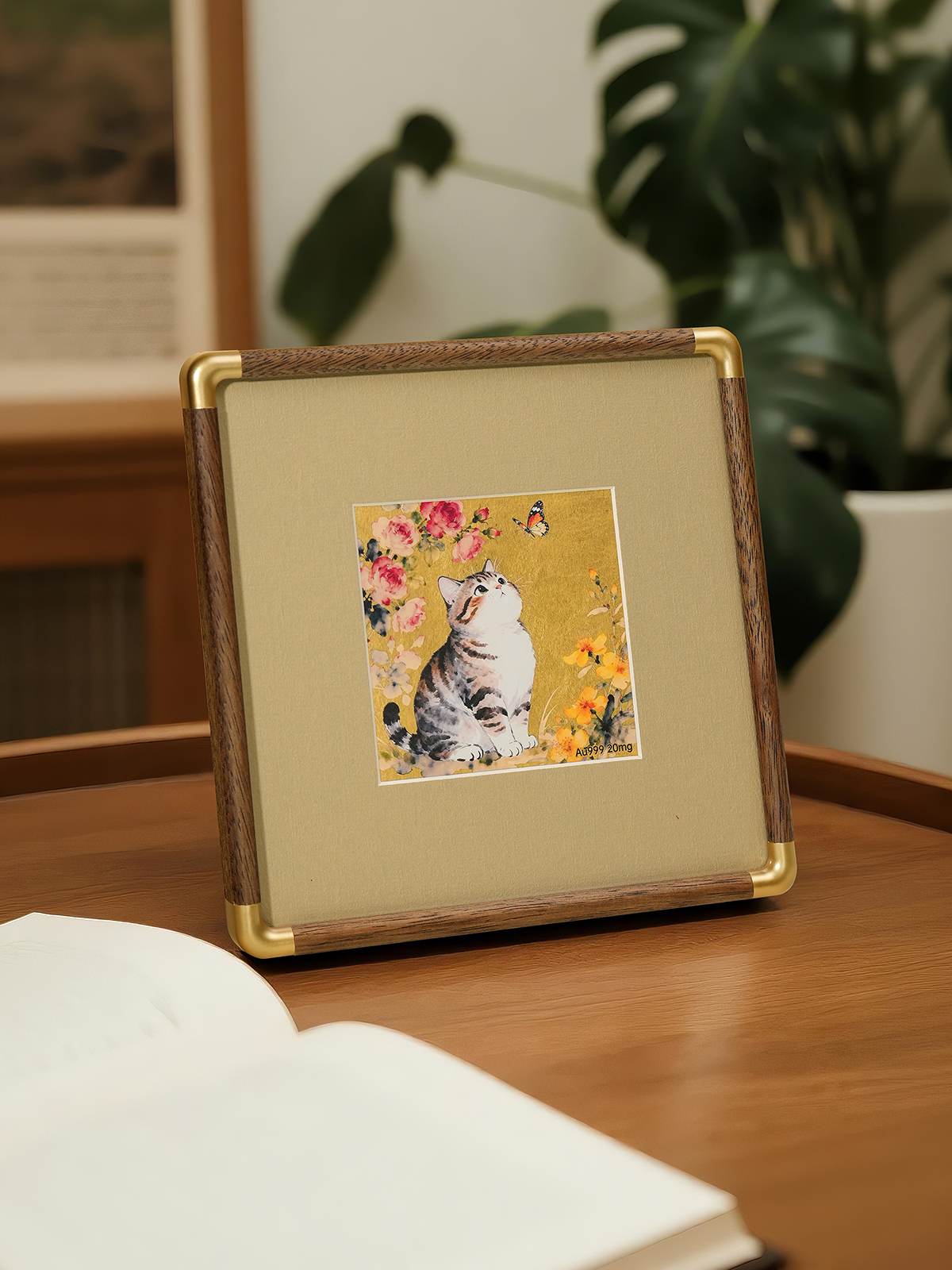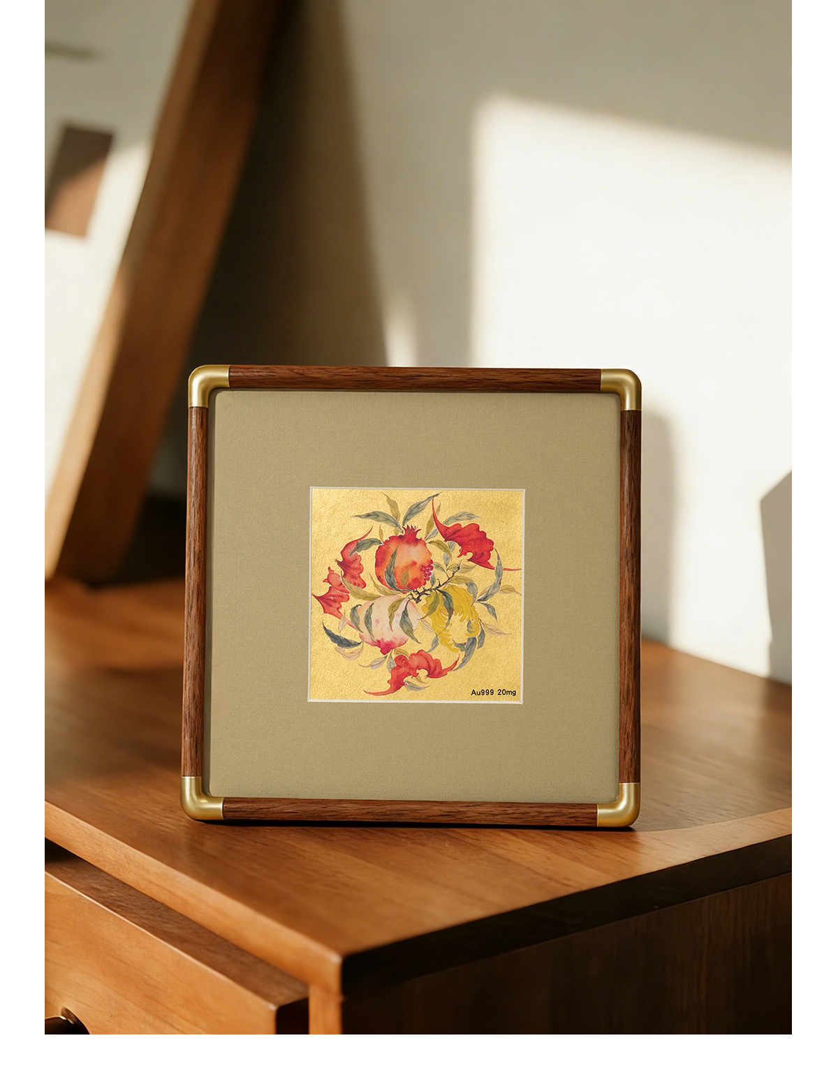金陵金箔新中式金箔画摆台喜鹊柿子桌面装饰画中式书房摆件高档