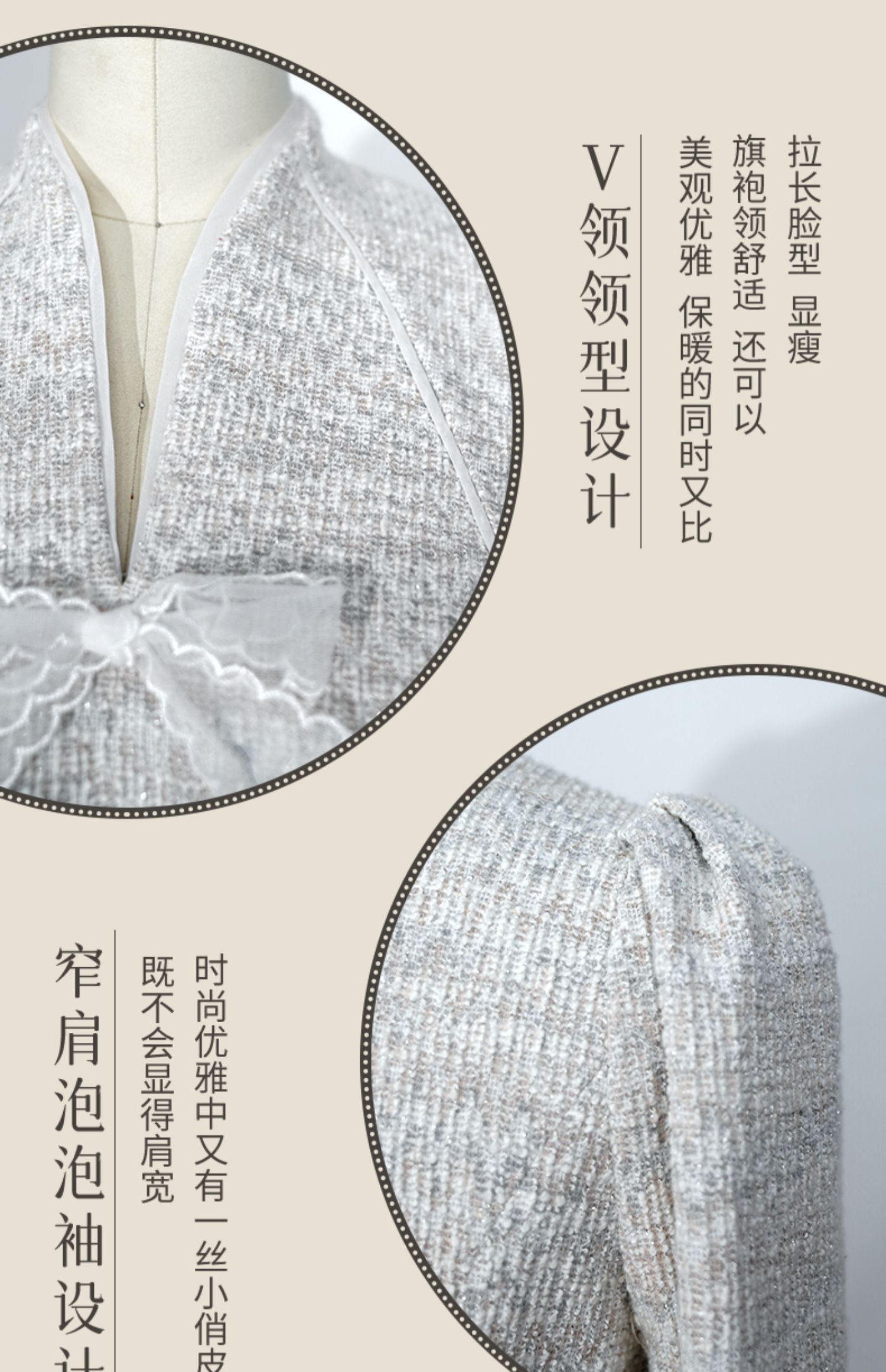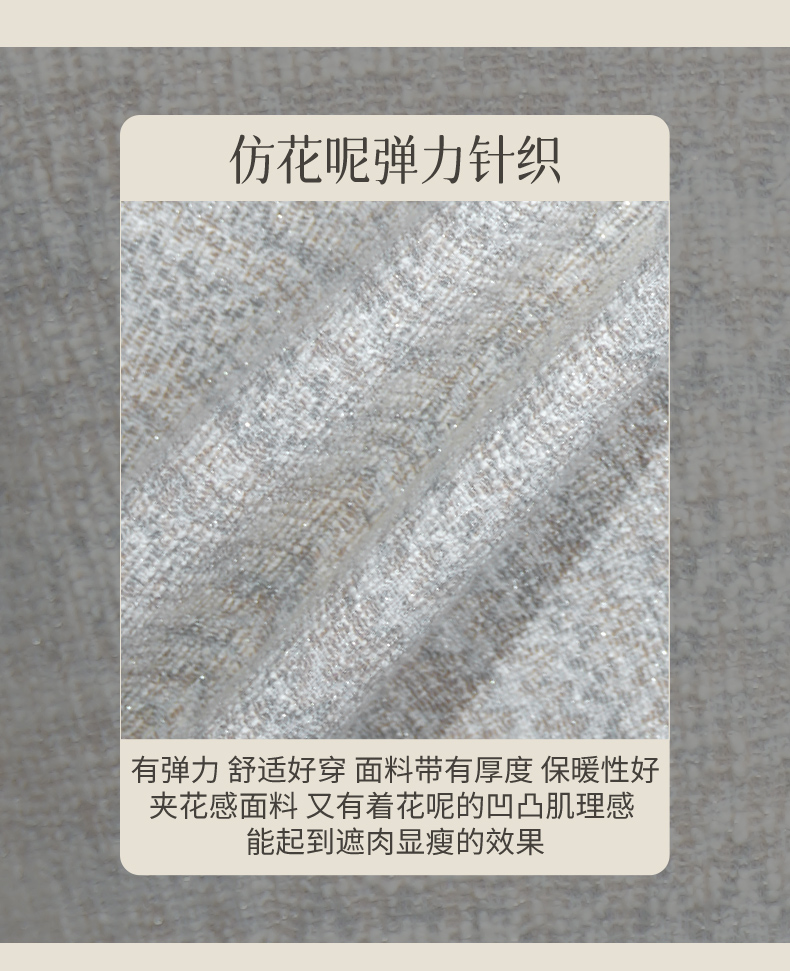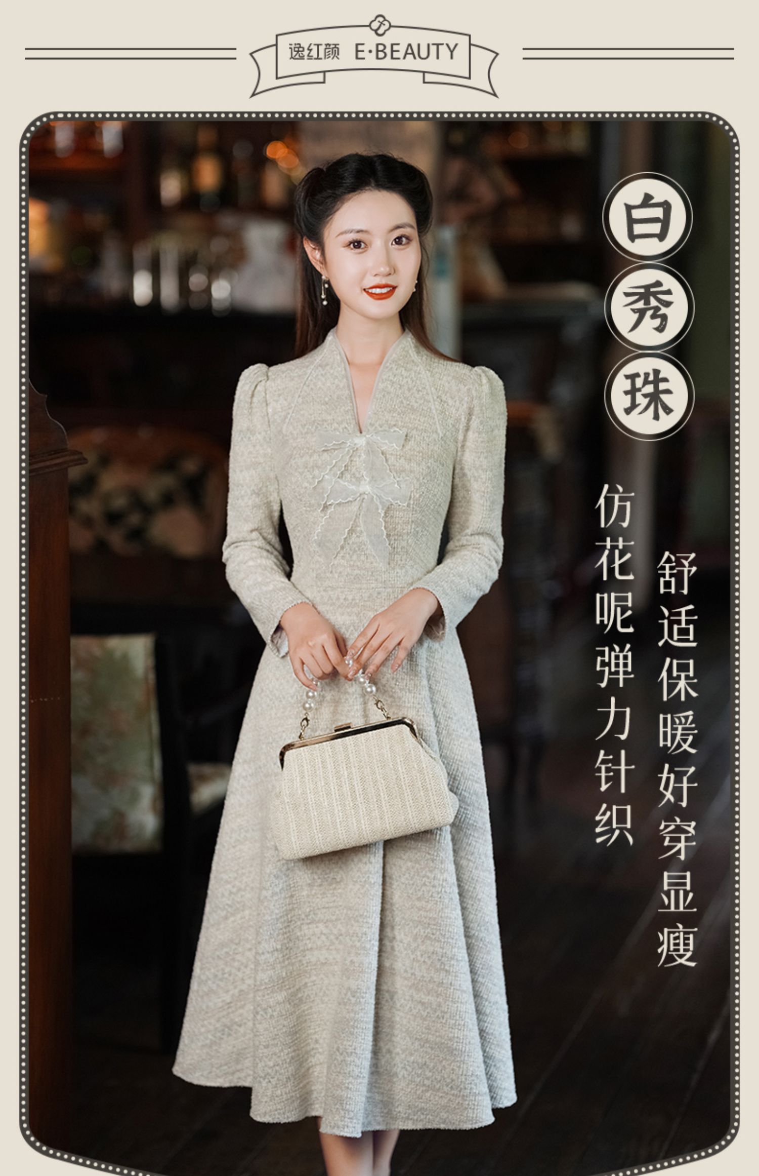 逸红颜白秀珠2025冬季新款仿花呢弹力针织连衣裙女九分袖法式气质