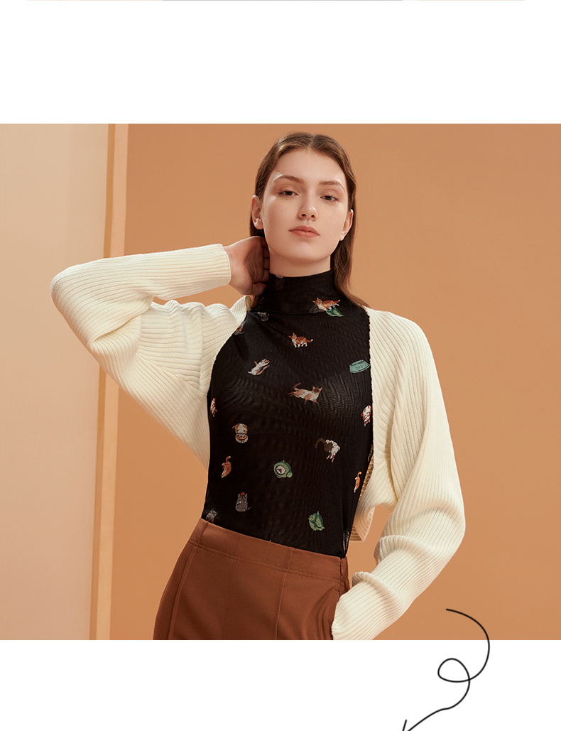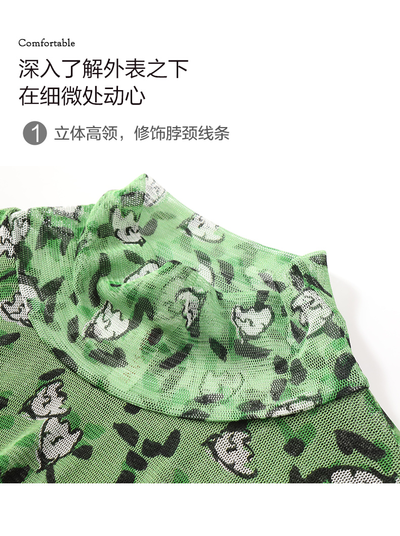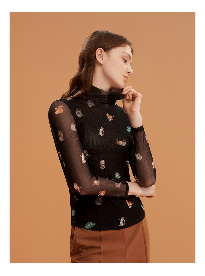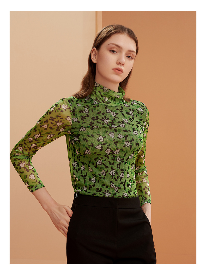金三塔[裸感舒适] 真丝高领网眼印花打底上衣女桑蚕丝保暖打底衫 NZFBC721