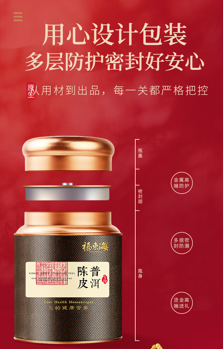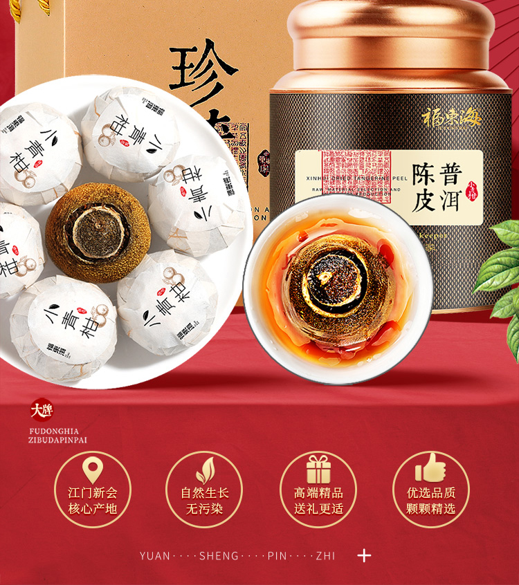 【福东海】陈皮普洱茶 正宗生晒小青桔陈皮柑普茶云南宫廷普洱茶熟茶养生茶-MD