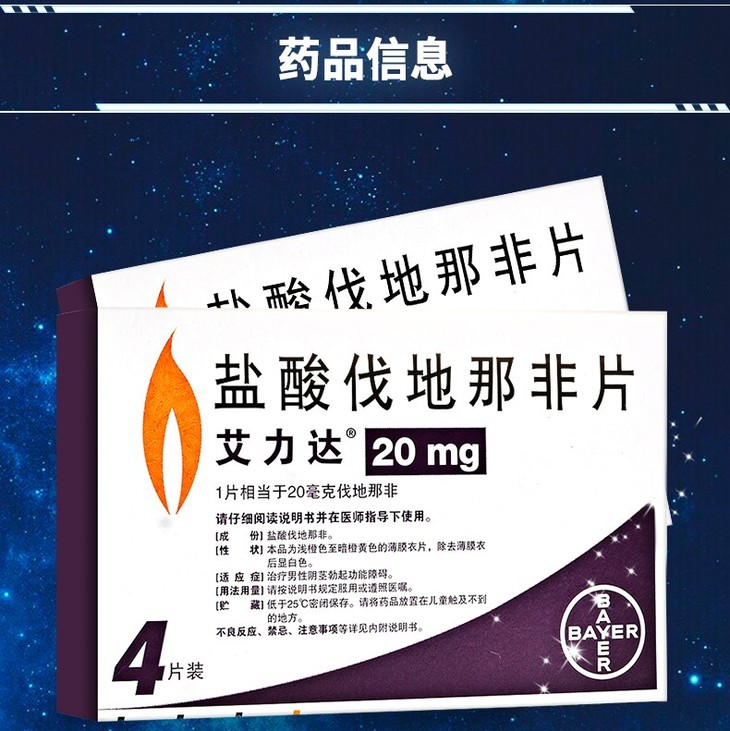 艾力达 盐酸伐地那非片20mg*4片/盒 德国万艾可原研刚猛伟哥,无惧酒精,长效