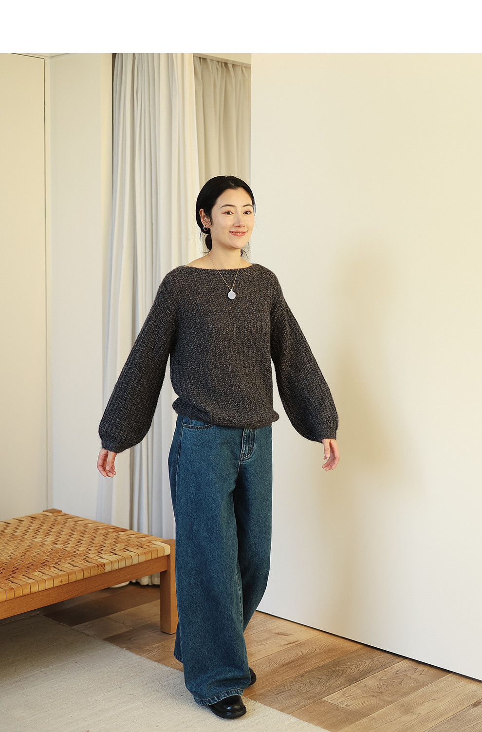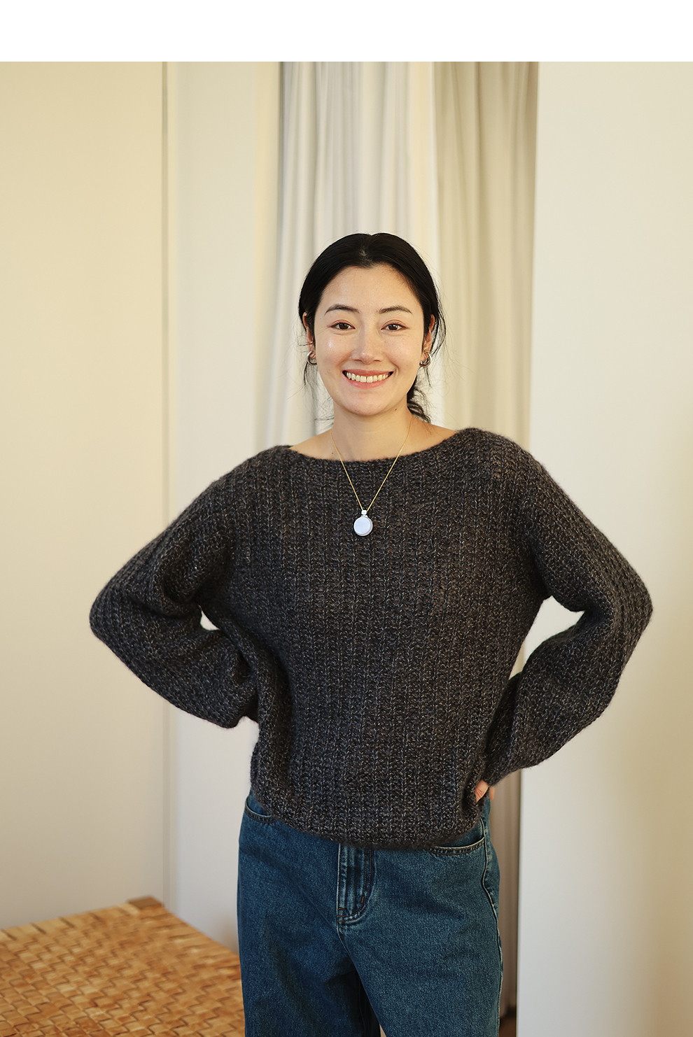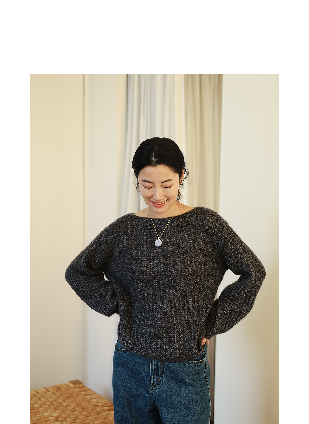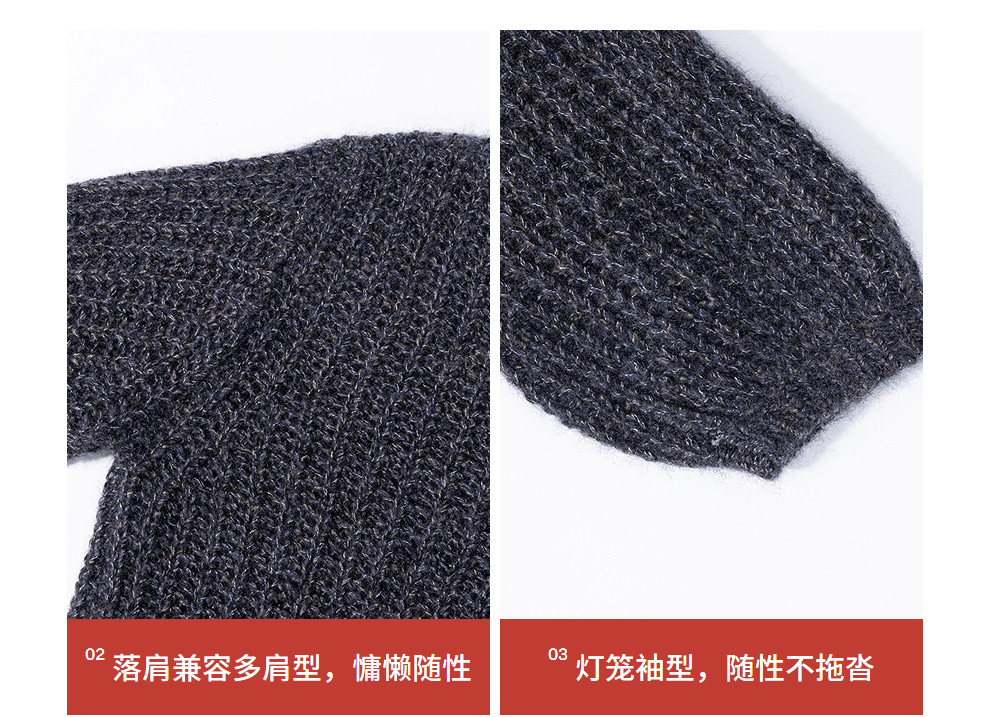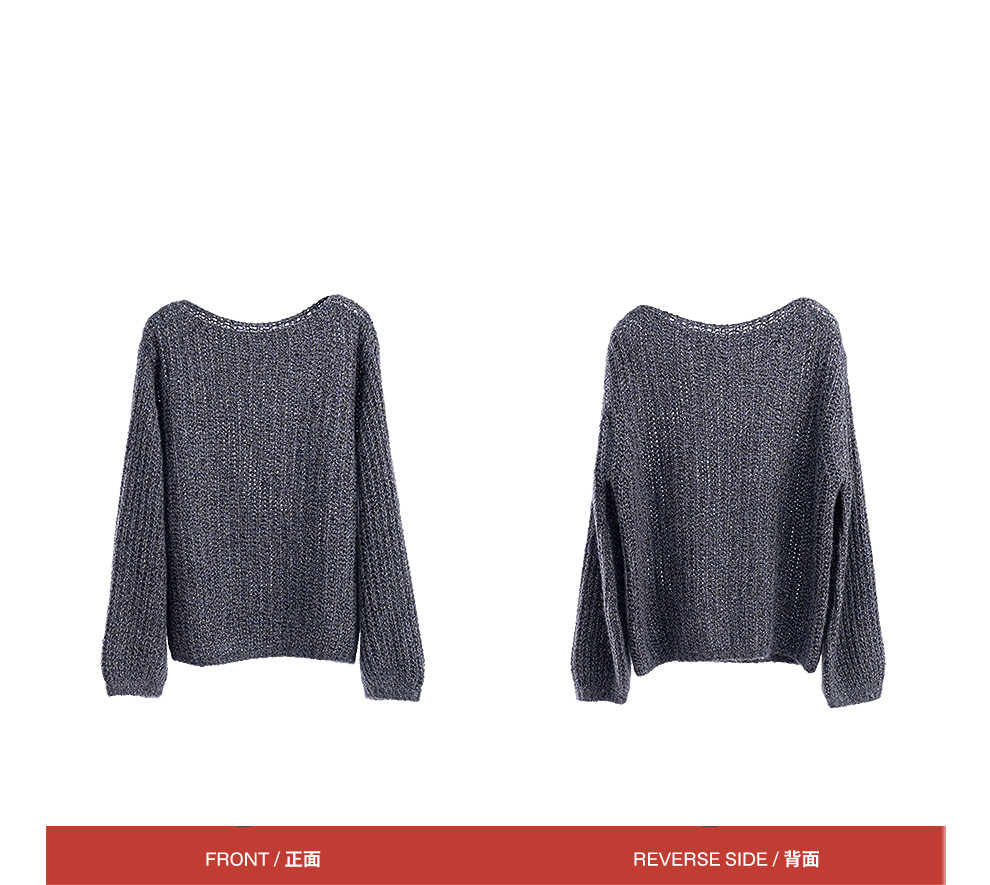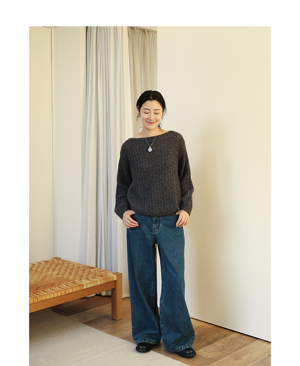 绽放021朵/山羊绒桑蚕丝肌理感一字领宽松套头毛衣慵懒感针织衫女