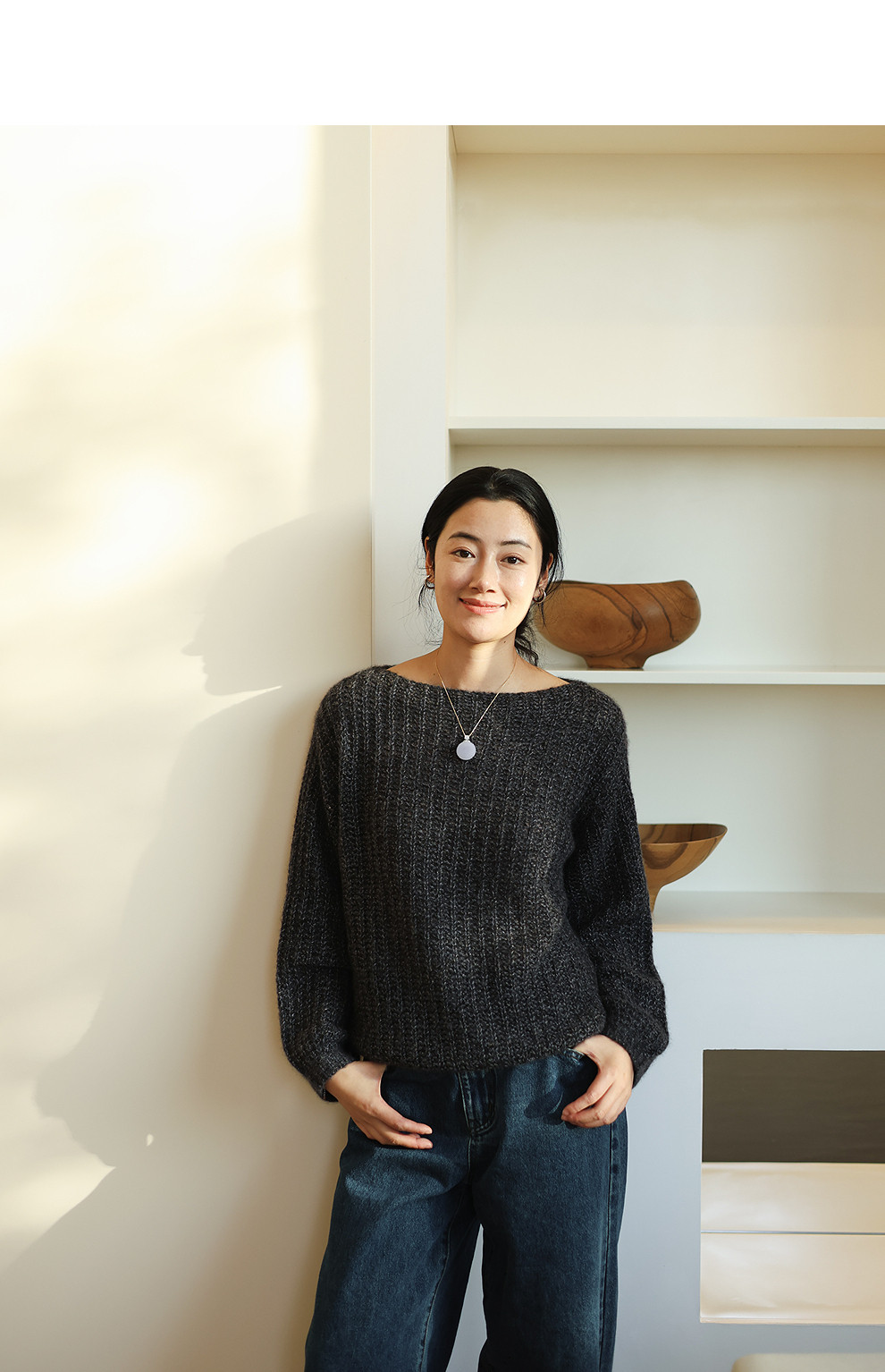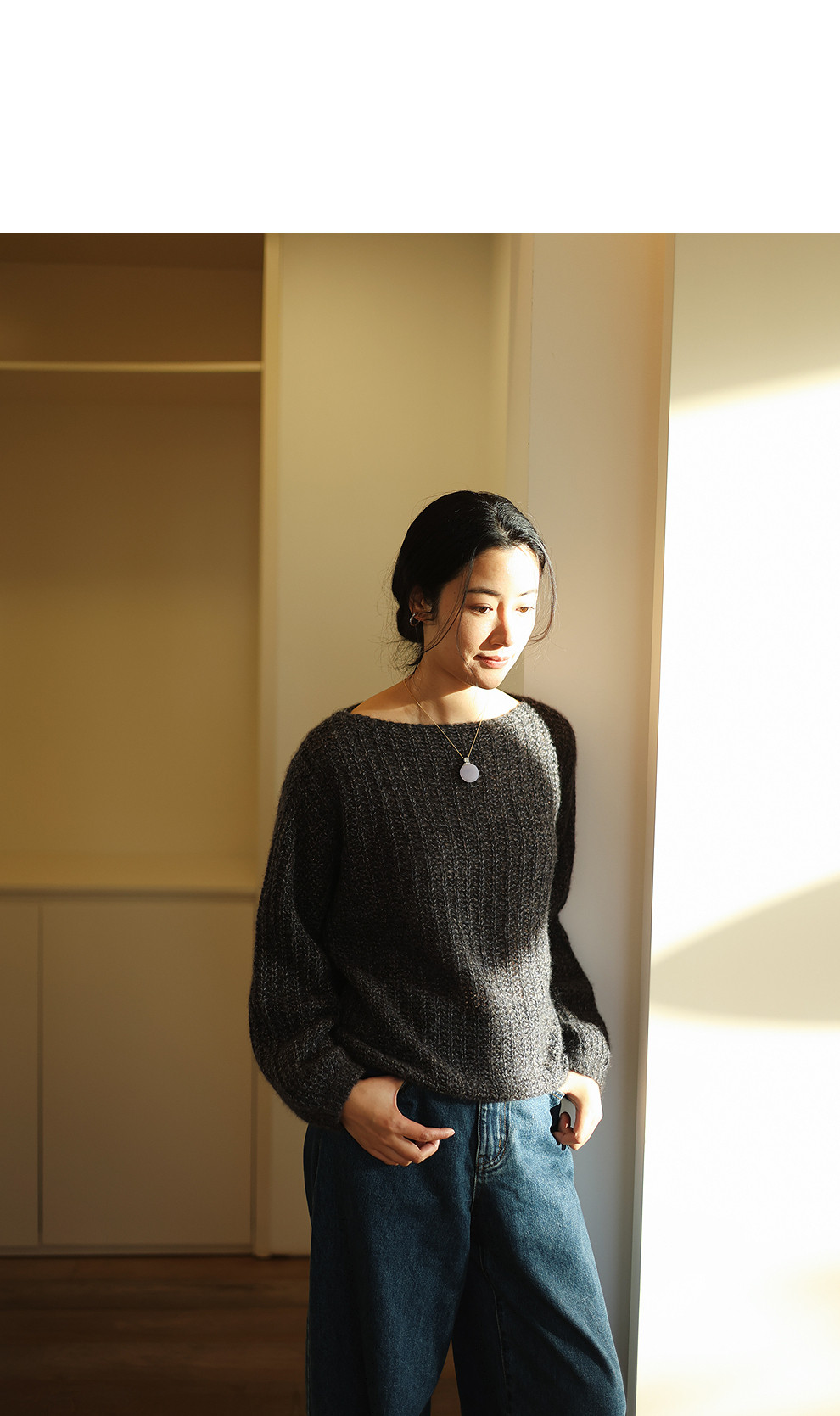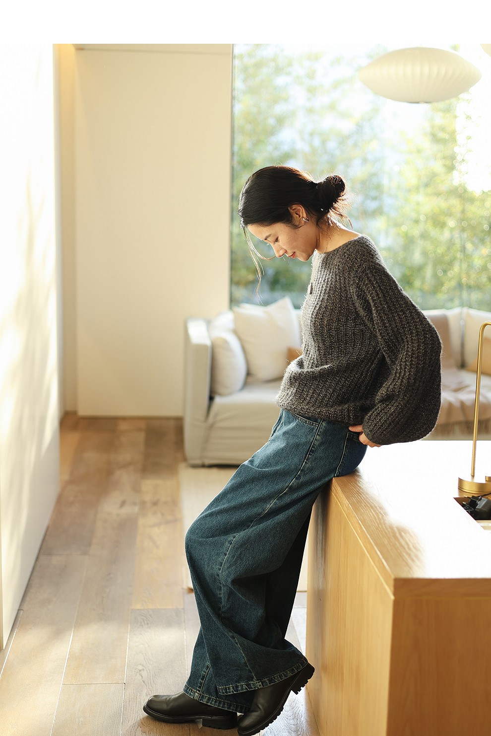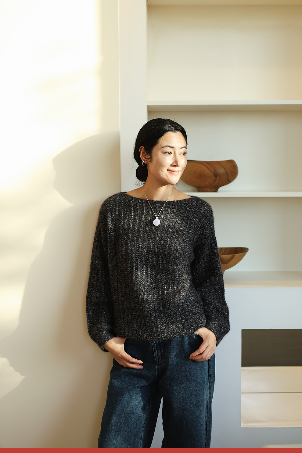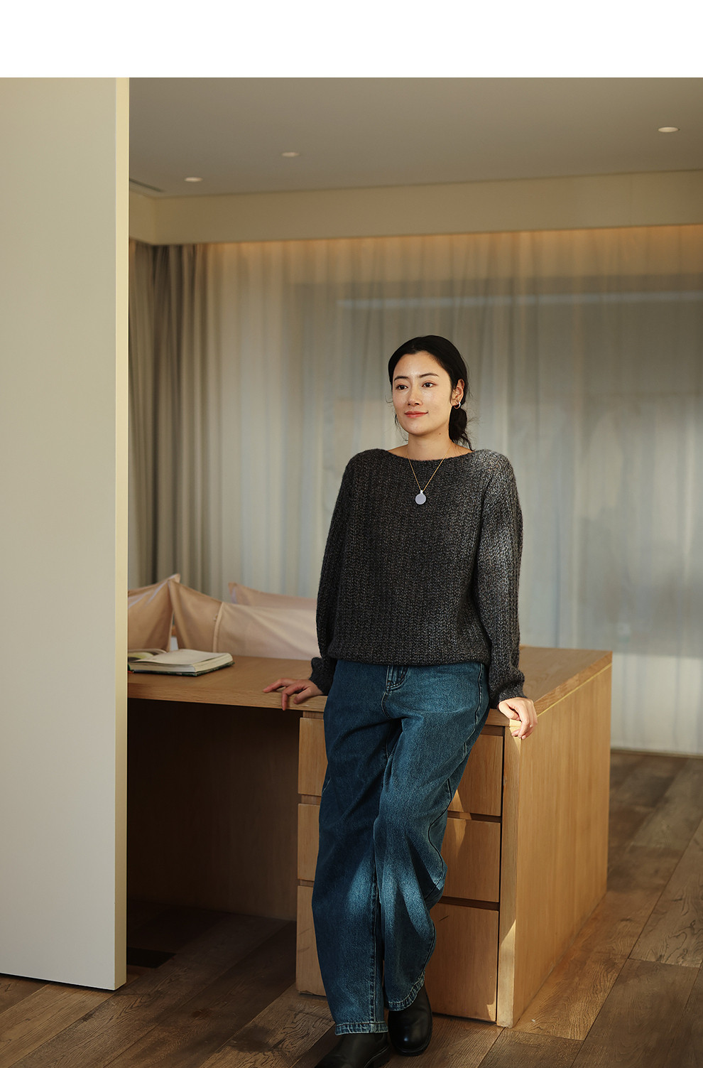 绽放021朵/山羊绒桑蚕丝肌理感一字领宽松套头毛衣慵懒感针织衫女