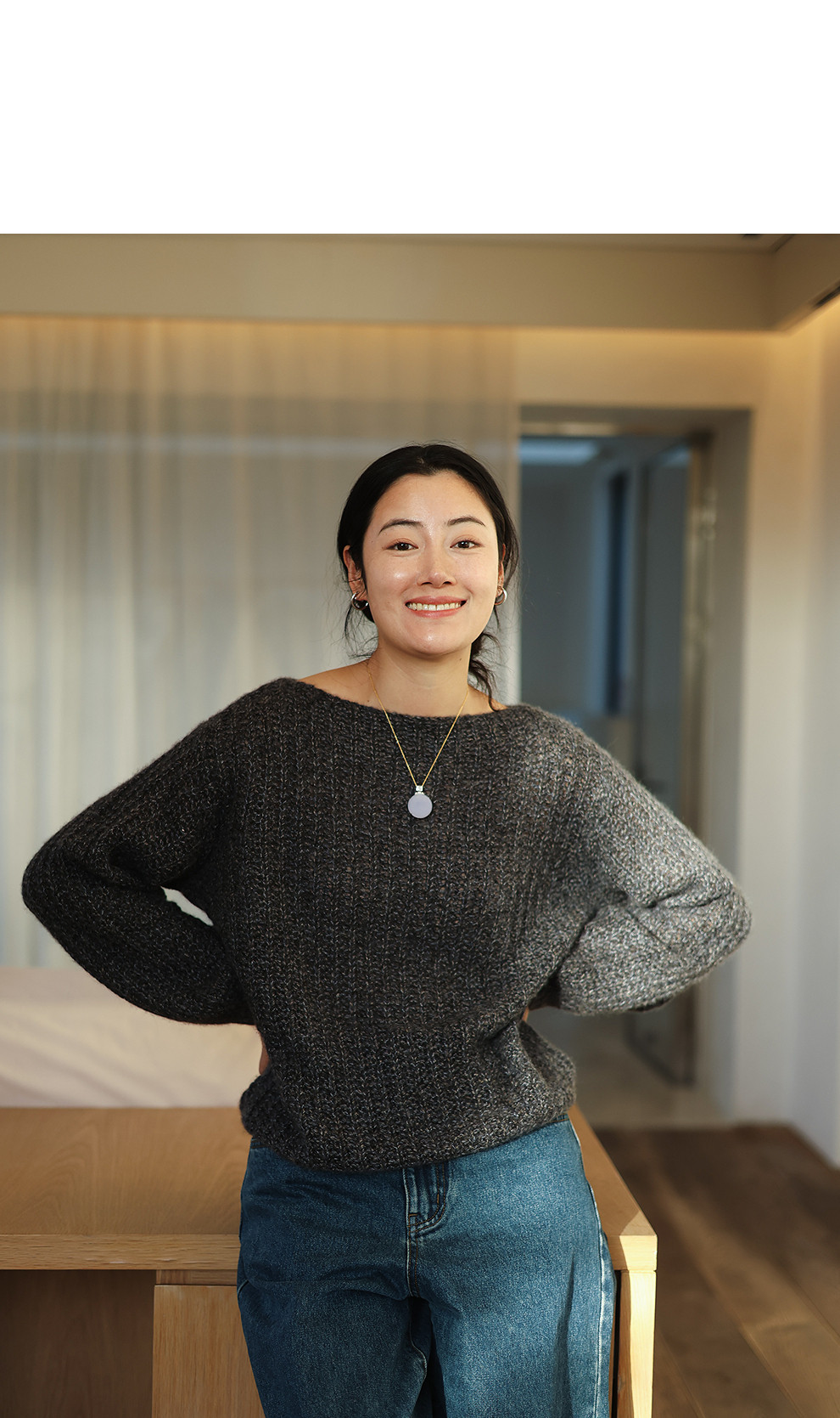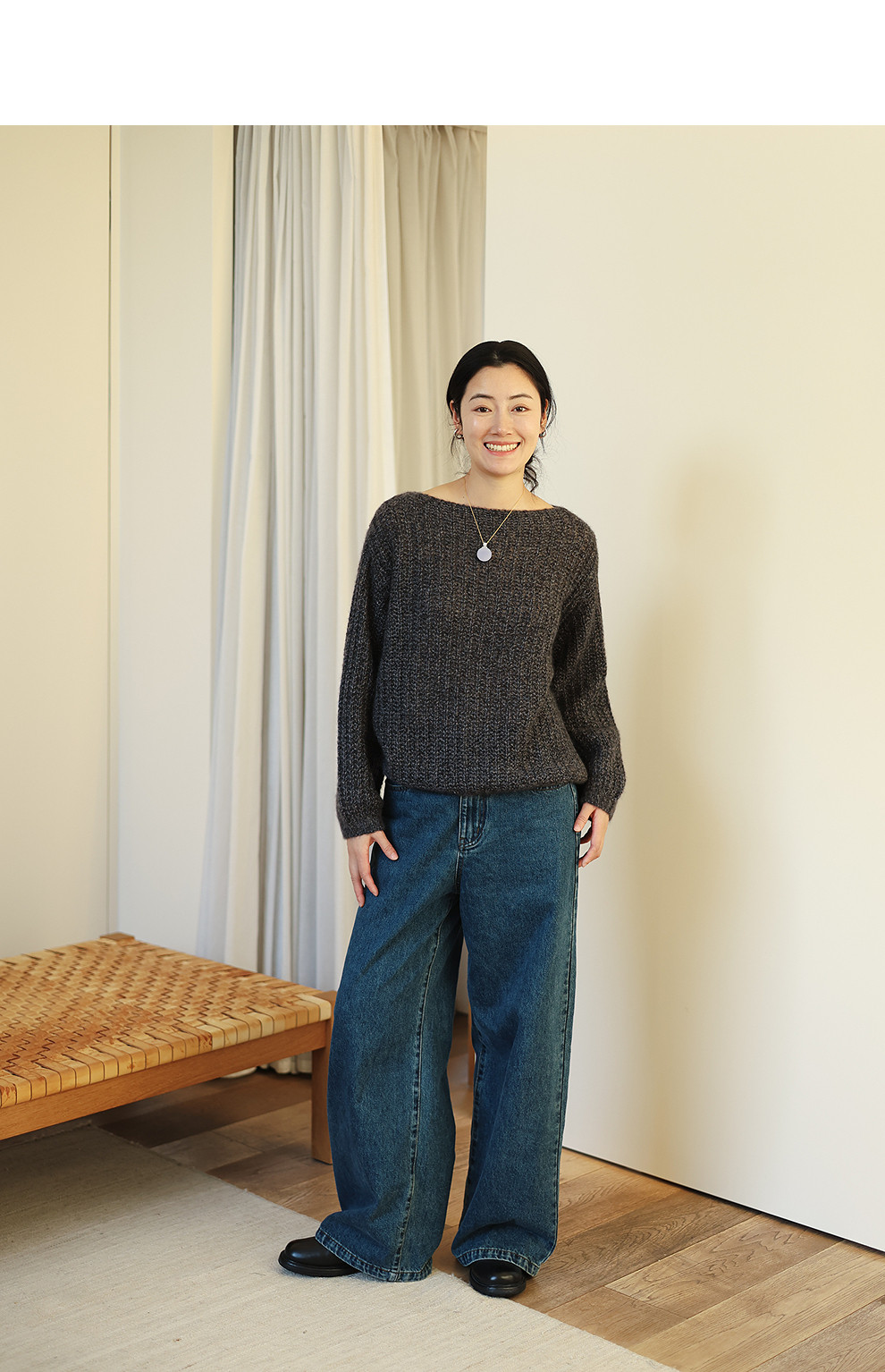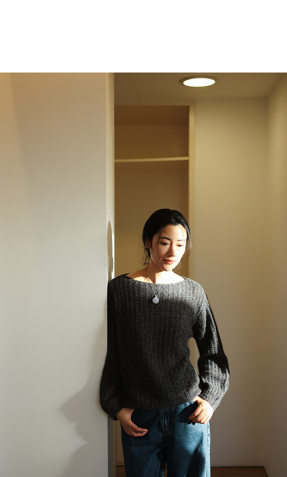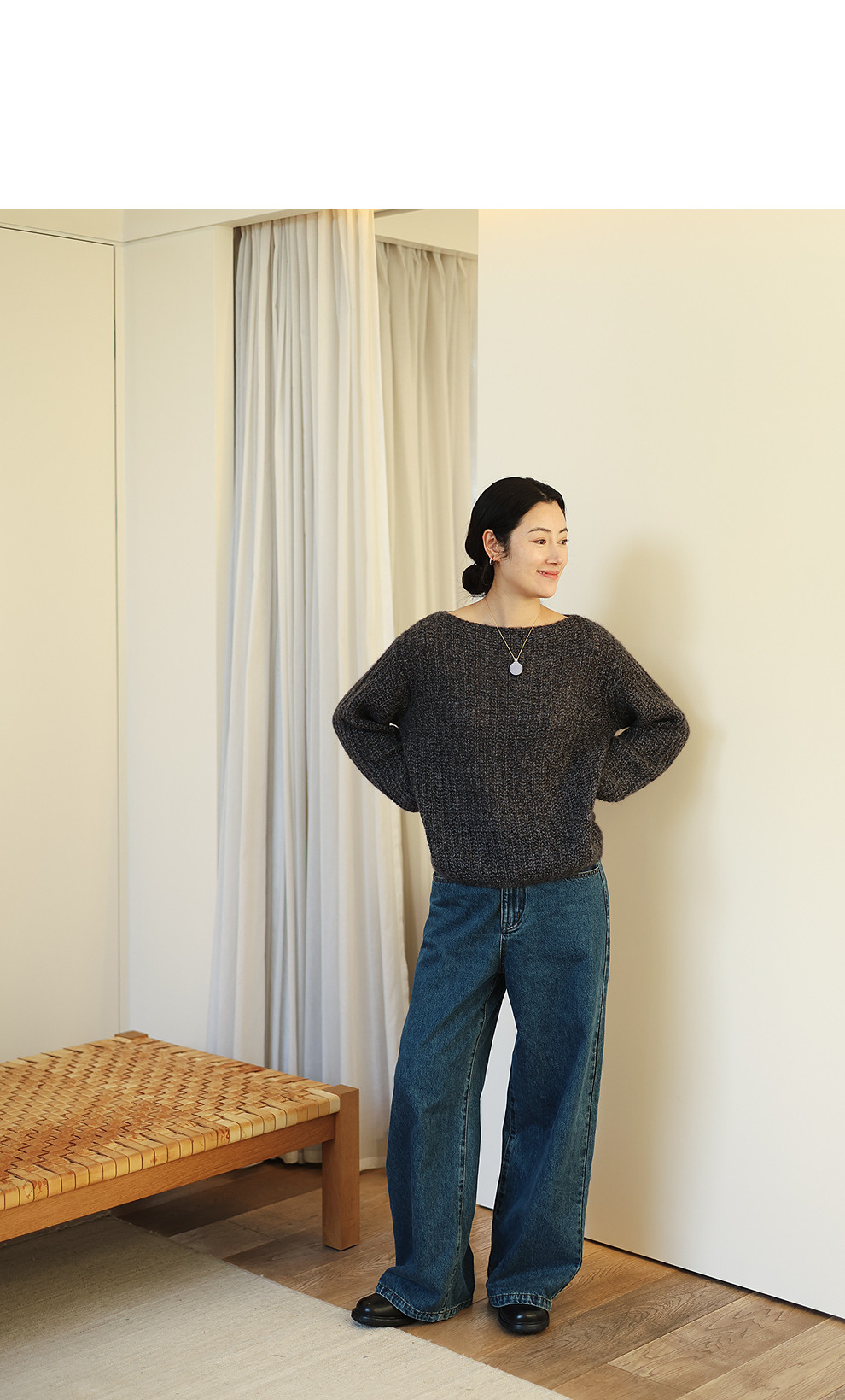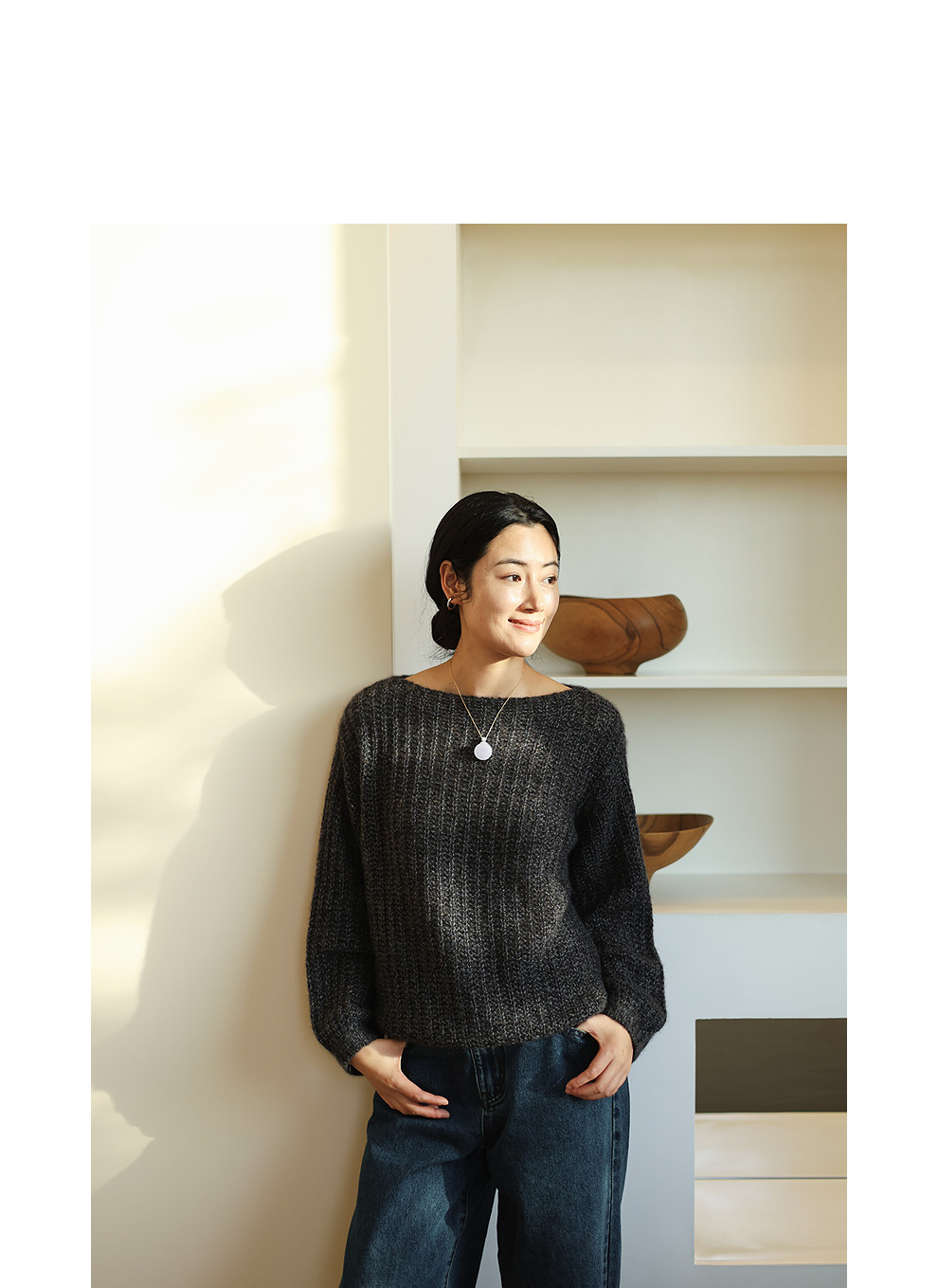 绽放021朵/山羊绒桑蚕丝肌理感一字领宽松套头毛衣慵懒感针织衫女