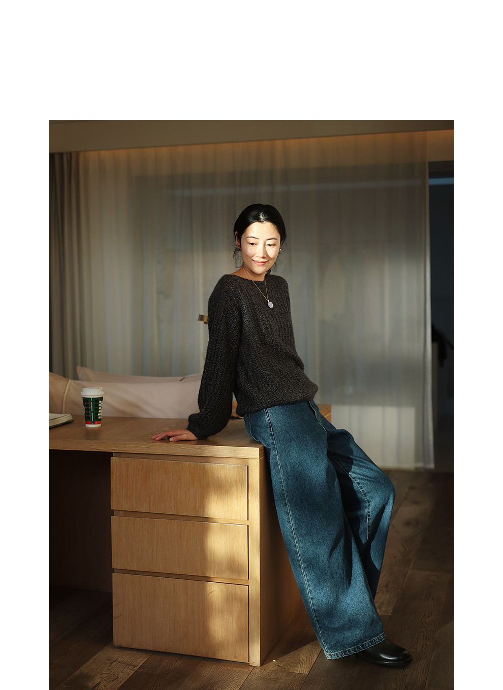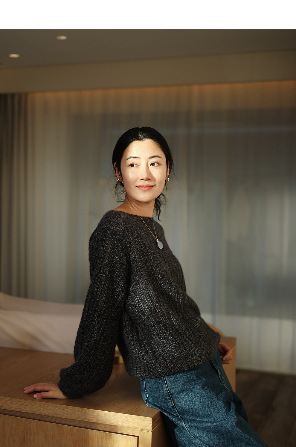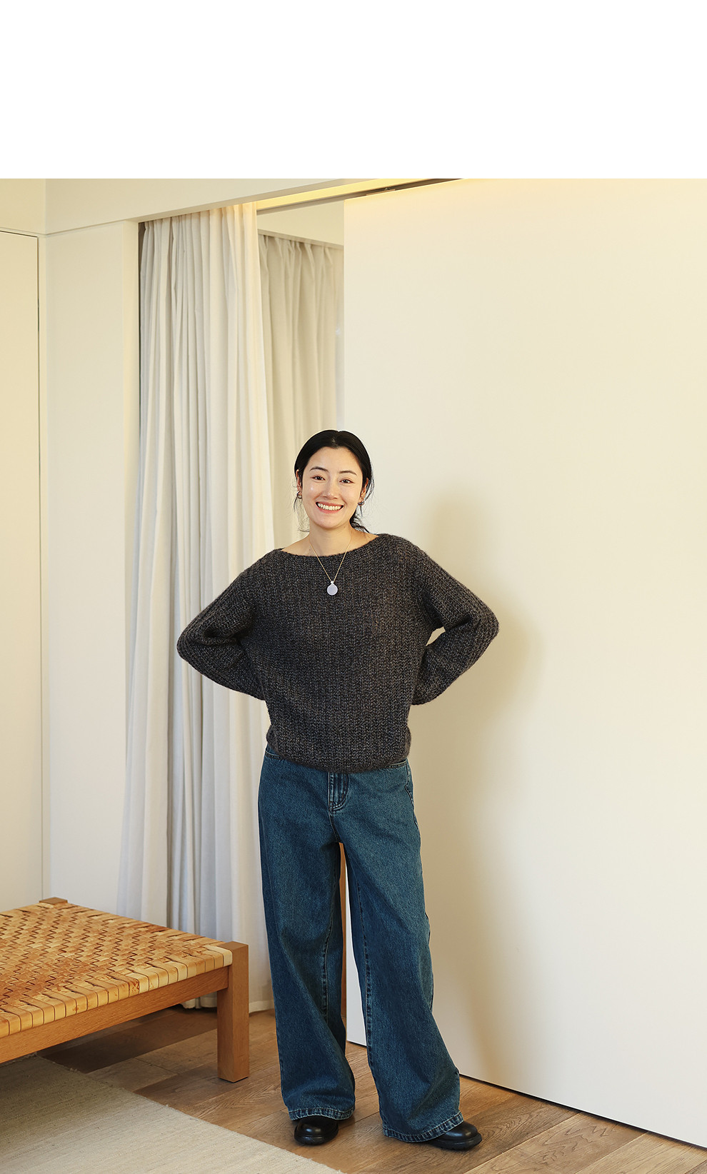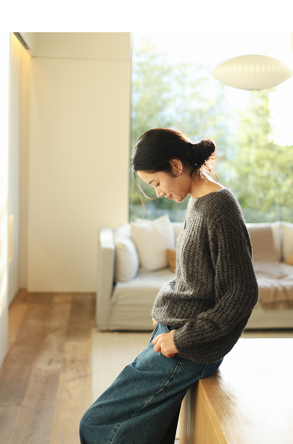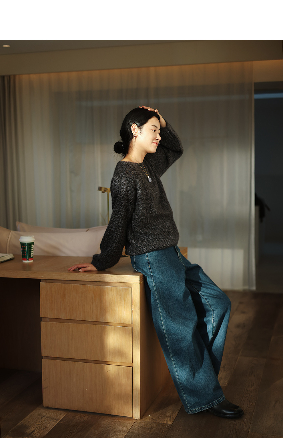 绽放021朵/山羊绒桑蚕丝肌理感一字领宽松套头毛衣慵懒感针织衫女
