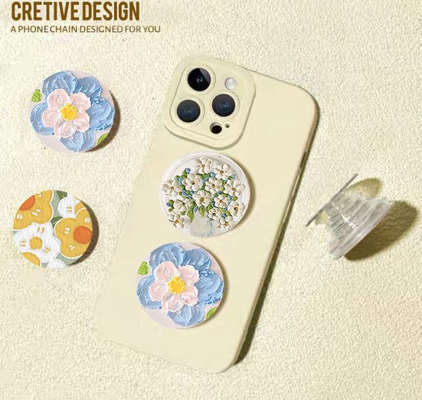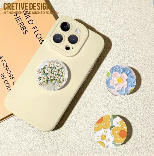 ins花朵圆形伸缩气囊支架粘贴追剧神器旋转桌面创意手机背贴女款