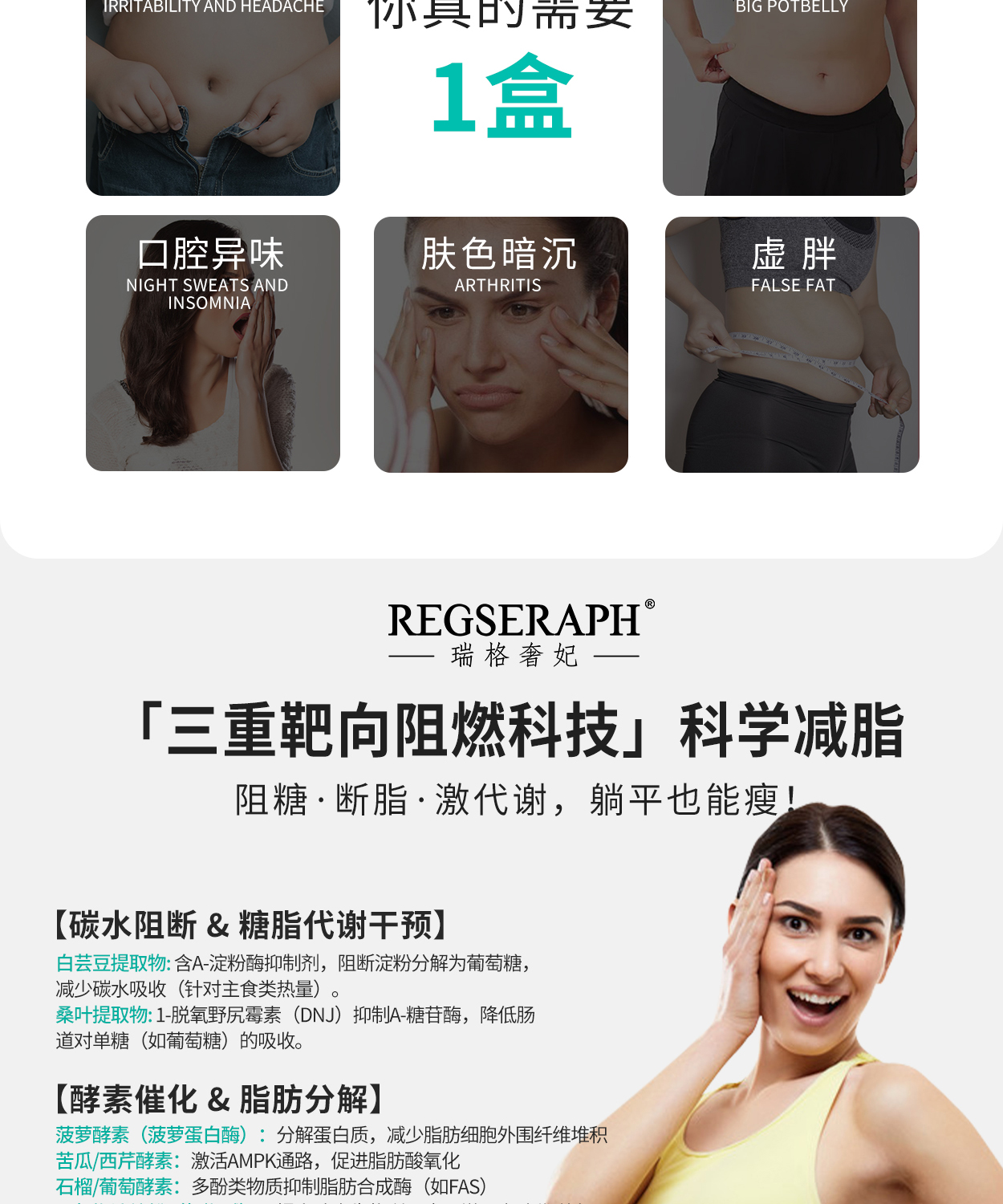 REGSERAPH女性白芸豆益生菌顽固身体重管理直击代谢腰腹肚阻断糖
