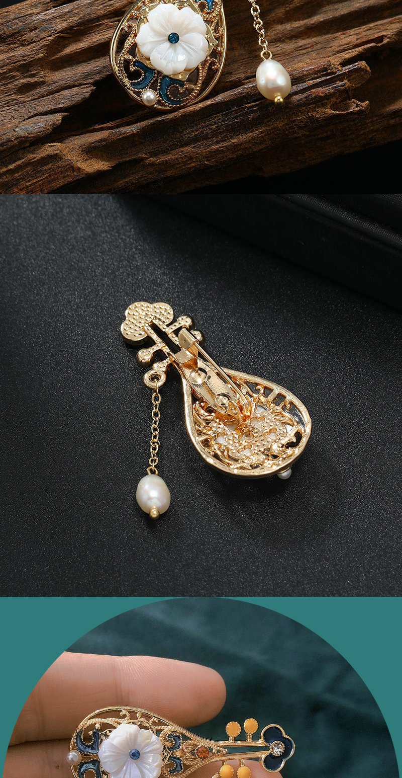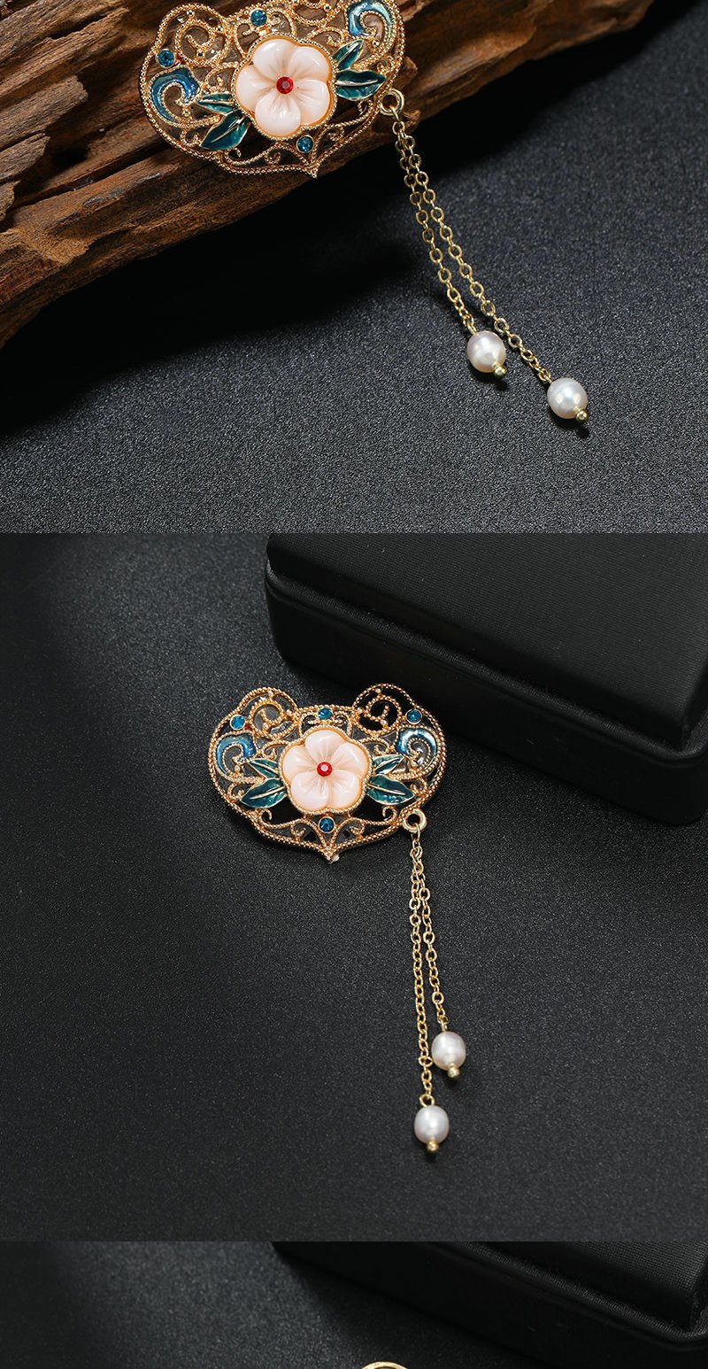 旗袍胸针挂件淡水珍珠流苏古风胸针汉服胸花中式古典国风配饰品女