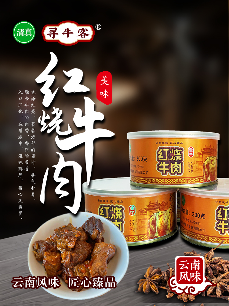 寻牛客红烧牛肉300克装,云南绿星斋清真食品