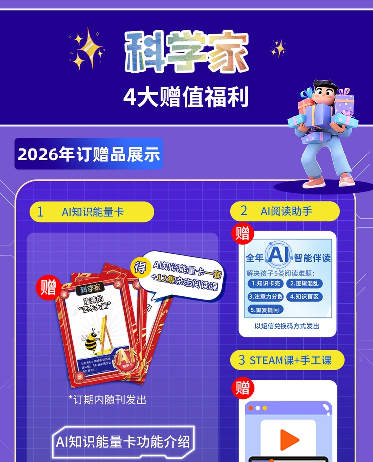 科学家(AI助力杂志阅读)(1年共12期)(杂志订阅)8-15岁青少年科普