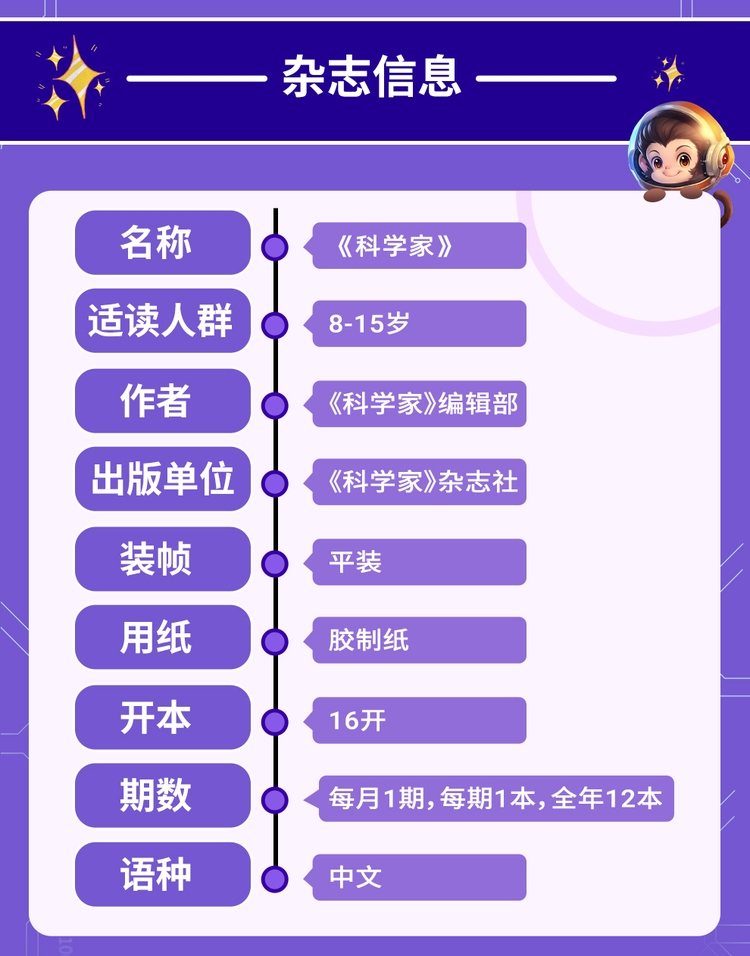 温馨提示:《科学家》出版周期较常规刊物晚,当月刊一般在次月中旬发货,介意者慎拍!