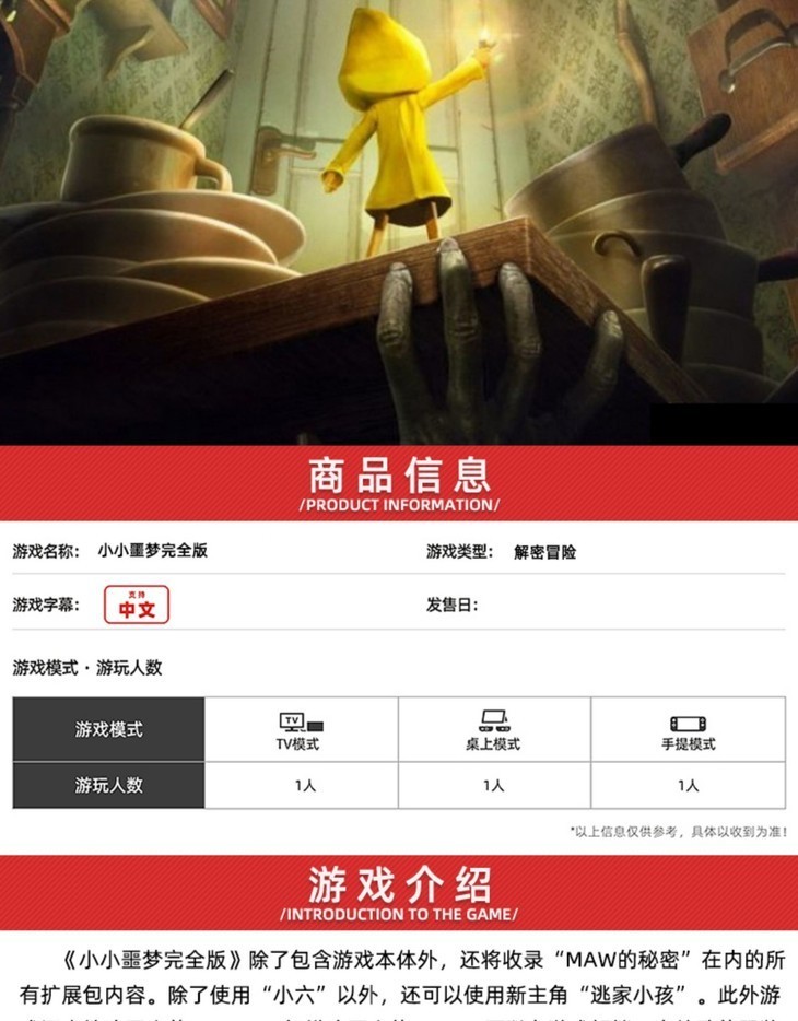 【畅玩卡可租】二手Switch游戏 小小梦魇 噩梦完整版 中文版