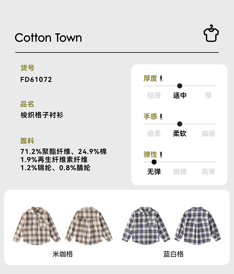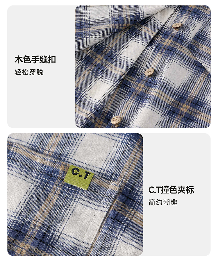 【简约百搭格子衬衫】棉花堂 梭织格子衬衫 A类 亲肤柔软 10FD61072