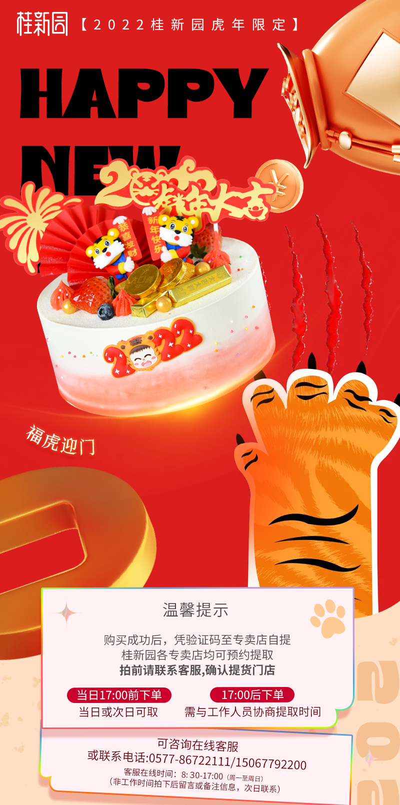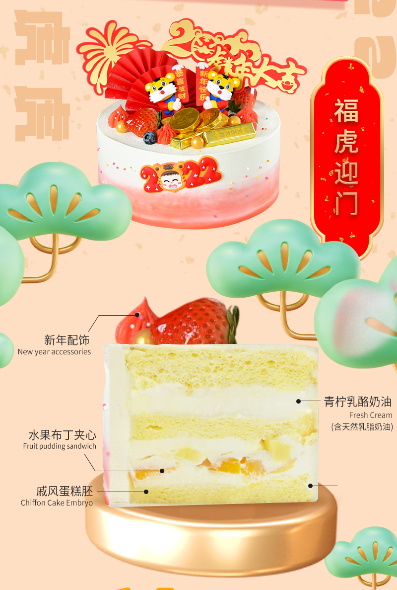 【福虎迎门 】2022虎年限定新年主题蛋糕——纯乳脂与牛奶奶油混合,口味升级,细腻香甜