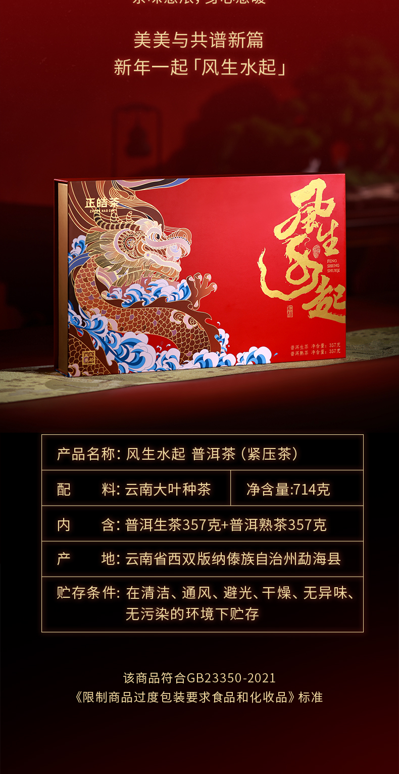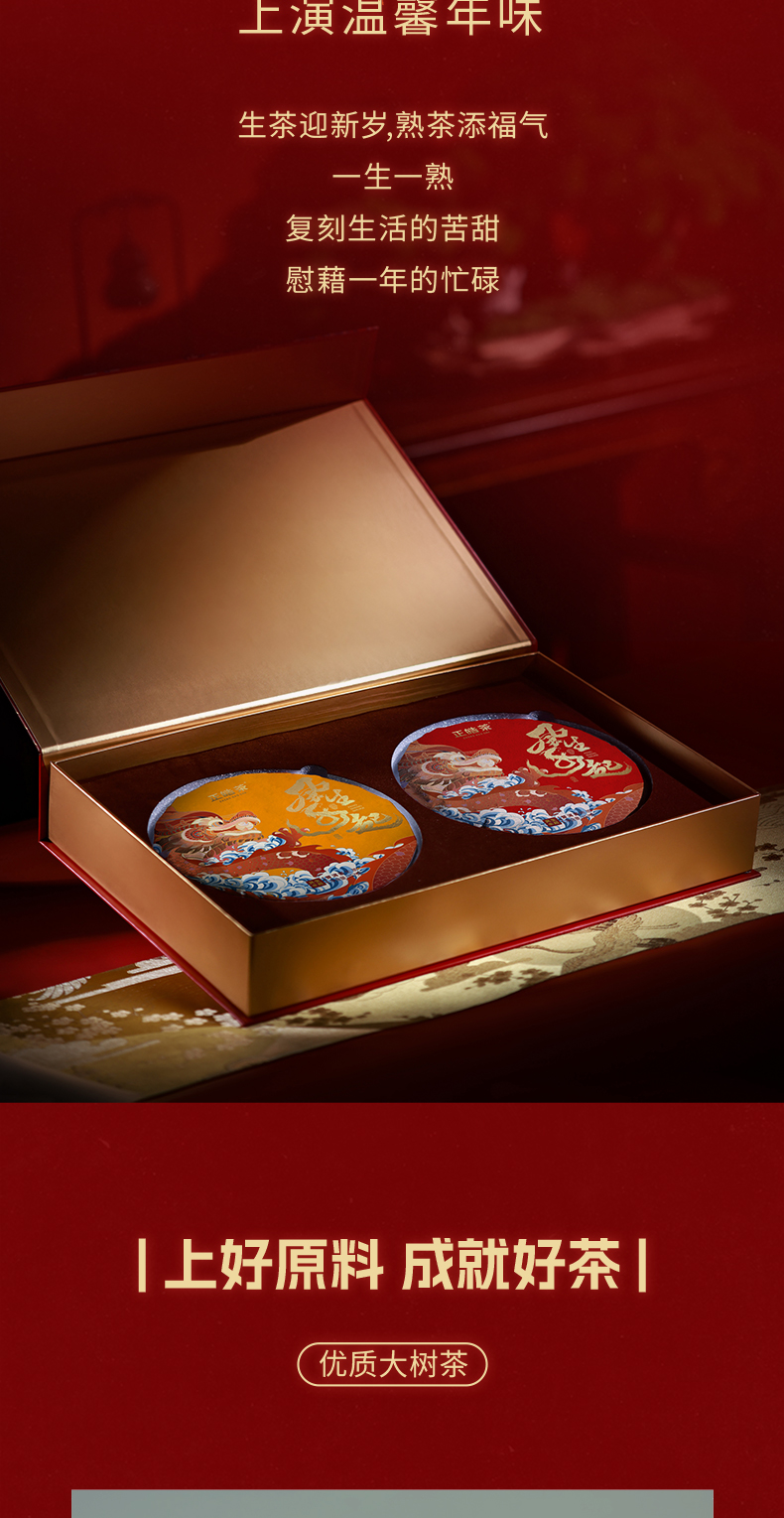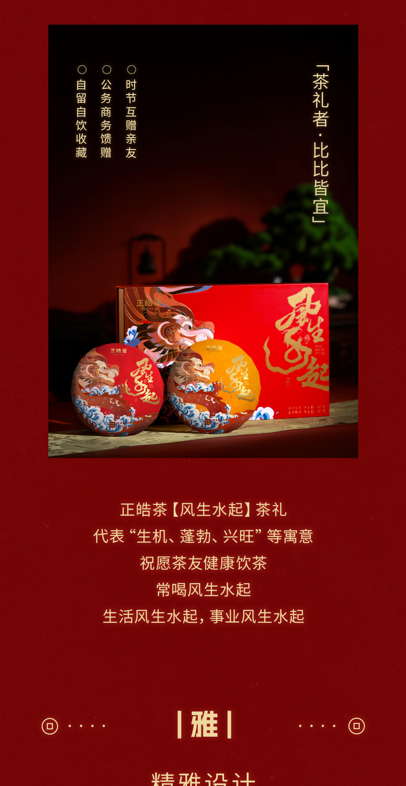 正皓茶业丨风生水起 东方茶礼 普洱茶双饼礼盒 勐海普洱熟茶357g*1饼+勐海普洱生茶饼*1饼 礼盒配手提袋 送长辈送领导 送朋友