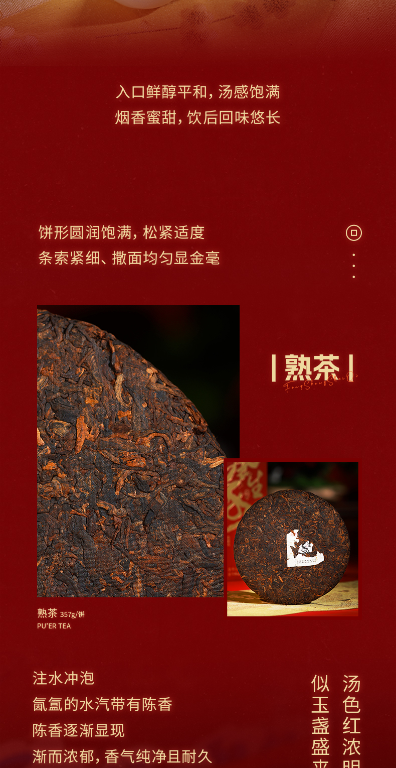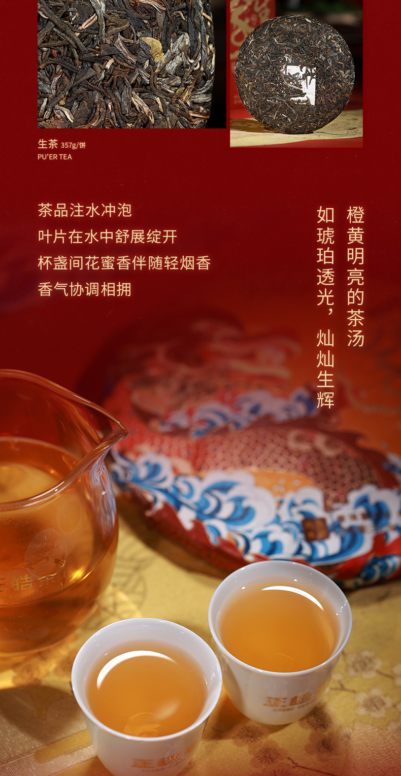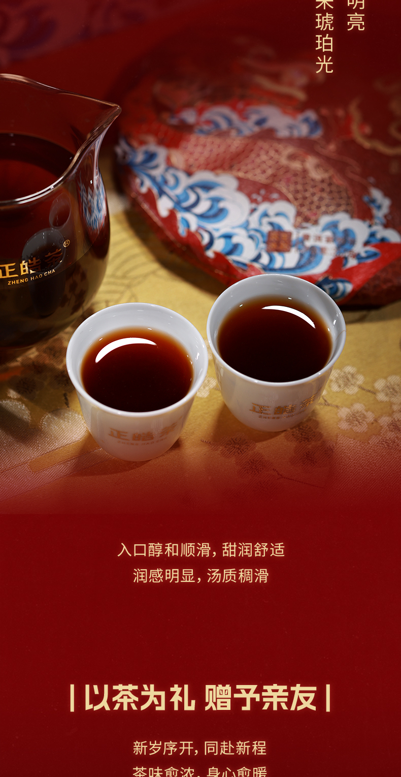 正皓茶业丨风生水起 东方茶礼 普洱茶双饼礼盒 勐海普洱熟茶357g*1饼+勐海普洱生茶饼*1饼 礼盒配手提袋 送长辈送领导 送朋友