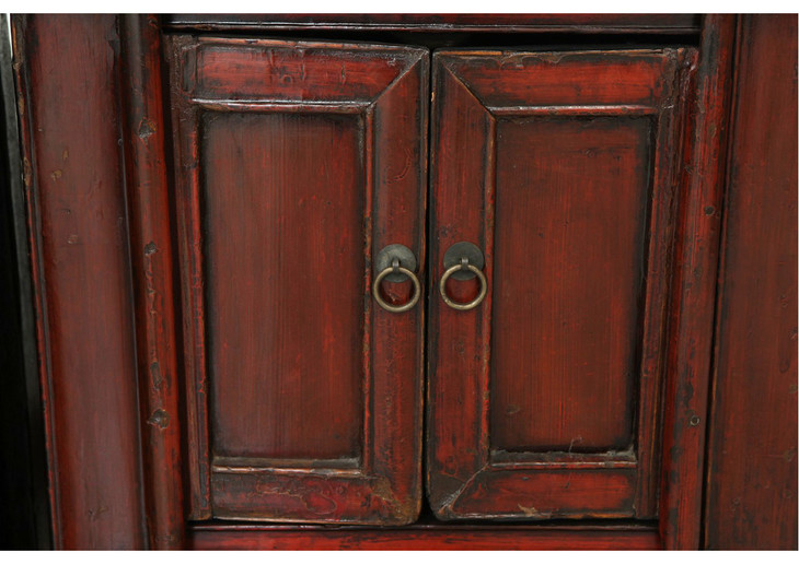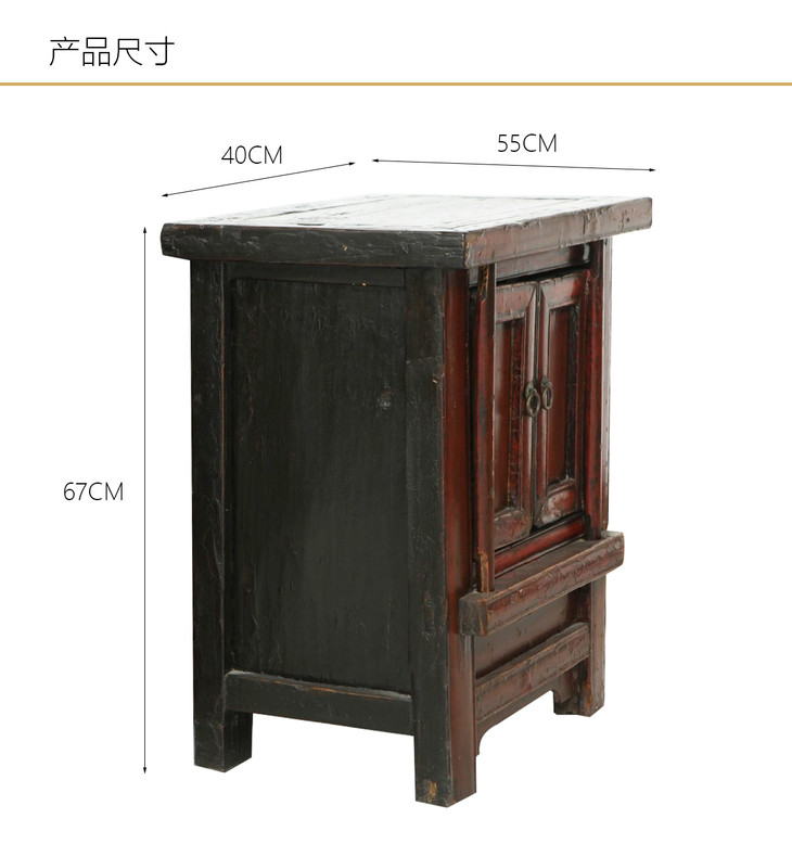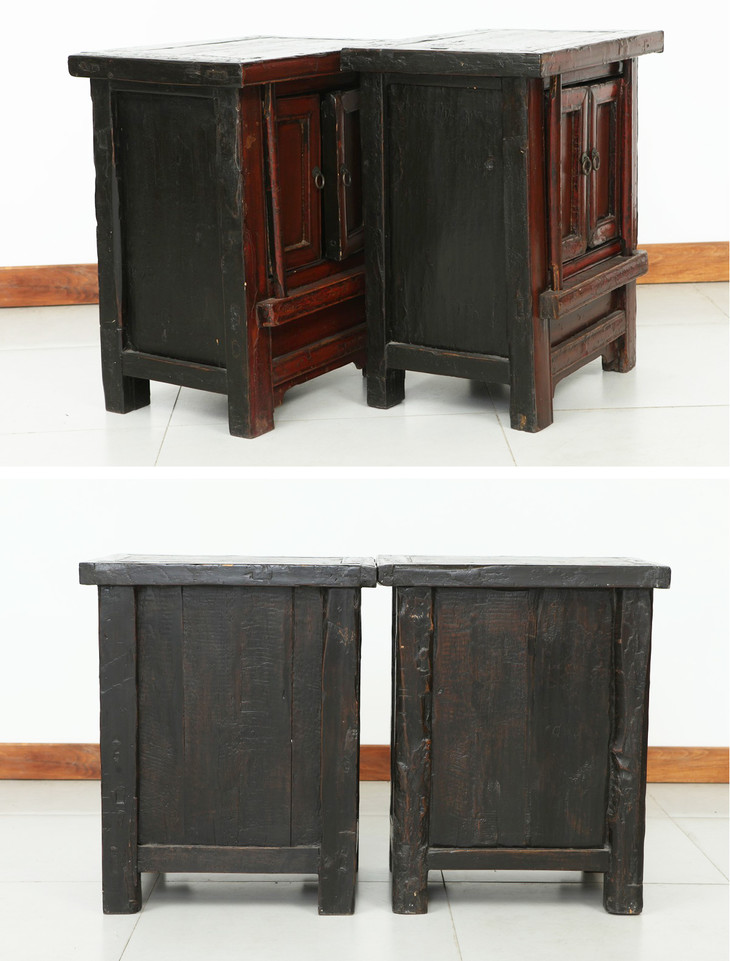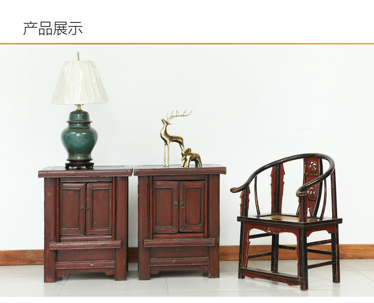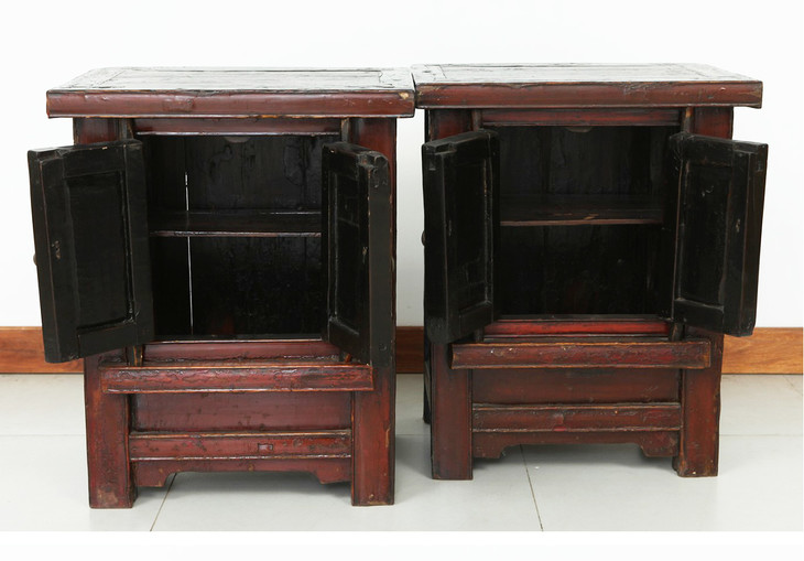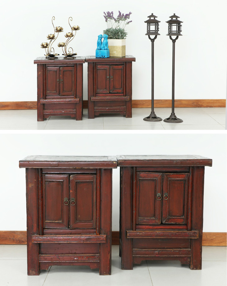 清晚期榆木中式古董家具小红漆柜(对)床头柜角柜Q0712009520