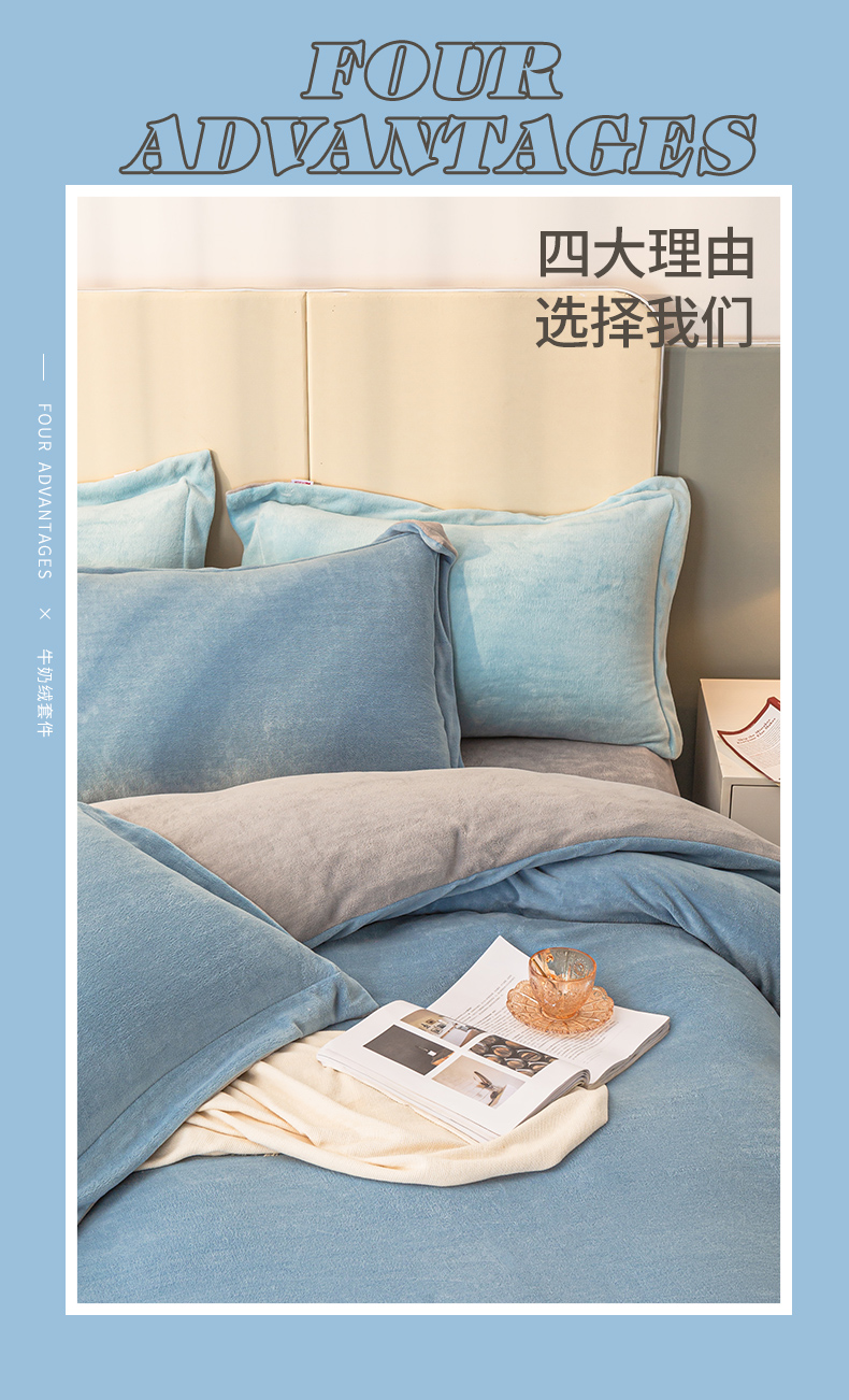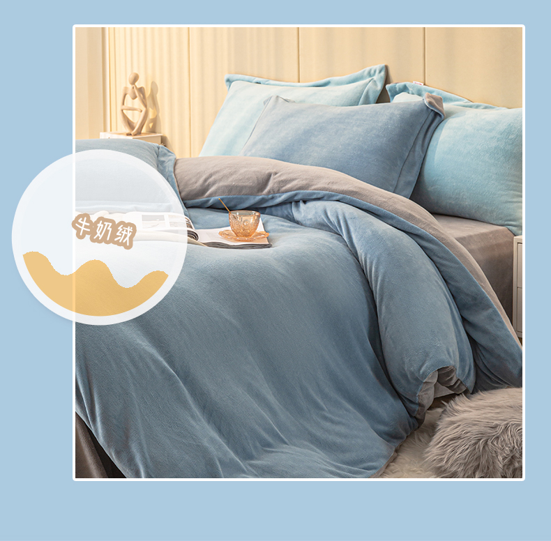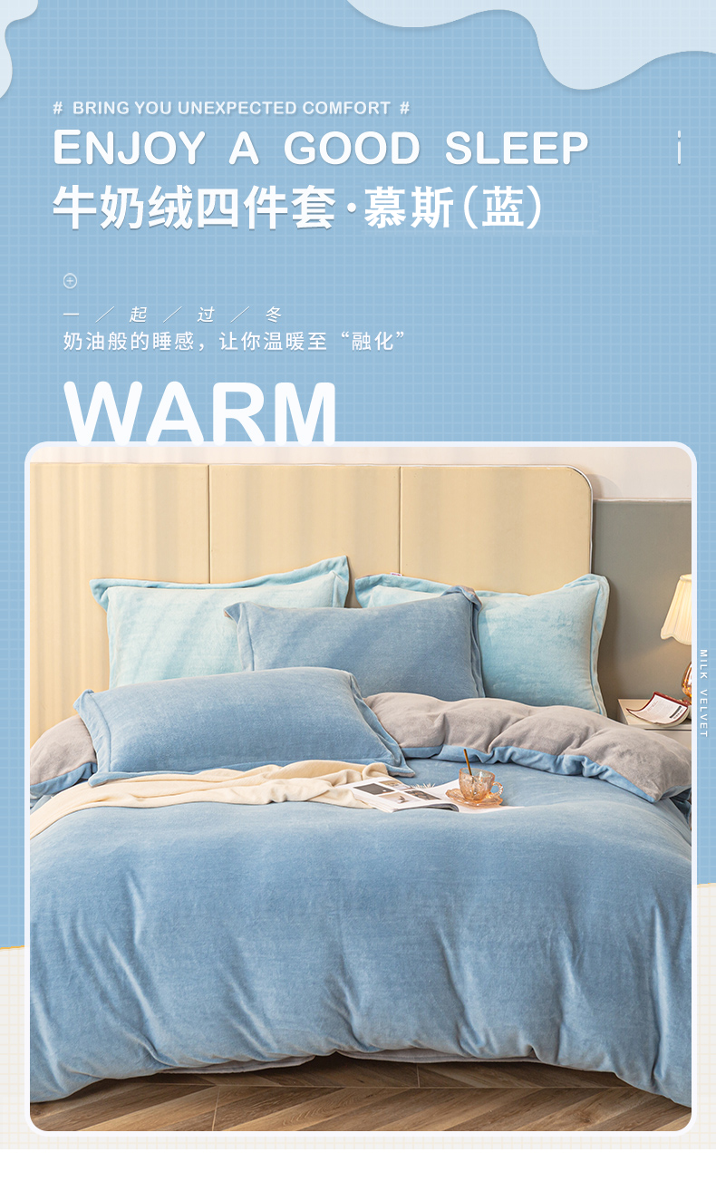 多喜爱-牛奶绒四件套<慕斯(蓝、粉)>