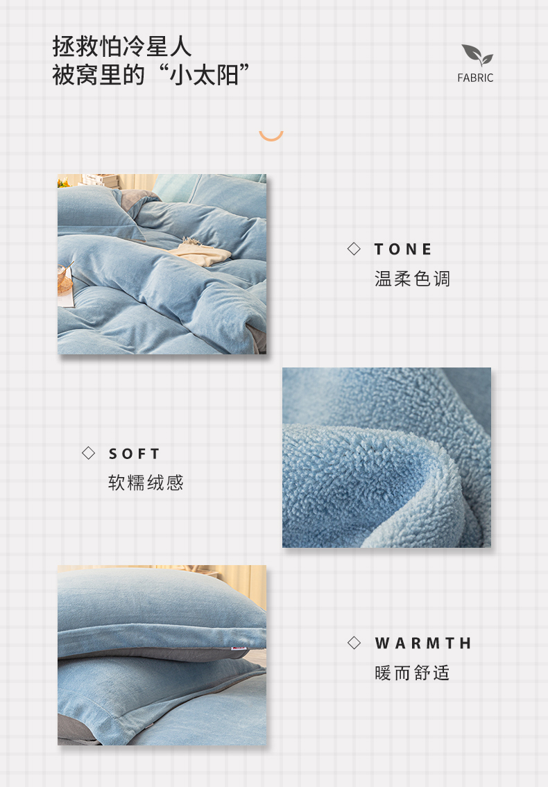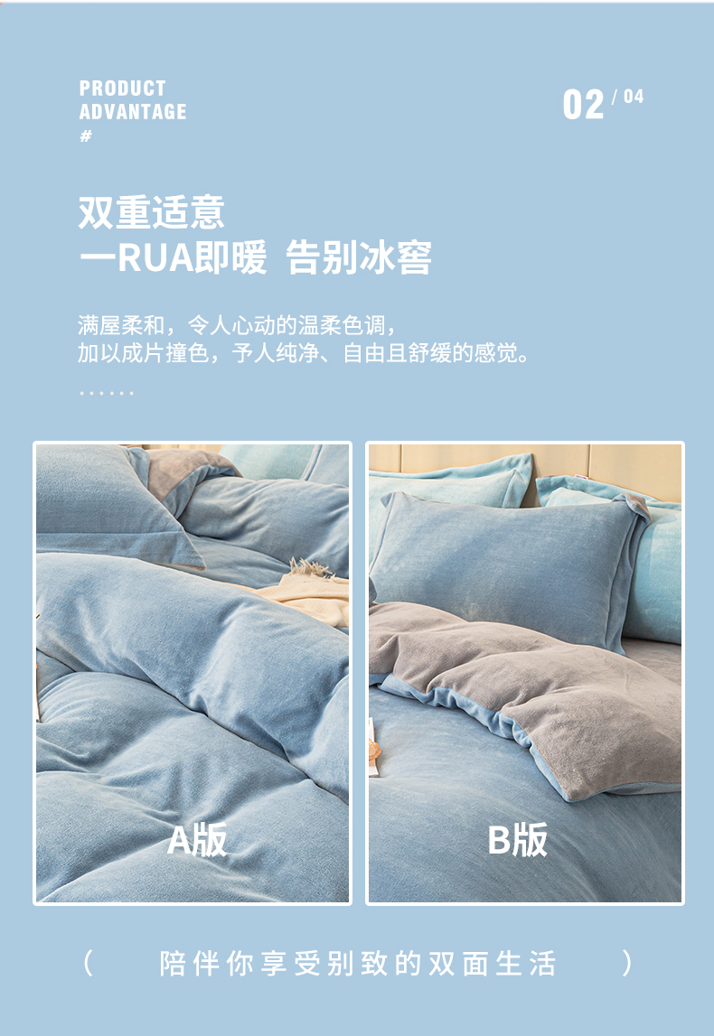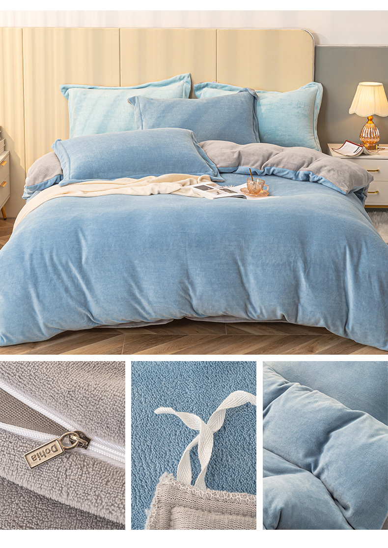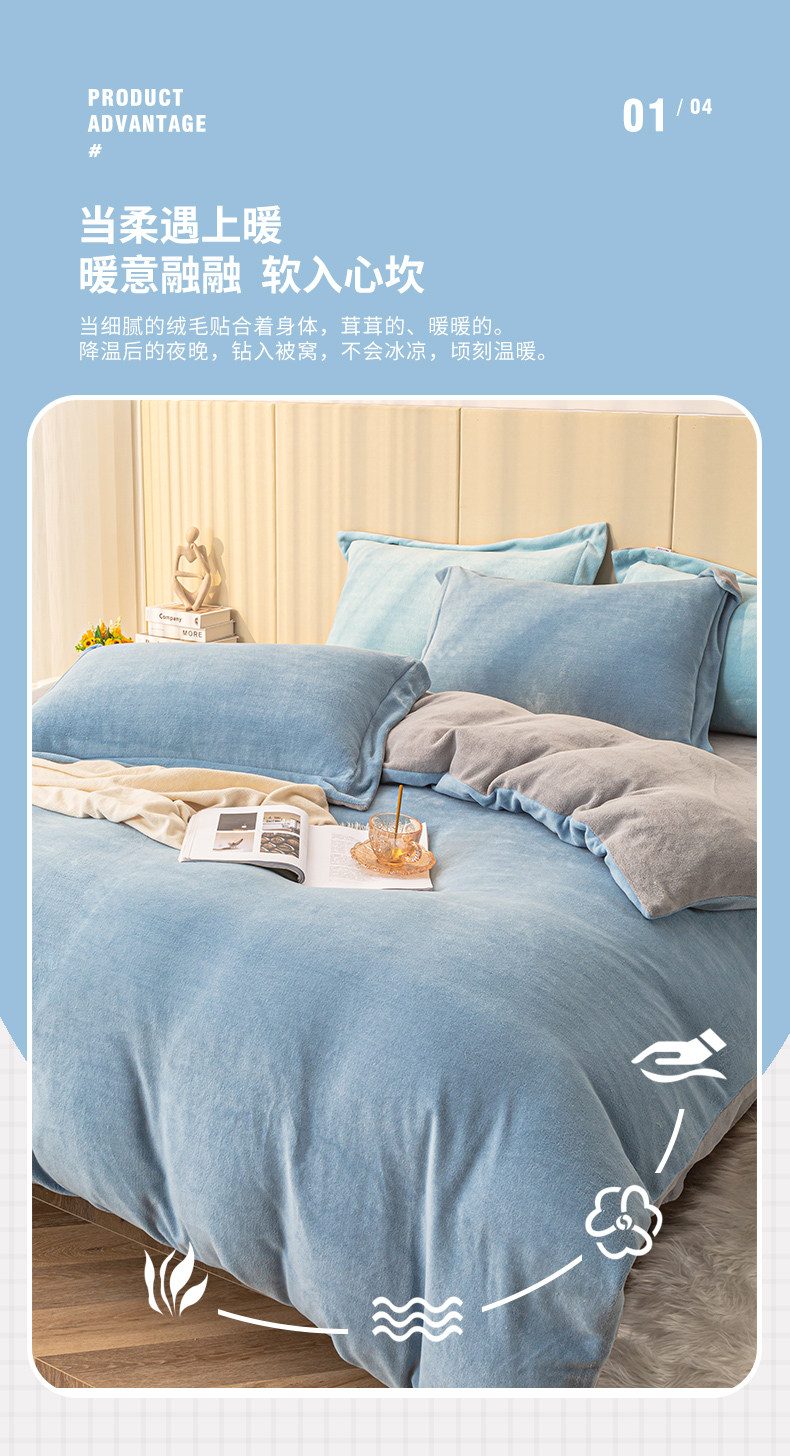 多喜爱-牛奶绒四件套<慕斯(蓝、粉)>