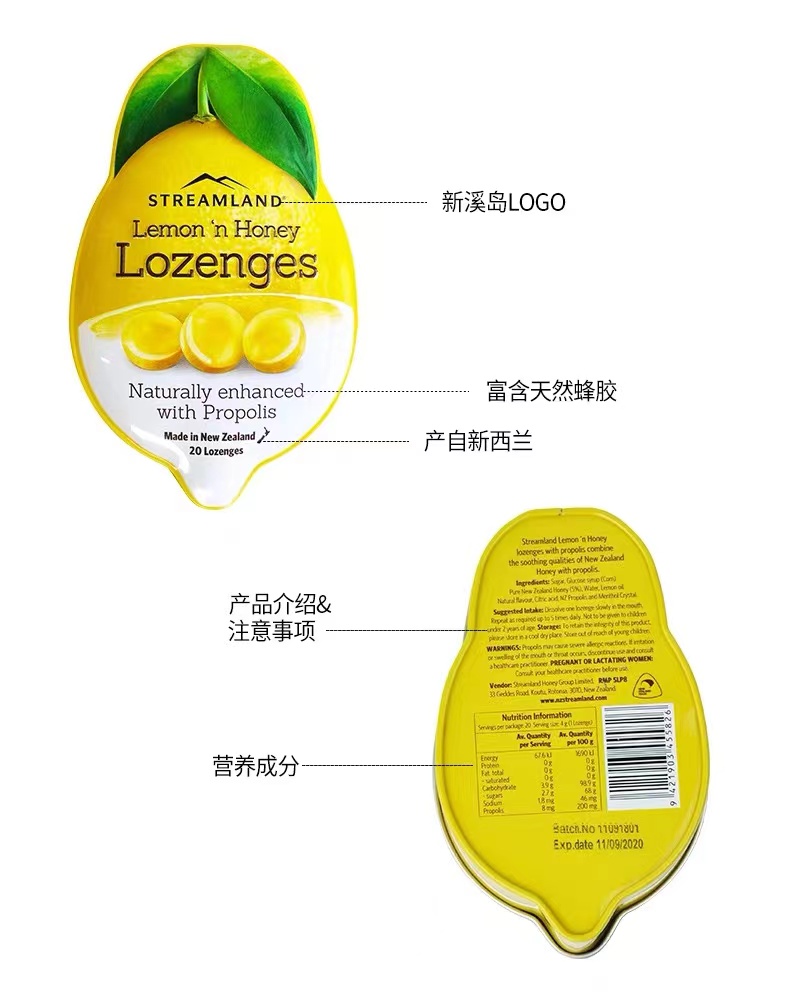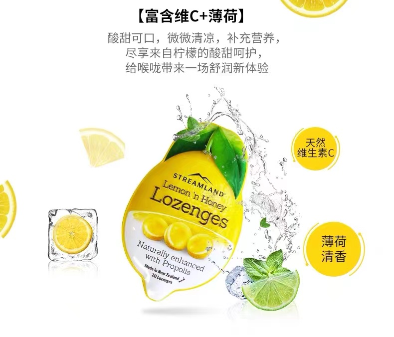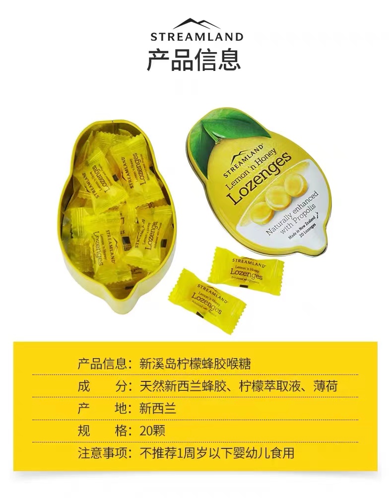 Streamland新溪岛柠檬便携装蜂蜜润喉糖;UMF10+蜂蜜润喉糖柠檬味